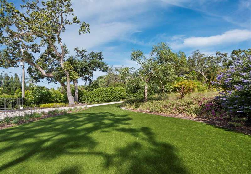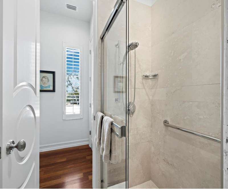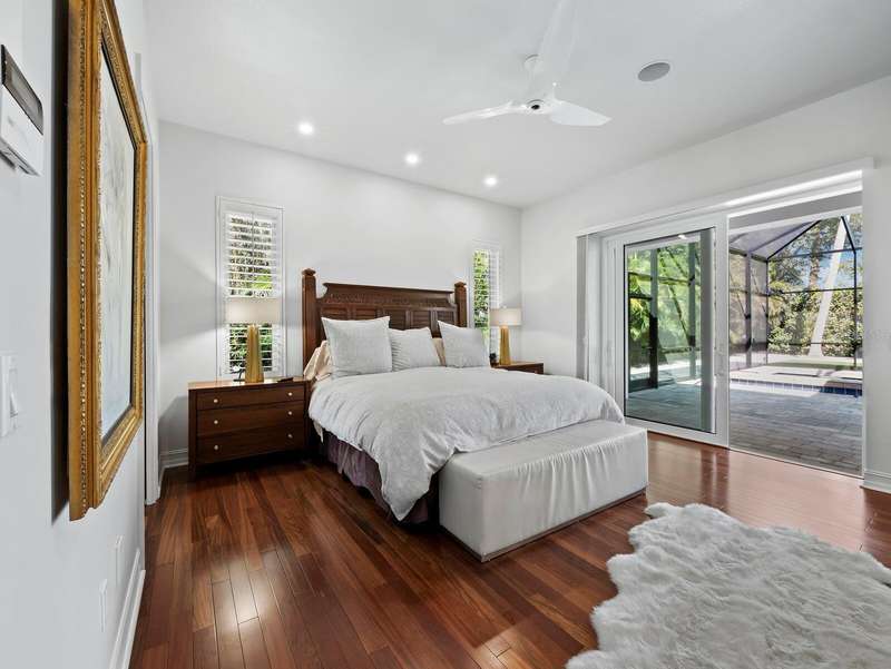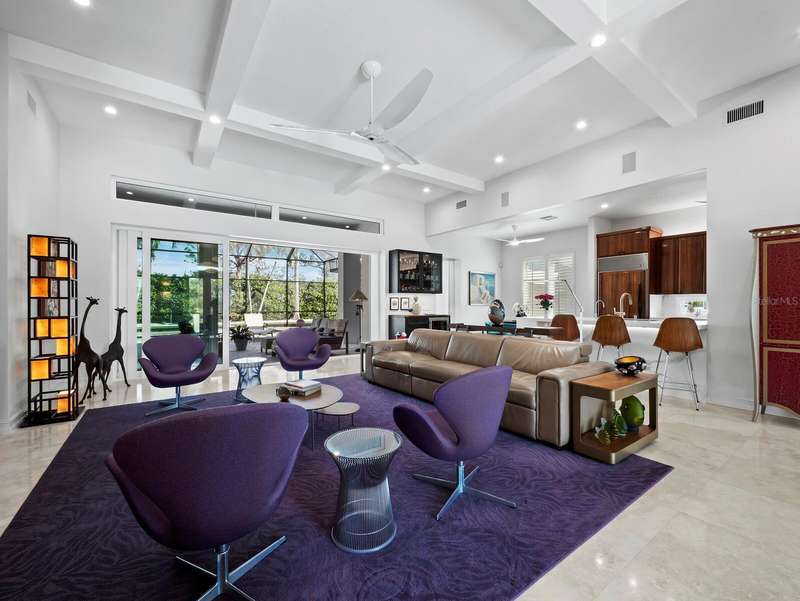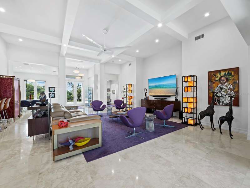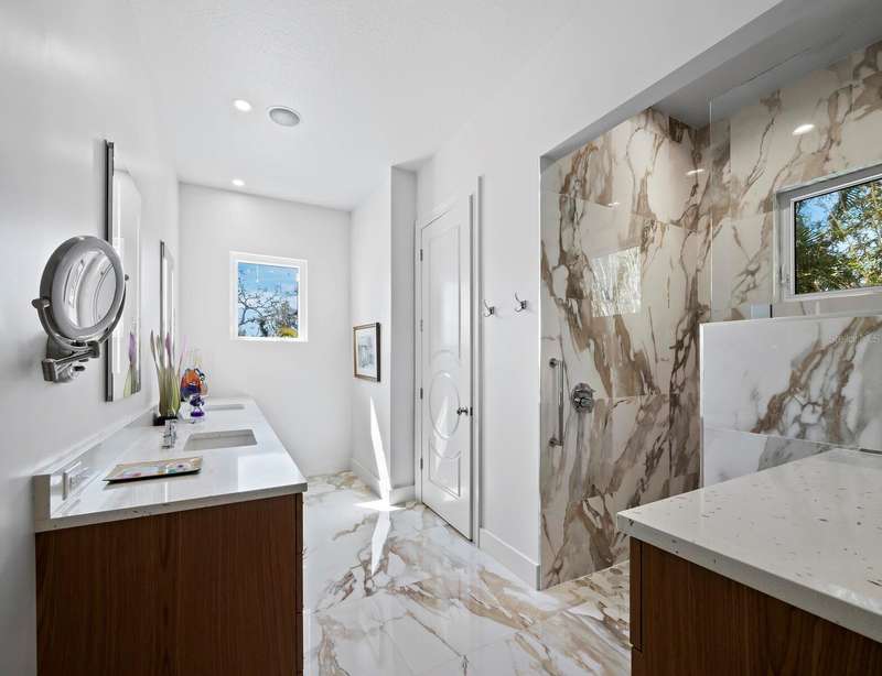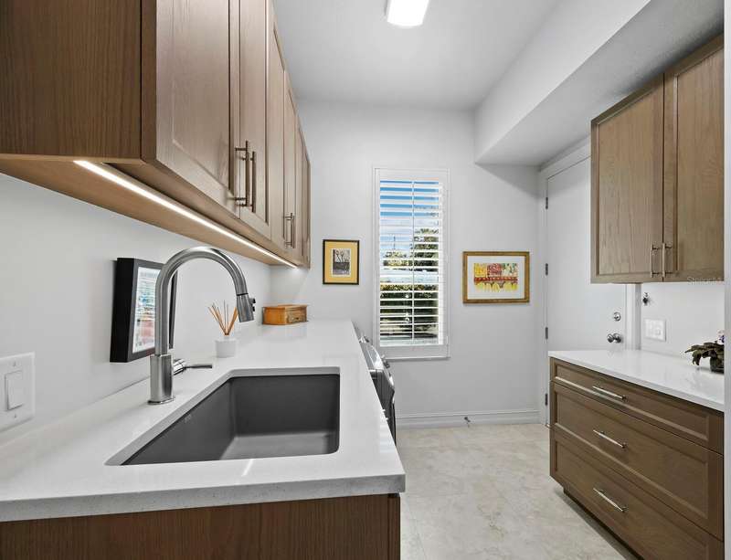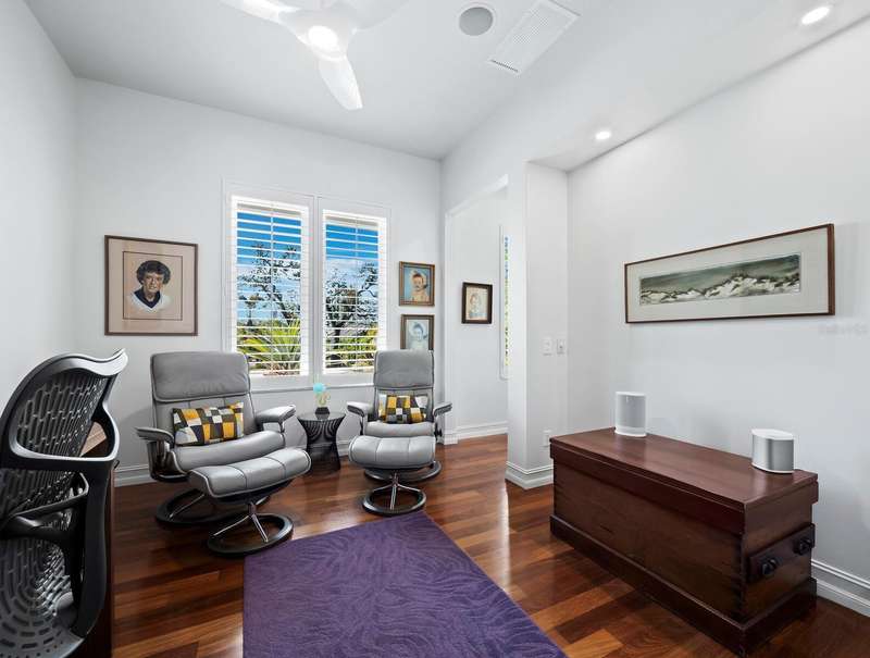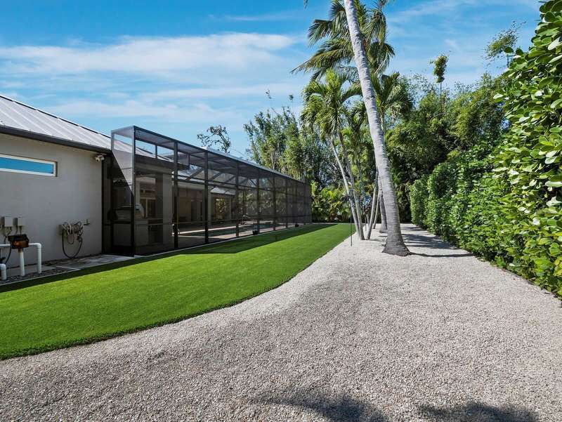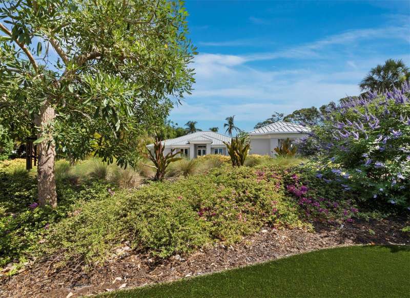 This exceptional custom-built residence with separate guest quarters is located in the highly sought-after Oyster Bay Estates on over half an acre of land and offers a private, luxurious lifestyle and a unique blend of modern upgrades. Situated in the desirable ‘West of Trail’ community near Sarasota Bay, the main house features 10-12 ft ceilings, travertine flooring, and surround sound throughout. The galley-style kitchen showcases exotic custom Padauk cabinetry finished in a high gloss lacquer, granite countertops, paneled Sub-Zero and Bosch dishwasher, double ovens, new Wolf cooktop with a stainless-steel hood, and a spacious pantry with new cabinetry, sink, and faucet. The laundry room is also well-appointed with white oak cabinetry, large sink, and overflow storage for extra appliances. The primary bedroom offers dual walk-in closets with wood cabinetry, fabulous and functional built-in drawers, individual vanities, and a separate dual-head shower with large square exotic stone tile. Off the primary bedroom is an office/den that could serve as an additional en suite bedroom. The oversized screened lanai, featuring brick pavers, is perfect for outdoor living, complete with a heated 40-ft lap pool, and a spa. The separate guest quarters, offering privacy yet convenience, includes a gathering space or bedroom, an office, and a full bedroom suite with a bath. The home is further enhanced with a pillared entrance, large driveway with extra parking, side-entry 3-car garage, and a NEW METAL ROOF IN 2025, adding to its curb appeal. Other recent updates to the home include: Master bath: re-tiled, new vanity, toilet, bidet, shower fixtures, and Robern mirrors - Guest bath: re-finished vanity, new top, toilet, shower - fixtures, and Robern mirror - Guest house bath: new vanity, mirror, and lighting - Kitchen: new countertops, cooktop, dishwasher, sink, faucet, and pantry with new cabinets, sink, and faucet - Washer and dryer, wine bar with beverage center in the main house - Coffee bar with a fridge in the guest house - Guest house floor refinished with polished concrete - Fresh paint inside and out - Windows and doors - Kohler generator, new secure entry gate, and new low-maintenance AstroTurf throughout - Grill, hot burner, and pizza oven on the lanai - Pool heater, re-screened lanai, irrigation system, driveway, and landscaping - LED landscape lighting and insulated attics - Blue light to AC units and Vacuum sweep outs . This home blends exquisite custom details with extensive recent updates and a thoughtful floor plan to provide a remarkable living experience in one of Sarasota's most desirable neighborhoods.