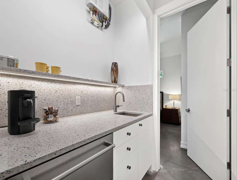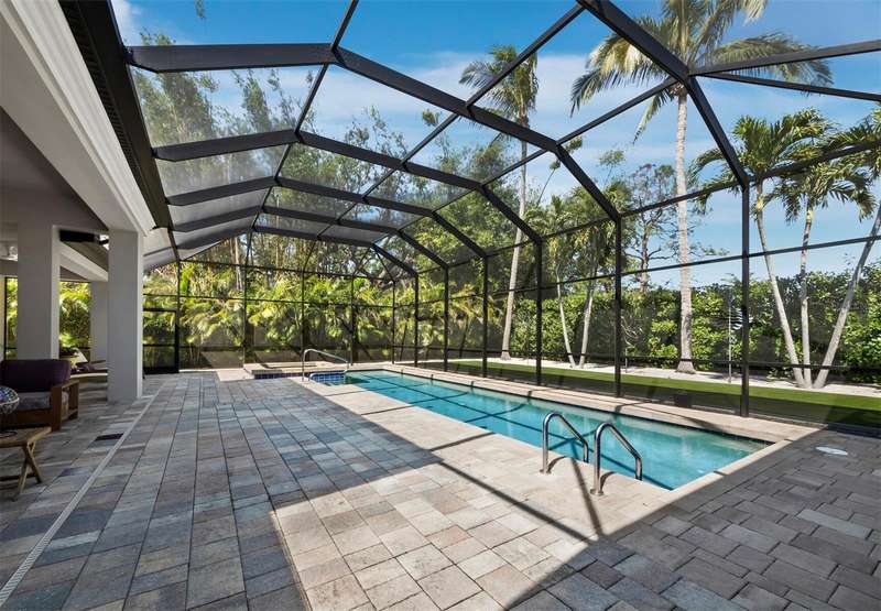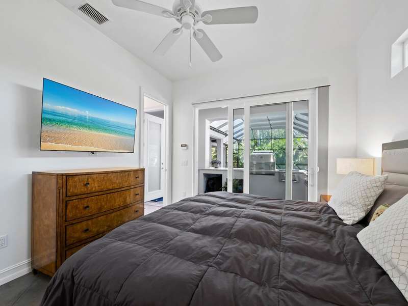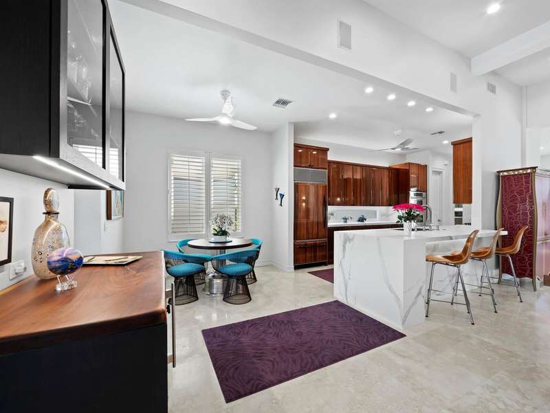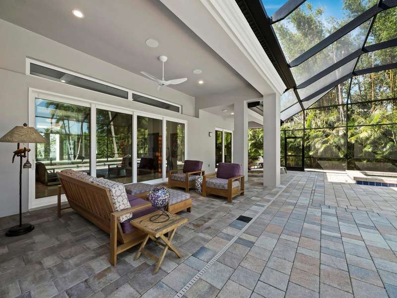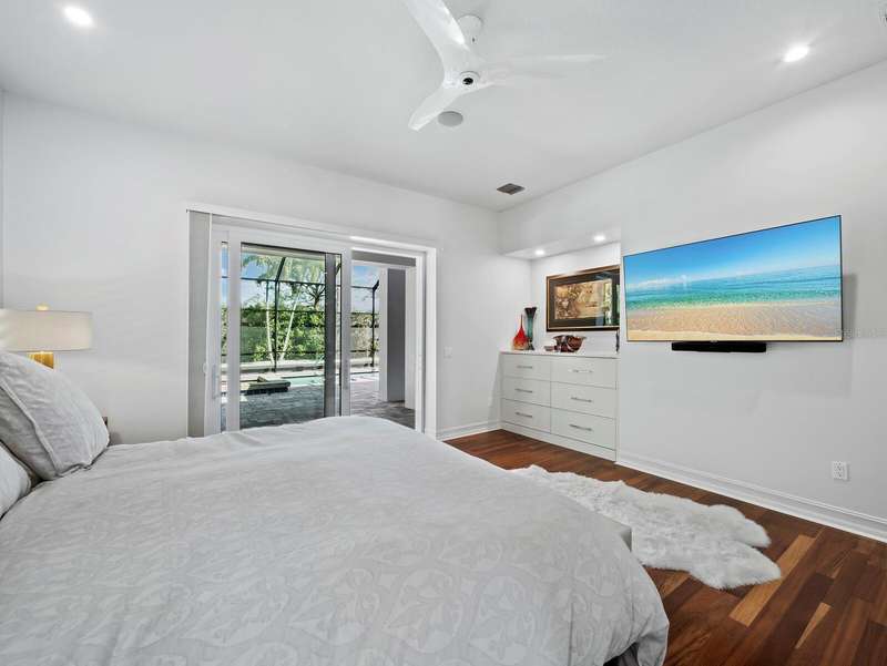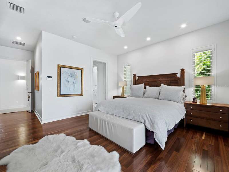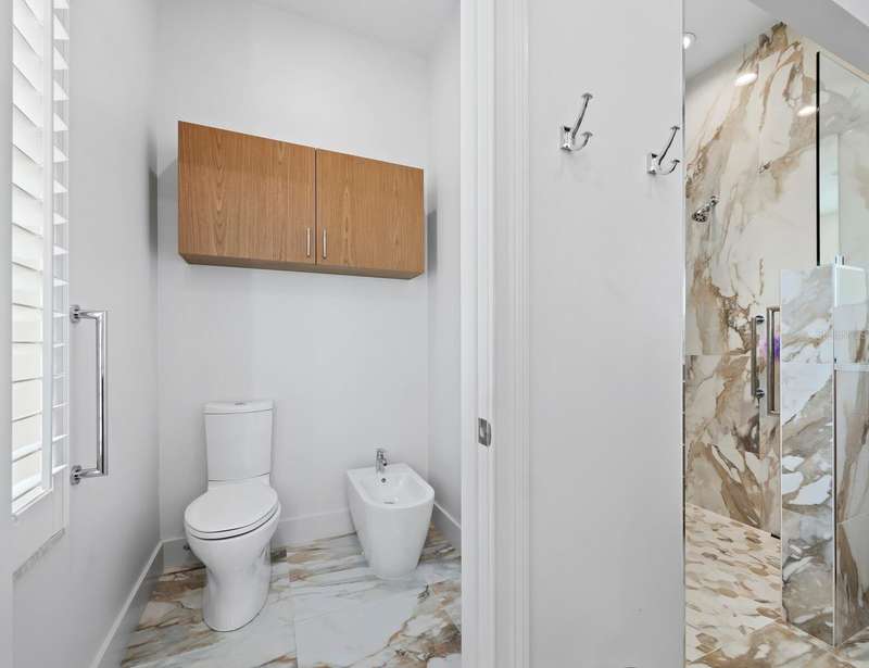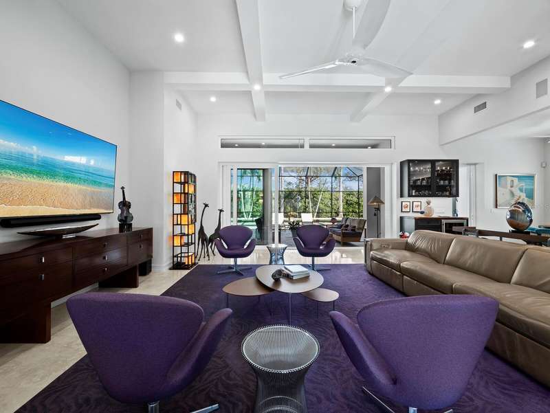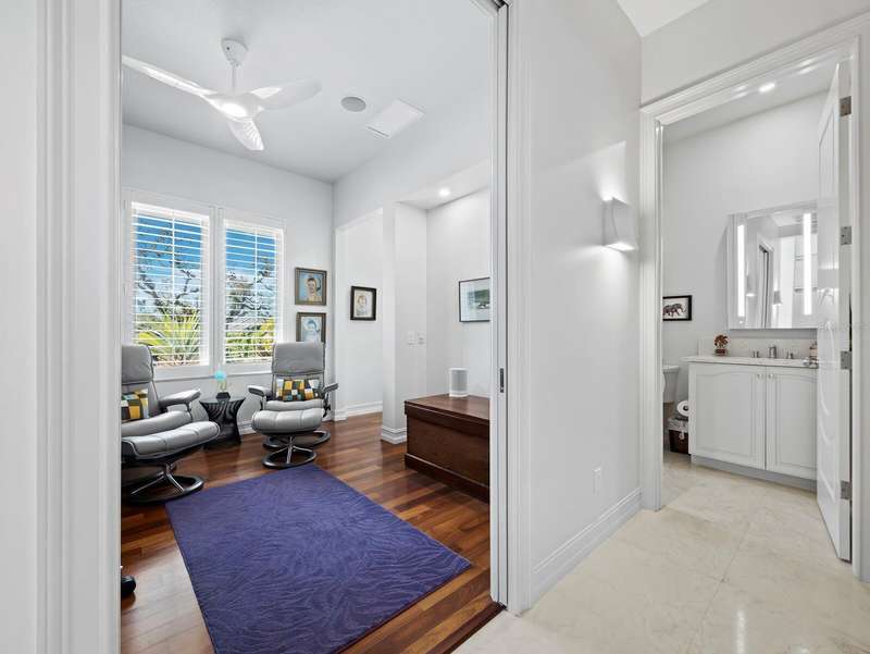 This exceptional custom-built residence with separate guest quarters is located in the highly sought-after Oyster Bay Estates on over half an acre of land and offers a private, luxurious lifestyle and a unique blend of modern upgrades. Situated in the desirable ‘West of Trail’ community near Sarasota Bay, the main house features 10-12 ft ceilings, travertine flooring, and surround sound throughout. The galley-style kitchen showcases exotic custom Padauk cabinetry finished in a high gloss lacquer, granite countertops, paneled Sub-Zero and Bosch dishwasher, double ovens, new Wolf cooktop with a stainless-steel hood, and a spacious pantry with new cabinetry, sink, and faucet. The laundry room is also well-appointed with white oak cabinetry, large sink, and overflow storage for extra appliances. The primary bedroom offers dual walk-in closets with wood cabinetry, fabulous and functional built-in drawers, individual vanities, and a separate dual-head shower with large square exotic stone tile. Off the primary bedroom is an office/den that could serve as an additional en suite bedroom. The oversized screened lanai, featuring brick pavers, is perfect for outdoor living, complete with a heated 40-ft lap pool, and a spa. The separate guest quarters, offering privacy yet convenience, includes a gathering space or bedroom, an office, and a full bedroom suite with a bath. The home is further enhanced with a pillared entrance, large driveway with extra parking, side-entry 3-car garage, and a NEW METAL ROOF IN 2025, adding to its curb appeal. Other recent updates to the home include: Master bath: re-tiled, new vanity, toilet, bidet, shower fixtures, and Robern mirrors - Guest bath: re-finished vanity, new top, toilet, shower - fixtures, and Robern mirror - Guest house bath: new vanity, mirror, and lighting - Kitchen: new countertops, cooktop, dishwasher, sink, faucet, and pantry with new cabinets, sink, and faucet - Washer and dryer, wine bar with beverage center in the main house - Coffee bar with a fridge in the guest house - Guest house floor refinished with polished concrete - Fresh paint inside and out - Windows and doors - Kohler generator, new secure entry gate, and new low-maintenance AstroTurf throughout - Grill, hot burner, and pizza oven on the lanai - Pool heater, re-screened lanai, irrigation system, driveway, and landscaping - LED landscape lighting and insulated attics - Blue light to AC units and Vacuum sweep outs . This home blends exquisite custom details with extensive recent updates and a thoughtful floor plan to provide a remarkable living experience in one of Sarasota's most desirable neighborhoods.