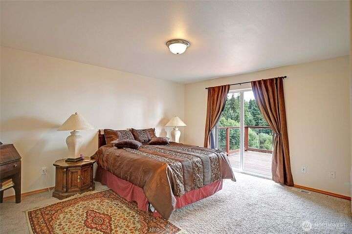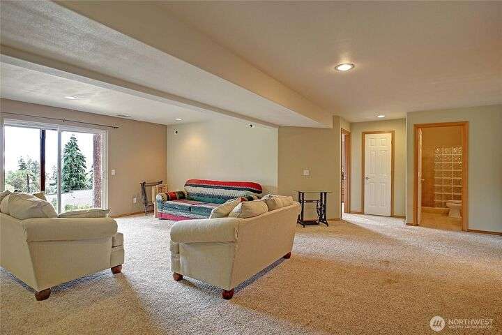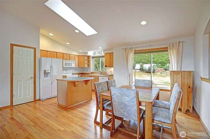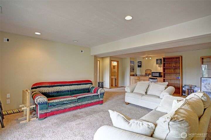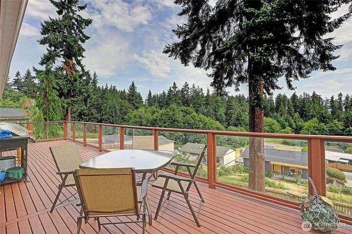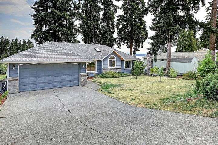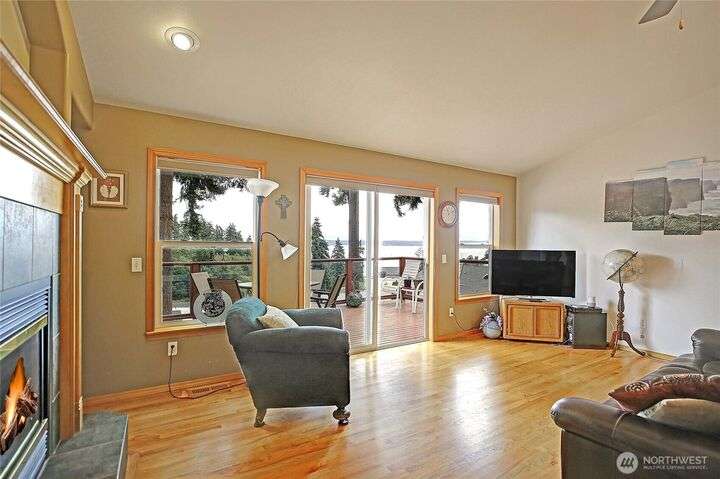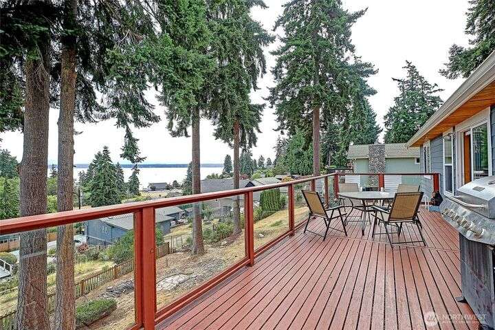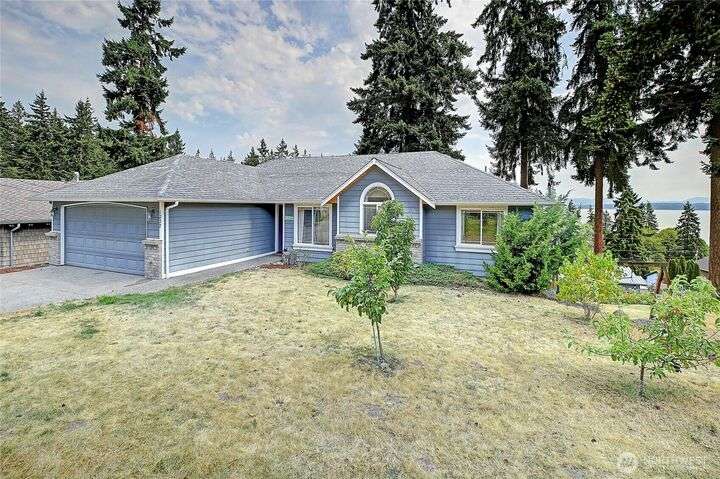 Sweeping Sound & Cascade views! Daylight rambler with 3+ bedrooms and an open great room featuring vaulted ceilings, skylights, and picture windows that capture the scenery. Main floor offers an entertainment-sized deck, primary suite, and two additional bedrooms. The lower level includes a spacious bonus room with wet bar, rec room, office/bedroom, and ¾ bath. Enjoy the natural beauty of large fir trees, plus access to three Country Club beaches for boating, crabbing, and island living. Convenient to shopping and State Parks. New roof to be installed mid September.