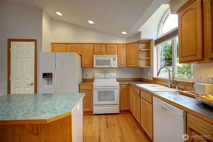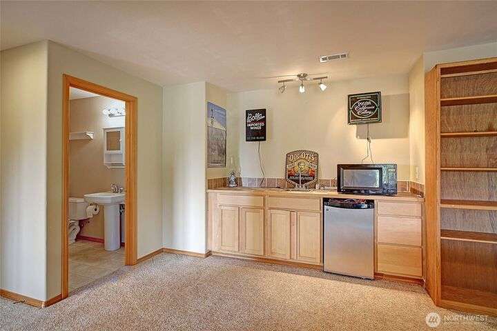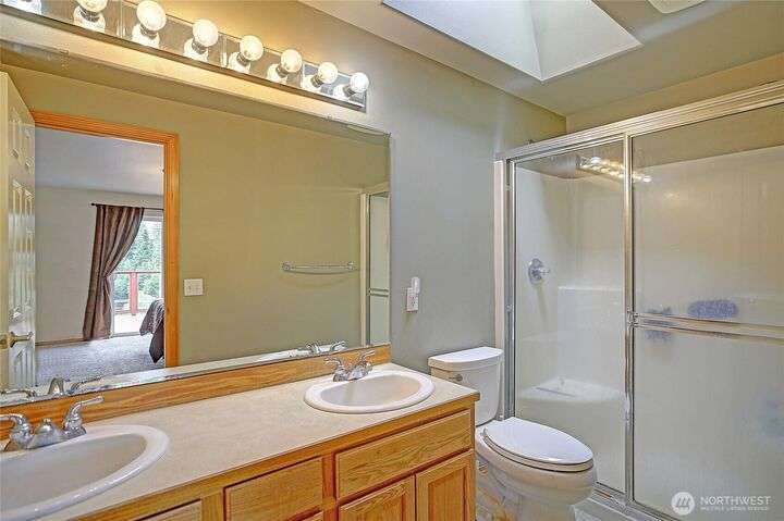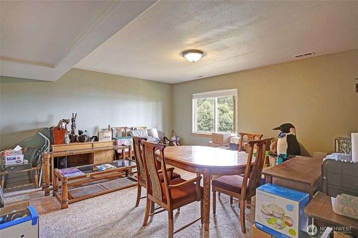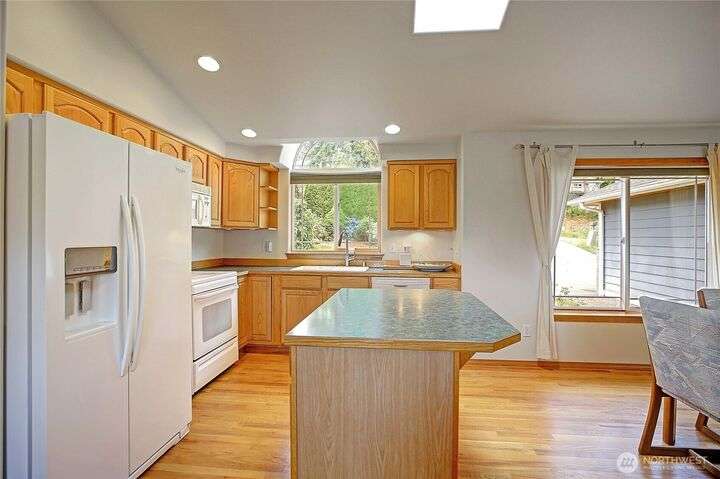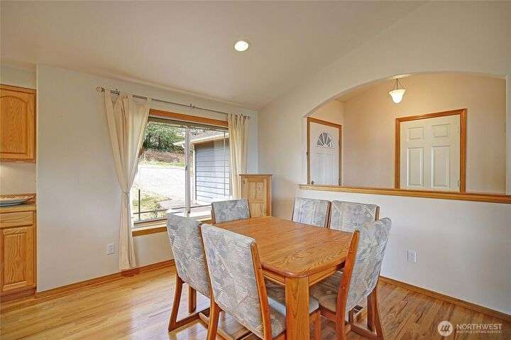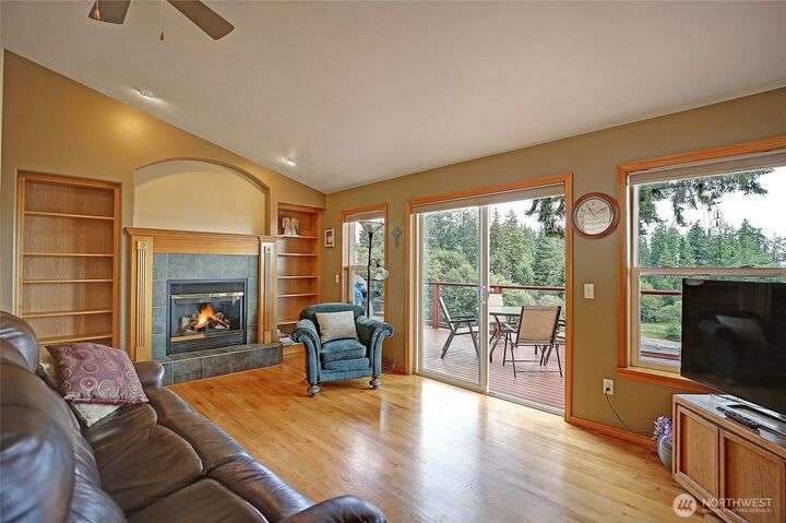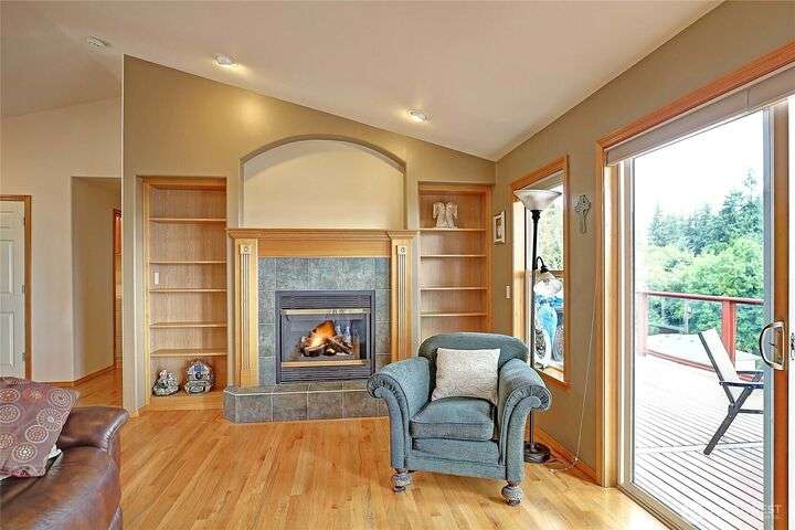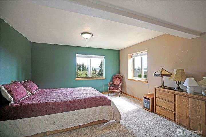 Sweeping Sound & Cascade views! Daylight rambler with 3+ bedrooms and an open great room featuring vaulted ceilings, skylights, and picture windows that capture the scenery. Main floor offers an entertainment-sized deck, primary suite, and two additional bedrooms. The lower level includes a spacious bonus room with wet bar, rec room, office/bedroom, and ¾ bath. Enjoy the natural beauty of large fir trees, plus access to three Country Club beaches for boating, crabbing, and island living. Convenient to shopping and State Parks. New roof to be installed mid September.