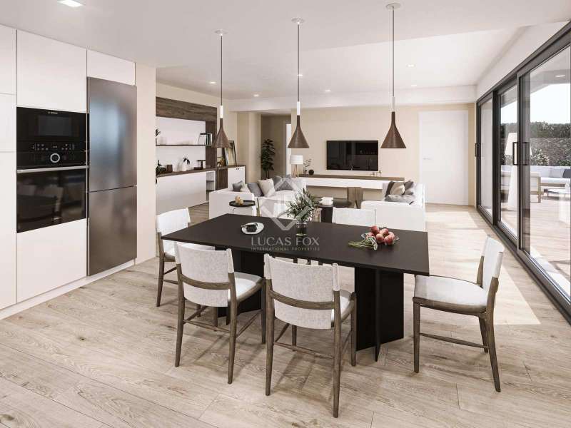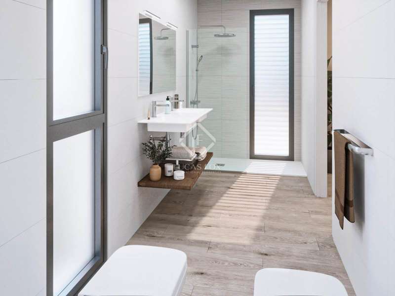 Lucas Fox development the new construction development offered in a private and exclusive residential area surrounded by pine forests with views of the Mediterranean Sea. The complex offers a large communal area with a swimming pool, a gourmet room, an outdoor gym, a solarium and green areas. This newly built villa has a surface area of 136 m² on a 360 m² plot close to the only golf course on the island in Son Parc, Es Mercadal. The property has a beautiful garden area with a swimming pool and a private garage. It is distributed on two floors. The ground floor has a double bedroom with a built-in wardrobe , a bathroom and a spacious living-dining room with an open integrated kitchen, all with large windows, allowing plenty of natural light to enter. From this space you can also go out to a beautiful porch, as well as the garden, the pool and the garage. The first floor has three double bedrooms with built-in wardrobes and a private bathroom with access to two terraces. It has high quality finishes. The kitchen is furnished with contemporary furniture from the Porcelanosa brand, a compact countertop and equipped with Bosch appliances : induction hob, hood, oven and microwave. The houses will have a hot-cold air conditioning system and a home automation system. An ideal property for families, either as a first or second residence in a privileged development . The development has a building license and will begin in January 2023. Its completion is expected in September 2024. Contact us for more information or to arrange a visit.