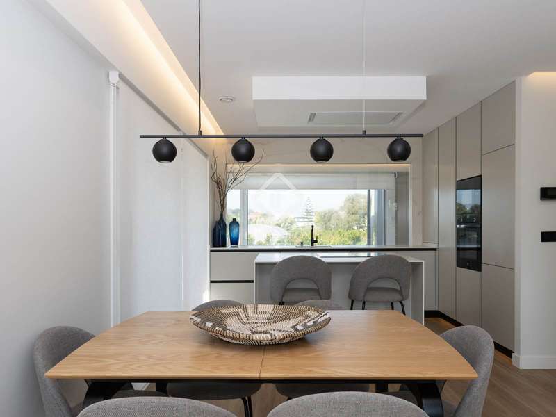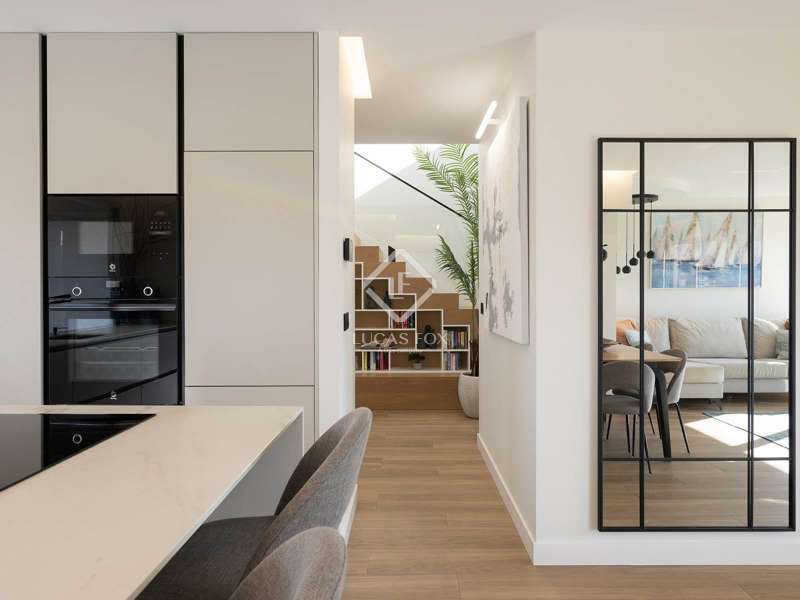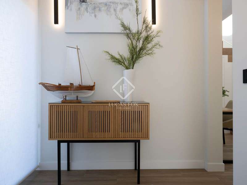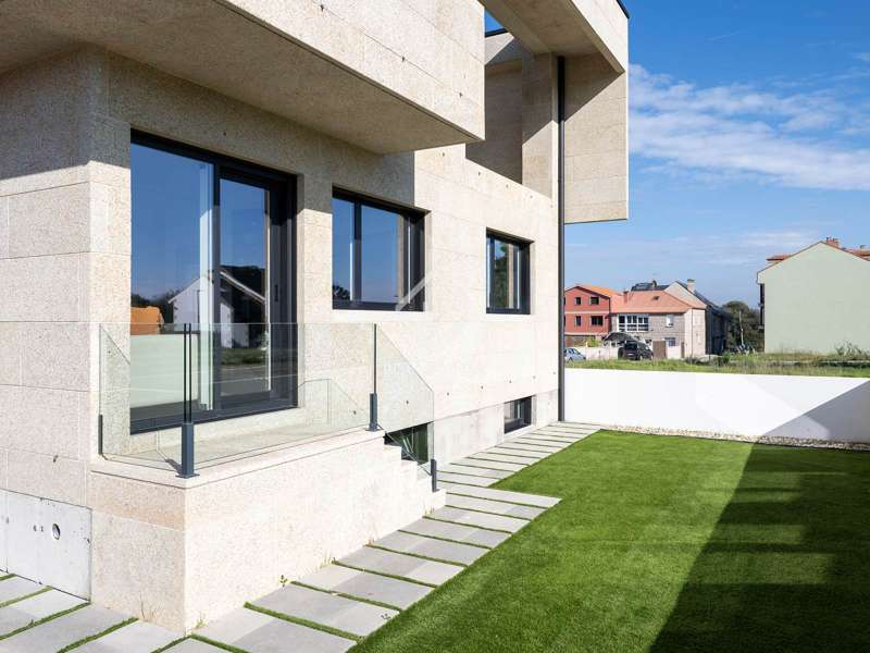 A modern four-bedroom house with all the modern conveniences is found in the beautiful and sought-after island of Arousa, in the Arousa estuary. The house is less than five minutes from the nearest beach on an island known for its natural park and stunning natural landscapes. The property is found in a residential area of the island, on a small plot, and has its own private garage at the basement level. From outside it has a contemporary appearance, yet is constructed mainly from traditional stone. On arrival on foot there through the front door, we are met with a hallway with lot of natural light provided by a long skylight, and tall windows. To the right there is a fitted kitched, practically unused, complete with island and stylish indirect lighting, a feature which is used throughout the property. Next to the kitchen, as part of the open-plan layout is a dining area and living room to the rear, with access to the garden. The wooden laminate flooring uses an air-source heat pump for the underfloor heating. And there is also an air ventilation system which guarantees air quality, exchanging fresh air for the air inside the house without losing heat. One double bedroom with fitted wardrobes and furniture is available on the ground floor, as well as a bathroom with shower. Taking us up to the first floor is an open staircase with glass screen and a galleried landing above. On this level we find the main bedroom with king size bed, a double, and a single room that could also be used as an office. There is a large main bathroom complete with shower enclosure and the bedrooms feature bespoke fitted furniture. Down to the basement level, we find a double garage, machine room and storage space. This house would suit anyone looking for a second home near the beach in Galicia, or for those looking for a more relaxed lifestyle is a community on the island all year round. It would also make an interesting investment for the holiday rental market. The house was completed in 2023, and is in almost as new condition.