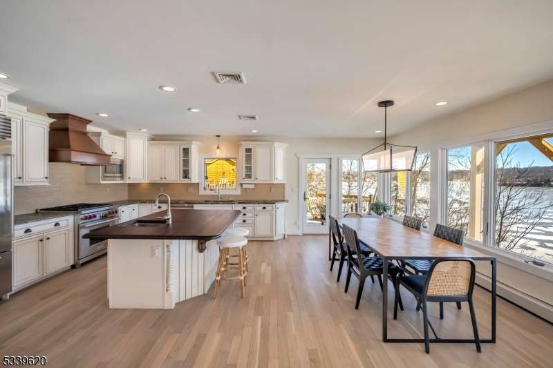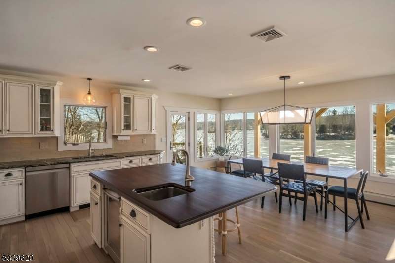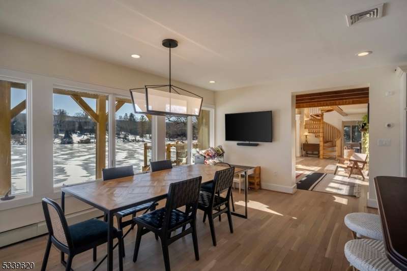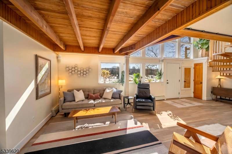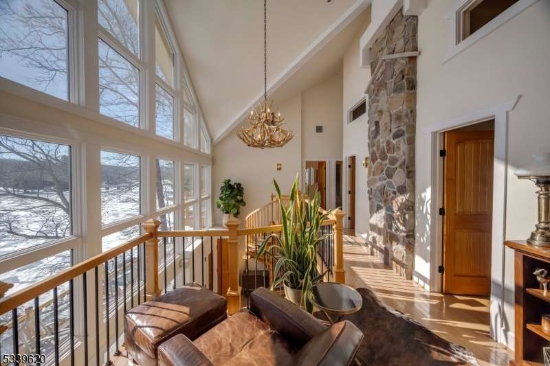 THIS is the opportunity you've been waiting for! Here we have one of Lake Mohawk's most prestigious landmark properties, featuring unparalleled views of Tamarack Cove, Main lake, The Boardwalk, Manitou Cove and beyond. Experience sunrises like never before, whether out on one of the four east-facing decks or taking it all in from one of the incredible indoor spaces, the views and privacy of this Lake Mohawk stunner are unlike any other! Incredible location offers a unique balance of quick accessibility to town and commuting routes yet unrivaled in lakefront privacy! Inside you'll find the heart of this home is the spacious chef's kitchen highlighted by WOLF and SubZero appliances and designed for gathering, entertaining and of course; cooking! Large center island w/ bev fridge and prep sink overlooks dining area with a wall of windows making for fabulous dinner views. Spend colder days relaxing in front of the wood burning fireplace of the centrally located living room or enjoy your favorite book while unwinding in the cozy den alcove. Family room off of living room is super versatile, use as studio/sitting room/tv room - features sliders to deck. 2nd level showcases a spectacular balcony room, making excellent use of the 2-story window wall; one of this home's trademark features! 4 spacious bedrooms and an office w/ balcony all feature soaring vaulted ceilings. Primary suite w/ double door entry, skylights and private deck! L Shaped dock w/ electric and composite decking!