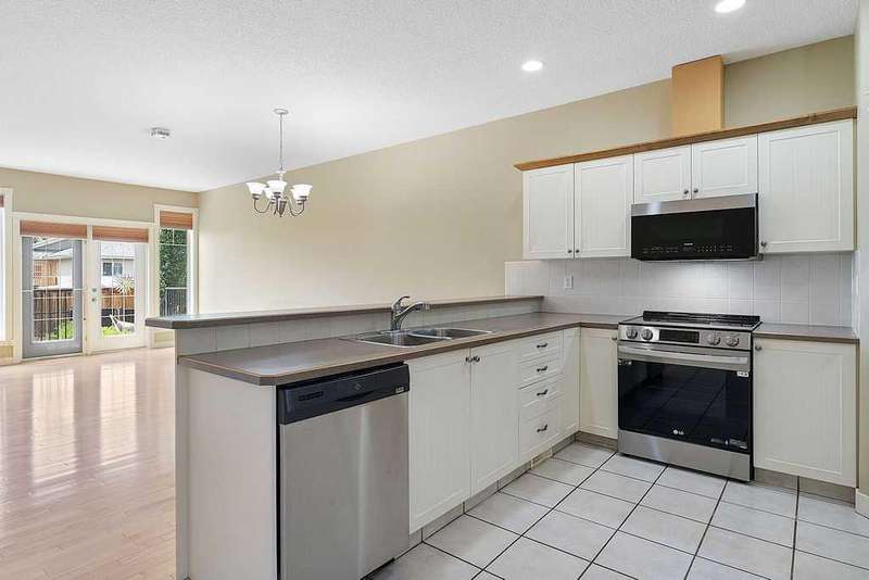 This home offers over 2,250 square feet of interior living space on the main and lower levels combined. It’s in excellent shape, located on a beautiful street in a very safe community, and surrounded by well-cared-for homes. The main floor is bright and spacious with a nice open floor plan featuring beautiful cabinetry, a new stove, a new built-in microwave, and a corner gas fireplace. The main floor has 2 bedrooms, a full 4-piece common area bathroom, and main-level laundry. The primary bedroom is quite spacious and includes a luxurious ensuite bathroom with twin sinks, a separate shower, and a large soaker bathtub. On the lower level, the framing, electrical, and drywall are already completed. The layout is great, with a massive living room, a third bedroom, a 2-piece bathroom (could easily be converted to a full bathroom), and plenty of storage. This level is also nice and bright, with large windows letting in lots of natural light. The backyard faces west, so there’s plenty of sunshine to enjoy here year-round. This home is rounded off with a decent-sized single attached garage — super convenient in the winter months. There is plenty of room on the driveway for a second vehicle, there is street parking available, and there is also an alley out back for back yard access if desired. This is a great opportunity to get into a home with no condo or HOA fees, and also a chance to substantially increase the value by finishing off the basement to suit your needs. If you haven't heard about it, ask your mortgage professional about getting additional mortgage money for completing the lower level called "Purchase Plus Improvements". Please reach out to book a private viewing at your convenience.