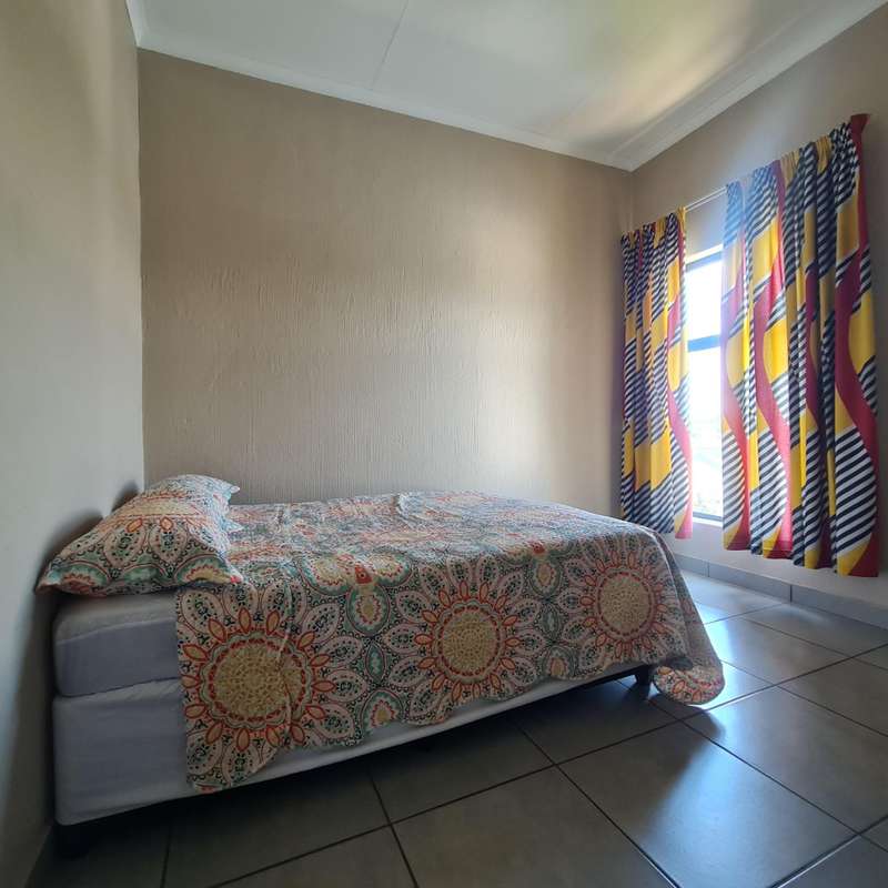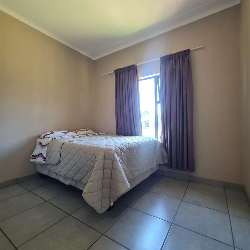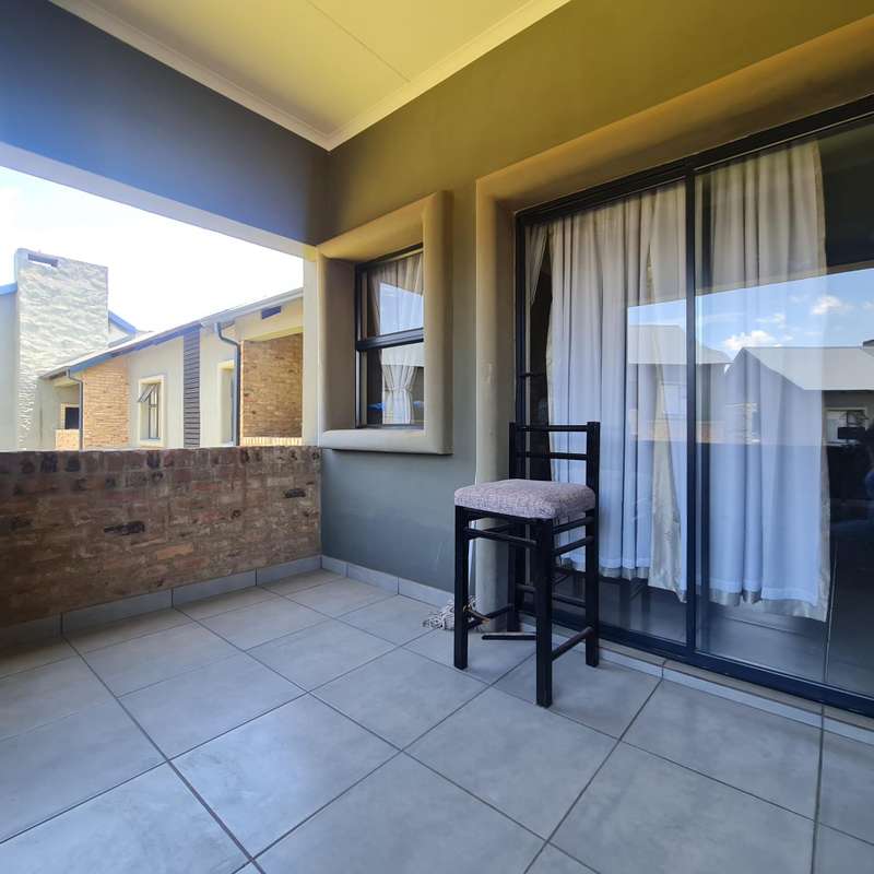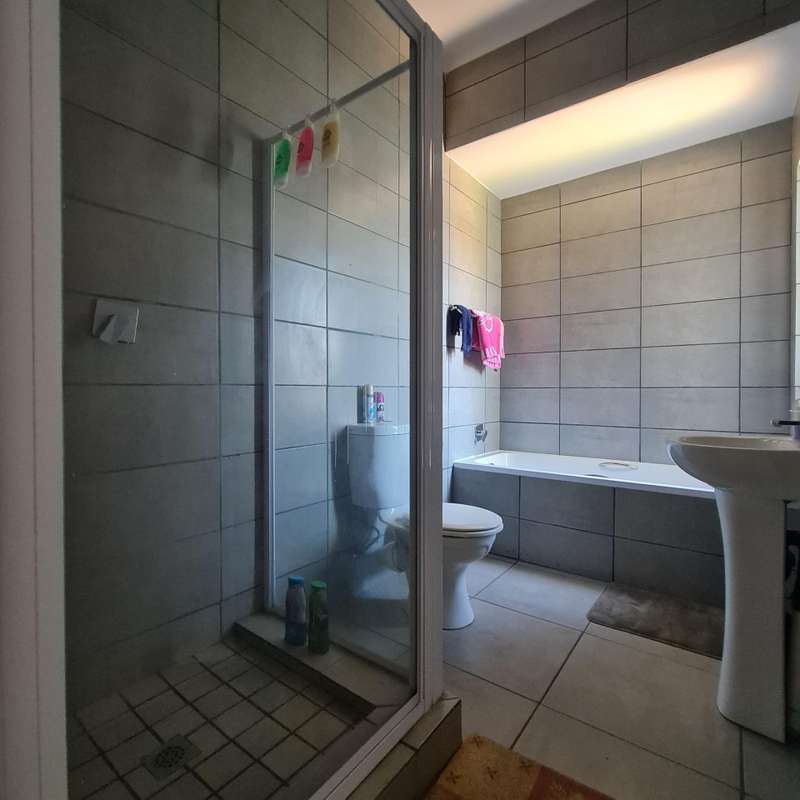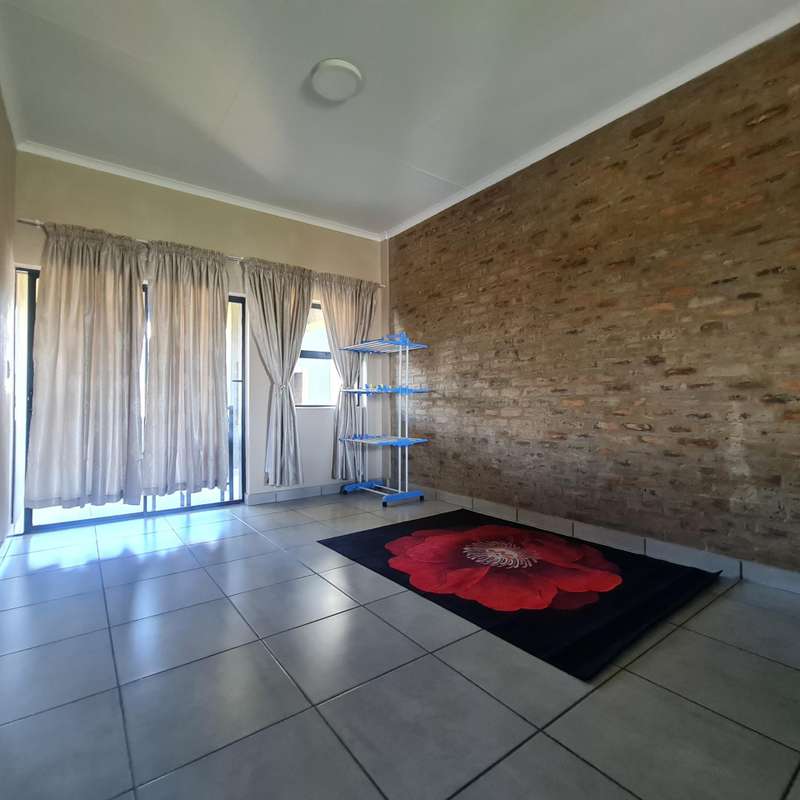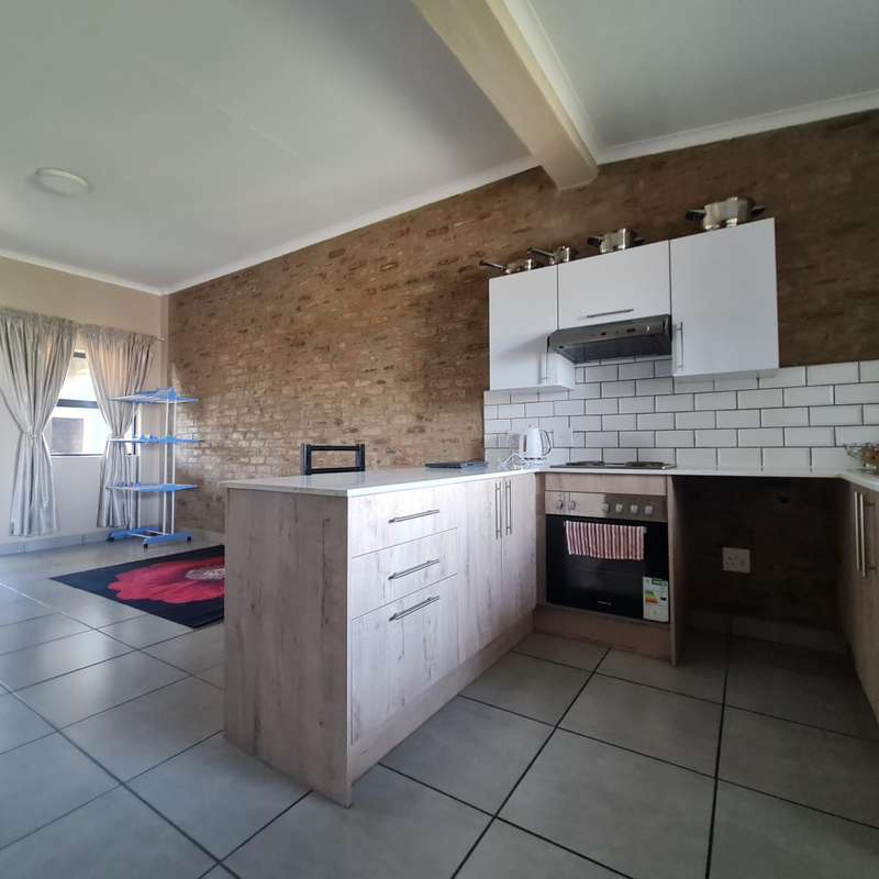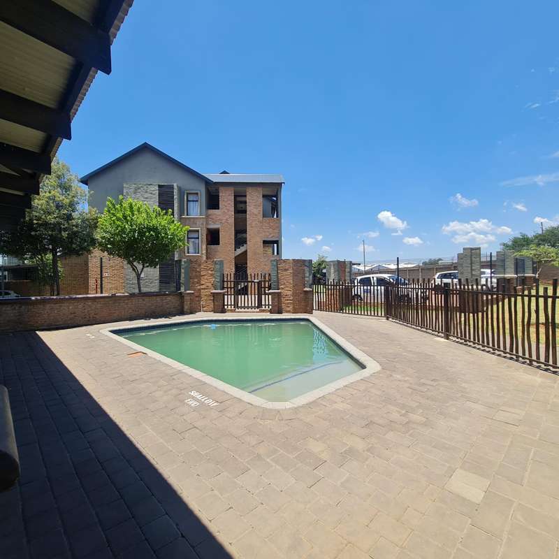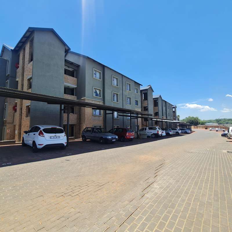 2 Bedroom, 1 Bath, Second floor 67sqm apartment. Open plan lounge with kitchen. Estimate rates R860pm and levies R1200pm. Swimming pool with club house. No pets allowed. Covered balcony with built in braai. Pre-paid electricity and pre-paid water. One covered parking and visitor's parking.