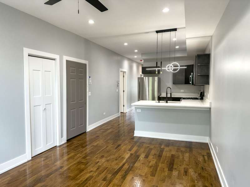 Top-floor, condo-quality 3BD/2BA in West Humboldt Park! Completely rehabbed unit with new finishes throughout. Modern kitchen features quartz countertops, deep stainless-steel sink, new stainless-steel appliances, abundant cabinetry, and generous counter space. Open layout with real hardwood flooring, central heating/air, and in-unit washer/dryer. One assigned outdoor parking space included. No pets, no smoking. Tenant responsible for utilities. Convenient West Humboldt Park location near public transportation and neighborhood amenities.