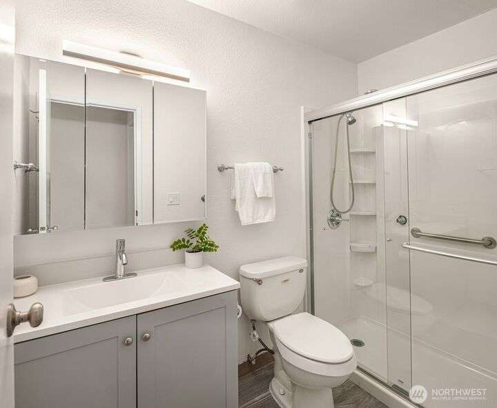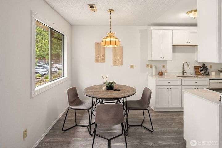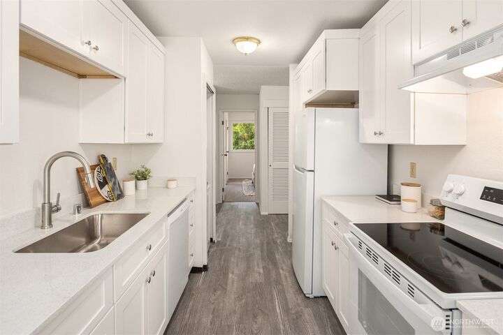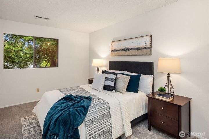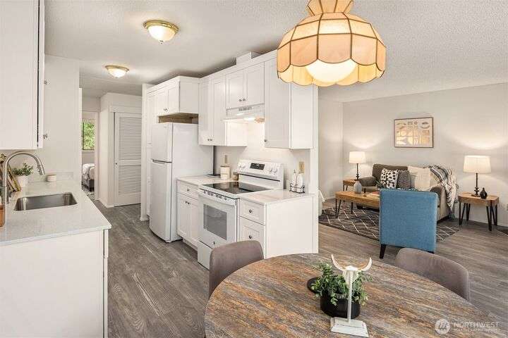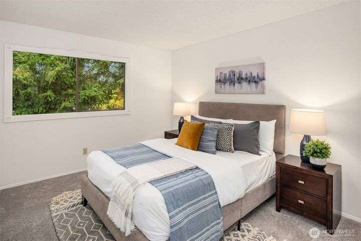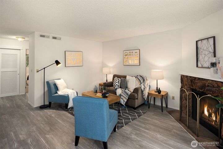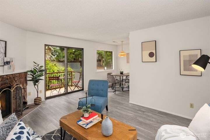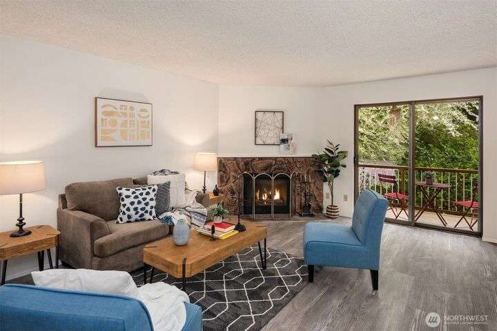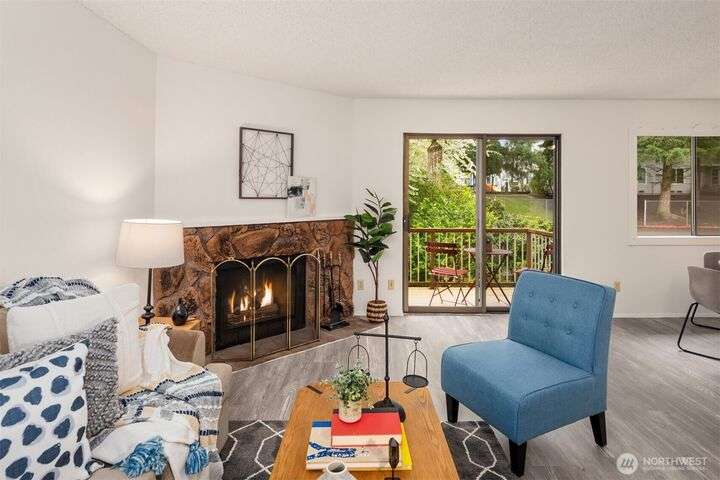 Fully remodeled and move-in ready! This spacious 2-bedroom condo features a beautifully updated kitchen with new cabinets, countertops, sink, faucet, and dishwasher. Fresh paint, new carpet in bedrooms, and new flooring throughout. Cozy living area with wood-burning fireplace opens to a private balcony. Storage is plentiful, including a large walk-in pantry that could easily double as a compact home office. Generously sized closets, a reserved parking spot, and ample visitor parking complete the package.Tucked within a quiet, well-maintained community in the highly rated LWSD, and just minutes from some of Lake Washington’s best parks and outdoor spaces. Seller offering interest rate buydown to reduce buyer’s monthly mortgage payments.