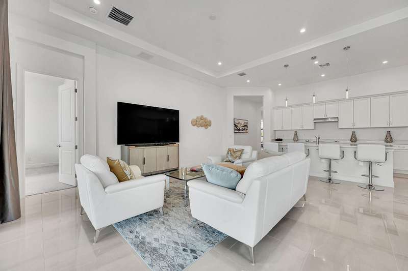 This 2024 CBS home in PGA Verano offers a split floor plan, premium upgrades and a move-in-ready lifestyle. Featuring 3BR/2BA, this bright and open layout includes impact glass, sleek tile flooring, quartz counters, stainless appliances, 16x10 sliders, and a large kitchen island. The extended lot showcases long lake views, ideal for a future pool. Enjoy a spacious primary suite with spa-like bath and walk-in closet. Veranos resort-style amenities include indoor/outdoor pools, 27 pickleball courts, clubhouse, fitness, tennis, and more. HOA includes cable, internet, lawn care, and security.