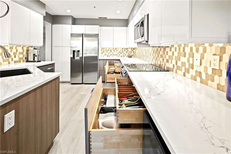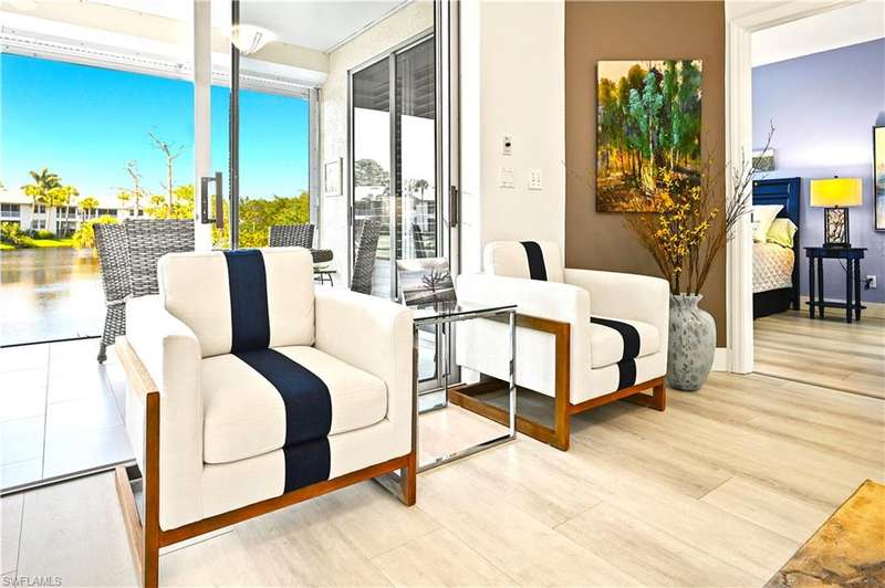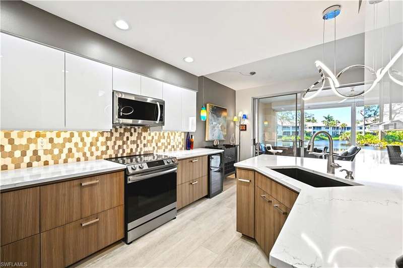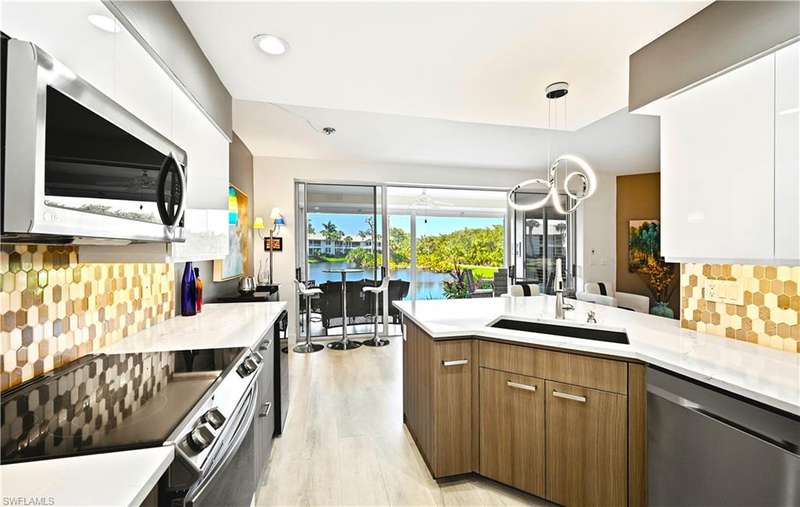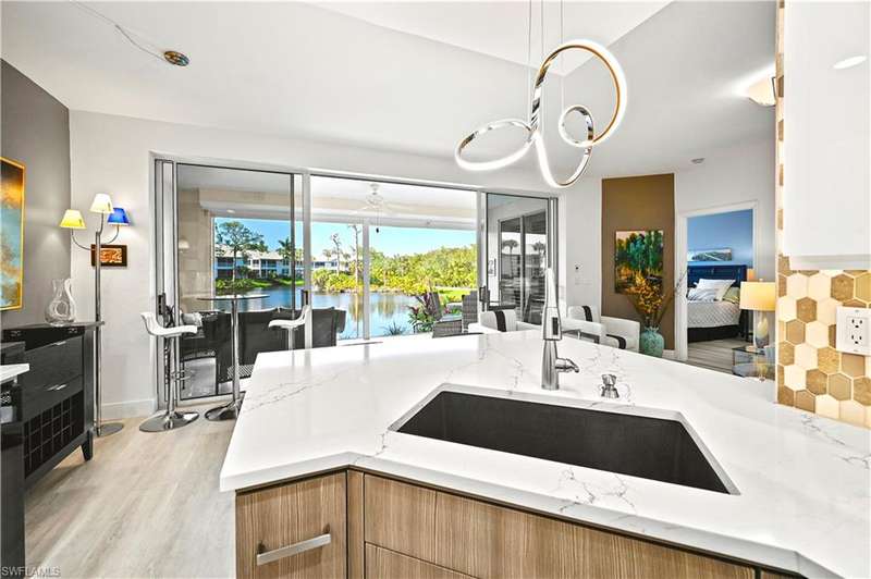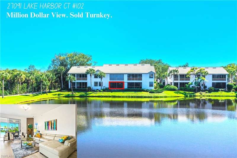 A SPECIAL UNIT! ABSOLUTELY STUNNING WHERE NOTHING WAS OVERLOOKED & NO EXPENSE SPARED. THIS IS AS CLOSE TO PERFECTION AS YOU CAN GET. Truly a MUST SEE IN-PERSON! HIGH-END remodel with European influence DESIGNED TO PERFECTION. Over 175K in renovations and NO FLOOD DAMAGE from Ian, Helene or Milton. This FIRST FLOOR UNIT, WITH LONG LAKE VIEWS, IS .. GORGEOUS. At this price point, YOU WON T FIND A BETTER UNIT IN ALL OF BONITA BAY. Modern and tasteful finishes in every room, you will surely be impressed. And, rest easy, knowing EVERYTHING stays and is sold TURNKEY. If you enjoy the finer things in life, this unit is for you! Located at the END OF THE Cul-De-Sac, you have privacy, virtually NO TRAFFIC, and it s extremely quiet, as building 91 is the LAST BUILDING. This unit truly embodies Bonita Bays mission statement, Residents living in harmony, with nature. Harbor Lakes is a special community with lush landscaping, beautiful lakes, ATTACHED GARAGES, a modern pool/club house, while
