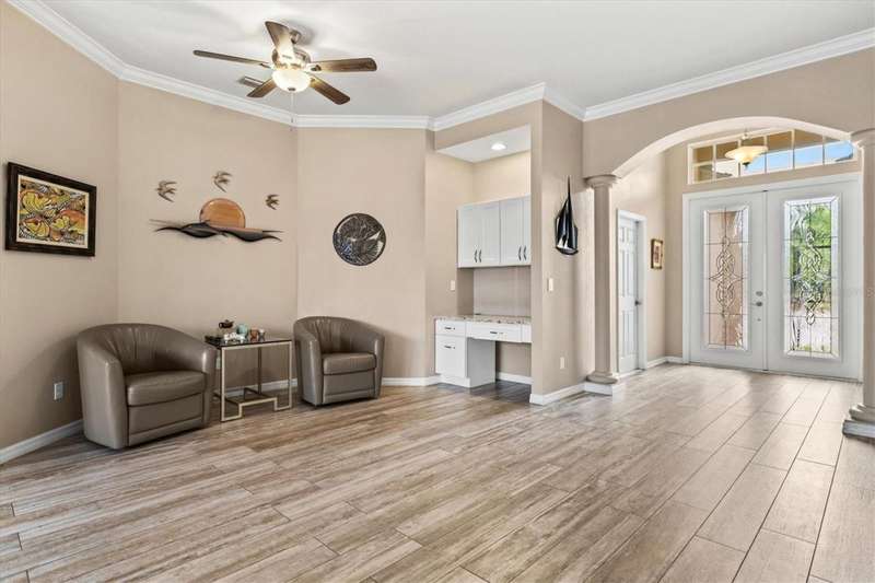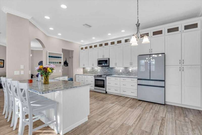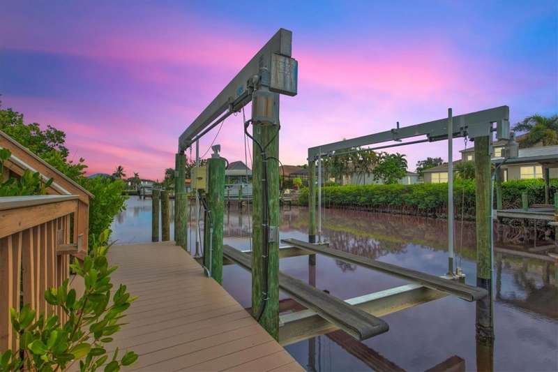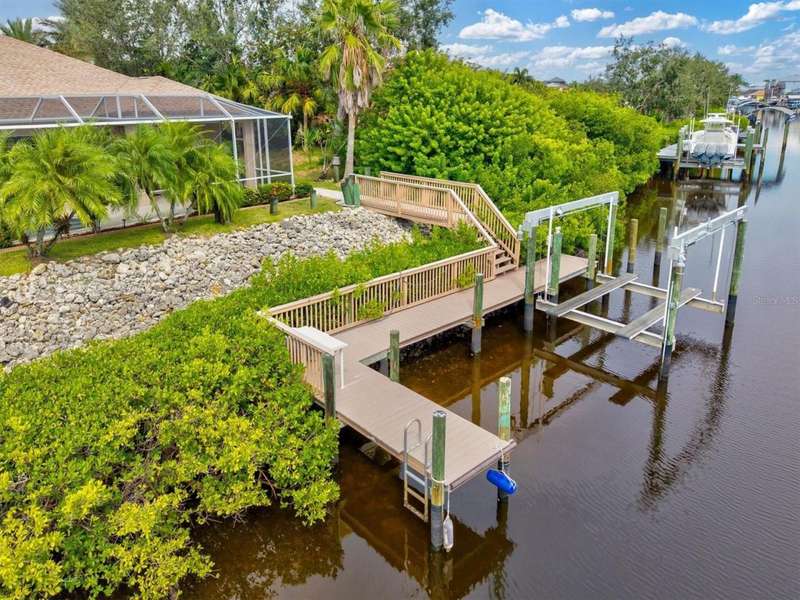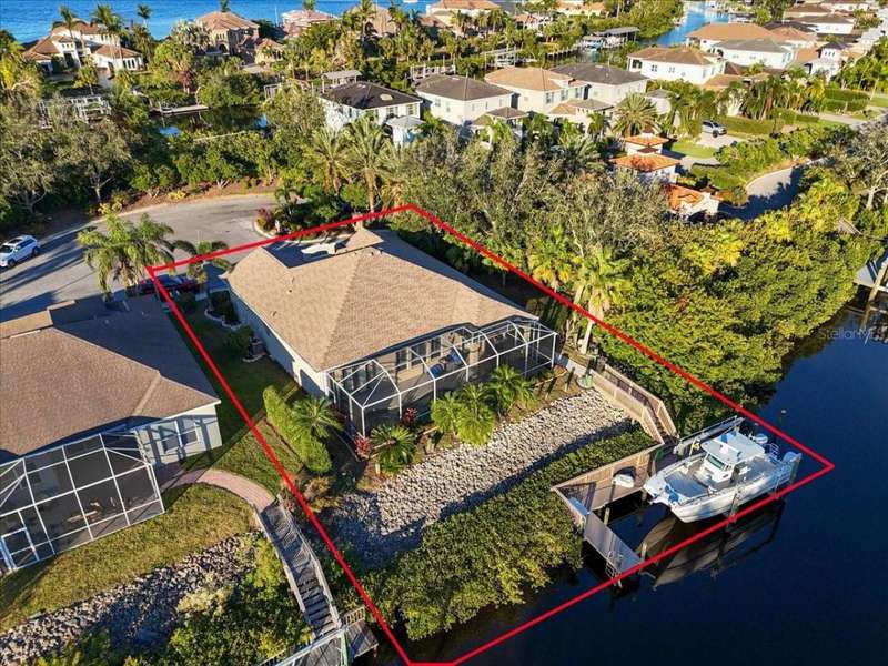 Berth your boat at your private extended dock, fully equipped with water, 30-amp electric, and a 16,000 lb. lift with remote control. Perfectly positioned on the widest part of the saltwater canal, this prime waterfront location provides DIRECT access to the Manatee River, Gulf of Mexico, and Tampa Bay. Your waterfront playground awaits ! Seller owns and will sell the adjacent lot, adding 80' waterfront. Creating a combined total of almost 160 feet of waterfront. Unique opportunity to create a dream retreat dock or add another boat lift. Inside, this tastefully renovated home features stunning wood-look tile and high-end finishes throughout. The chef's kitchen boasts custom white shaker cabinets extending to the ceiling with glass accents, quartz countertops, low bar and upgraded Samsung appliances (2024). The open floor plan is ideal for entertaining, flowing seamlessly through French doors to the covered lanai. After a day of boating, fishing, jet skiing, paddleboarding, canoeing or kayaking, relax with a cocktail by your renovated saltwater pool with new equipment. Meticulously maintained and upgraded to the highest standards, this home includes a new high-efficiency 15 SEER HVAC (2025) with 10-year parts and labor warranty, roof (2020), water heater (2020), impact windows and doors, hurricane shutters for French doors, plus a smart garage, security system, and closed circuit camera system for peace of mind. The location is unbeatable-15 miles cruise to the Gulf with only 1 short no wake zone. Explore coastal islands, or stop at local waterfront restaurants along the way. Nestled in the friendly hidden gem of River Pointe, residents enjoy low HOA fees, no CDD fees, and convenient access to I-75, St. Petersburg, Sarasota, the Village of the Arts, Historic Riverwalk, world-class shopping, dining, beaches, and nightlife. This waterfront paradise offers more than a home-it's a winning combination of lifestyle and location!