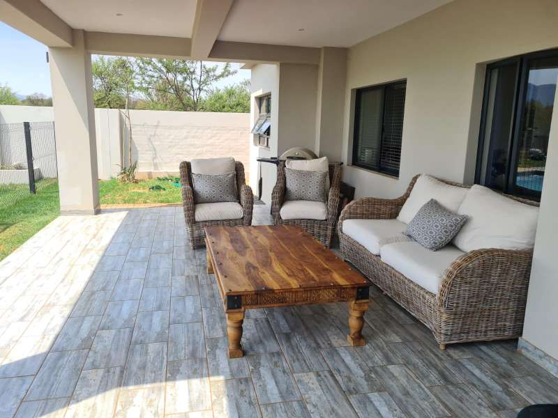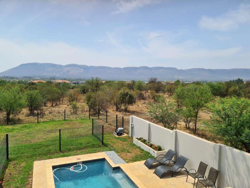 STYLISH AND ELEGANT Immaculate attention to detail and quality finishes is seen throughout this home. Situated in La Camargue Private Country Estate. Estate offer a serene country lifestyle without compromising on security, quality and comfort. Here you can find this spotless home with 5 bedrooms, 3 bathrooms, a study, loft area and the most stunning kitchen with a scullery big enough for all your appliances. Open plan living areas with a double sided fire place leading to a covered patio and pool area ?Çô perfect for entertainment. Lovely big garden overlooking the Magalies mountains. Double automated garage with a large storeroom. This home has terrific extras ?Çô 12 panel solar system with 2 batteries and inverter, gas geyser in guest bedroom downstairs and alarm system. A home not to be missed.