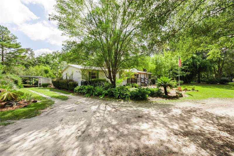 9 Acre Farm Retreat Bordering Conservation Land - Where nature thrives and wildlife roam!Welcome to your dream country escape! This stunning 9-acre property offers the perfect blend of natural beauty, practical farm features, and comfortable living - all just 10 minutes from Gainesville and only blocks from the popular Hawthorne-Gainesville bike trail.Tucked away at the end of a picturesque driveway lined with blooming crepe myrtle trees, this fully fenced and cross-fenced property backs up to peaceful conservation land, inviting a daily show of deer, birds, and other local wildlife right into your backyard.The land is thoughtfully designed for a small multi-animal farm and includes: Two huge paddocks, ideal for horses or livestock. A massive pole barn ready for your animals or equipment. Goat pen and a chicken coop with a run already in place. Beautifully landscaped yard with a park-like setting perfect for relaxing outdoors. Covered front and back porches, ideal for enjoying your morning coffee or evening breeze. Outside shower to cool off or rinse off after a day on the farmThe spacious 2,280 sq ft home features 4 bedrooms and 3 full bathrooms, with a smart layout and plenty of room to grow. The primary suite includes a large walk-in closet and an attached study or nursery - perfect for working from home or expanding your space. A generous second bedroom is oversized and could easily serve as a second primary suite.Inside, you'll love the open living room with a cozy fireplace and abundant natural light, and a bright, airy kitchen with ample cabinet space and countertops to accommodate any culinary needs. The indoor utility room comes complete with a utility sink for added convenience.An oversized carport provides covered parking and leads directly into a workshop shed, ideal for projects, storage, or hobby work.This exceptional property is truly move-in ready - all it needs is your animals and personal touch to make it home. With a prime location, serene surroundings, and everything already set up, this is a rare opportunity you don't want to miss!