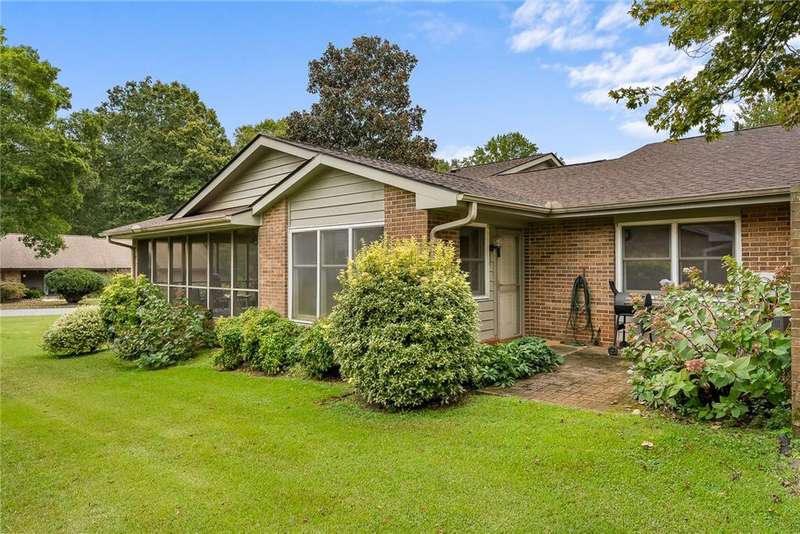 Nestled in the highly desirable Clemson Downs 55+ community, this well-built brick townhouse combines comfort, convenience, and charm in one inviting package. Beautifully sited on a large corner lot, this single-level home offers a bright, open layout that makes daily living effortless. Step inside to a spacious Great Room, where the living and dining areas flow together in one easy space perfect for entertaining or relaxing. Built-in shelving and cabinetry add both character and practical storage. From here, step out to the sweeping screened porch, an ideal spot to enjoy morning coffee, an afternoon nap, or the sounds of nature in your yard. The efficient kitchen features handsome granite countertops, ample cabinetry, and an easy workspace layout that keeps everything close at hand. The Primary Suite provides a generous retreat with an oversized closet and private bath, while a second bedroom and full bath offer comfortable space for family or visiting guests. The home has been thoughtfully maintained, with a new roof installed in 2020 and a new HVAC system added in 2022. They are key improvements that ensure peace of mind for years to come. Residents of Clemson Downs enjoy a vibrant, welcoming 55+ lifestyle. The Woodland Walk trail begins just across the street, offering a tranquil place for daily walks. Homeowners also enjoy access to amenities at the adjoining Clemson Area Retirement Center (CARC), including dining options, fitness and wellness facilities, and transportation services that are designed to make life both active and easy. This home offers the best of both worlds: a peaceful retreat and a friendly, connected community. Schedule your tour today and discover why Clemson Downs continues to be one of the area's most treasured places to call home.