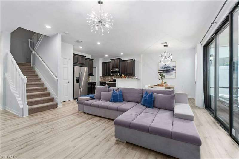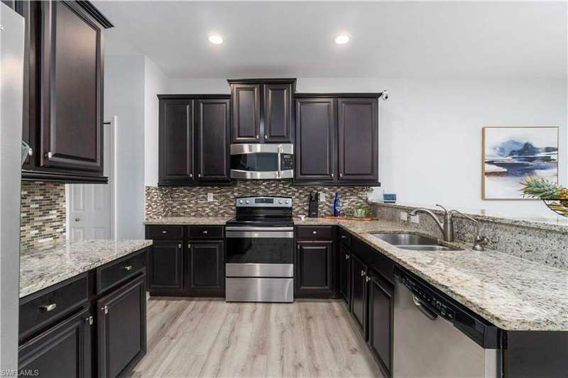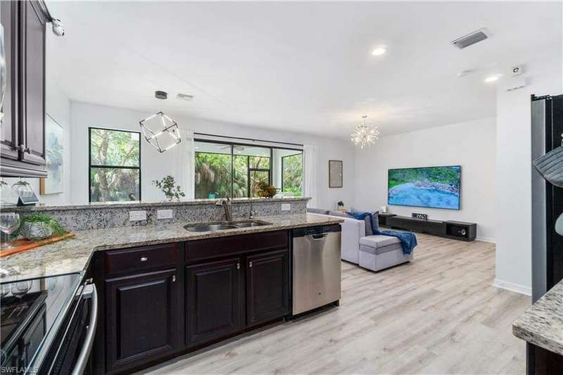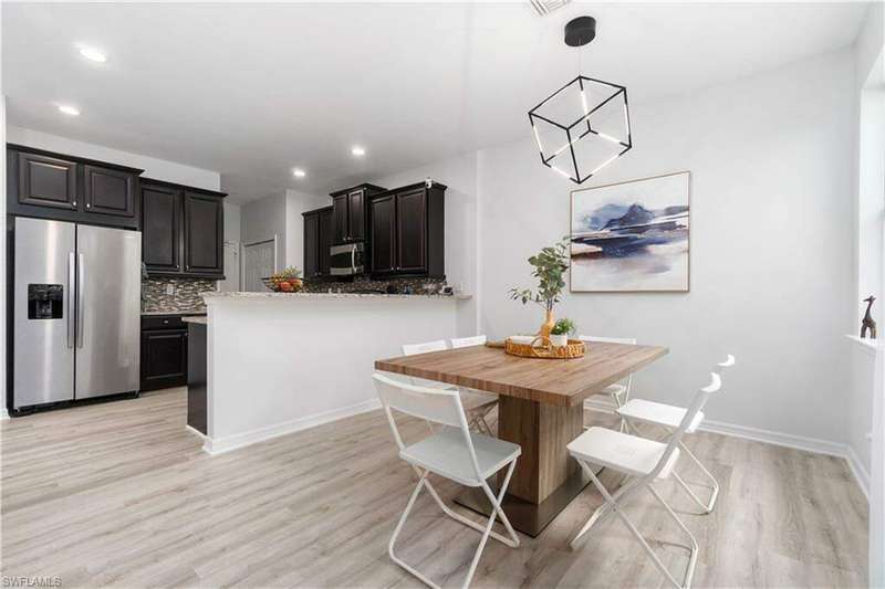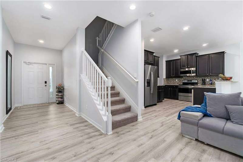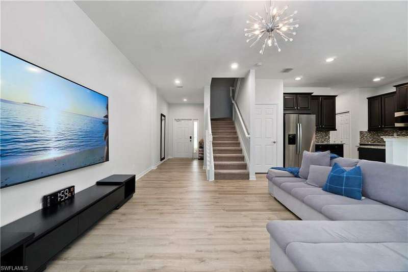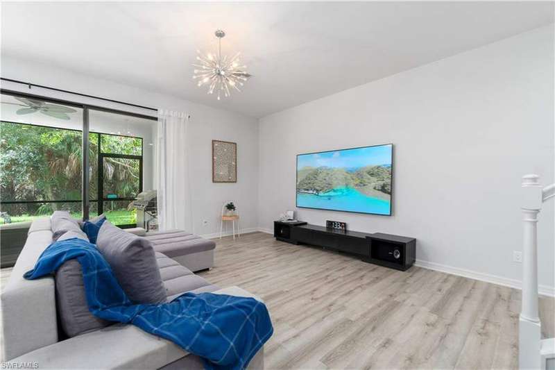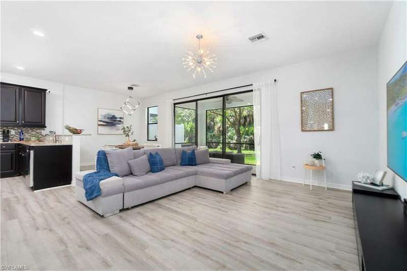 Newly renovated and exuding designer style, this immaculate home is the epitome of modern living, complete with full smart home technology for added convenience and luxury. Featuring brand-new luxury vinyl flooring and plush carpeting, complemented by elegant, modern light fixtures in every room, it feels like a fresh canvas ready to impress. The spacious, sunlit kitchen showcases top-tier cabinetry, along with a brand-new refrigerator and stove, perfect for both everyday living and entertaining. Step outside to a freshly repainted lanai, offering a private retreat for relaxation and outdoor enjoyment. This stunning residence boasts 3 bedrooms, 2.5 baths, and a large 2-car garage. The open-concept living area flows seamlessly to the covered lanai, ideal for cozy gatherings or quiet moments. Storage is plentiful throughout, with oversized closets providing ample space for all your belongings. Low HOA fees grant access to an array of upscale amenities, including a 24/7 guarded gatehouse, basketball courts, tennis and pickleball courts, a community pool with a hot tub, a clubhouse, BBQ picnic areas, saunas, a fully-equipped exercise room, a playground, and more. Nestled in a peaceful, dog-friendly community, this home offers the perfect blend of luxury, modern technology, and convenience. Centrally located just minutes from the famous Gulf Coast beaches, Mercato, Downtown 5th Avenue, I-75, Waterside, premier shopping, and fine dining, this home provides the ultimate Naples lifestyle.