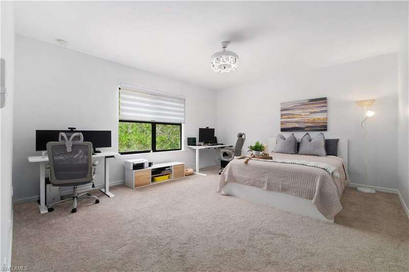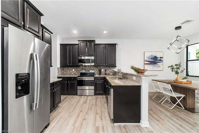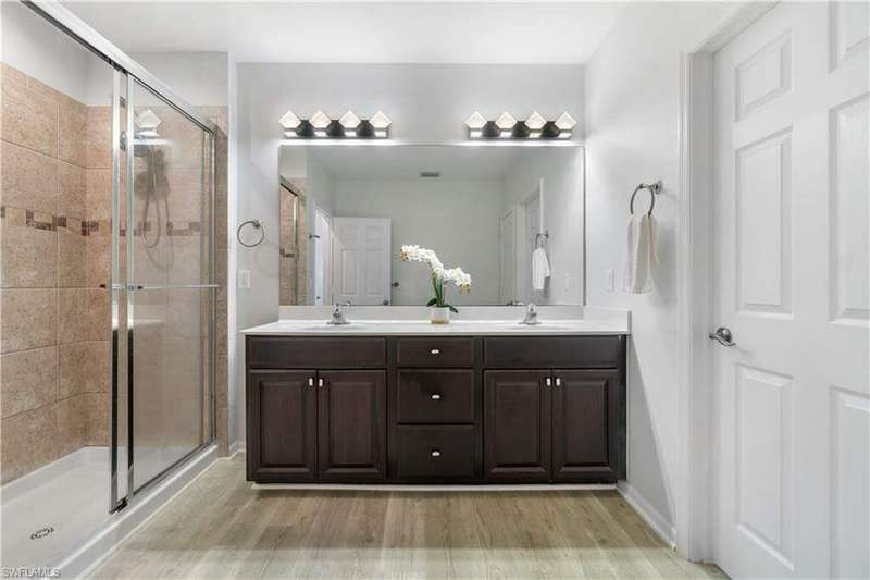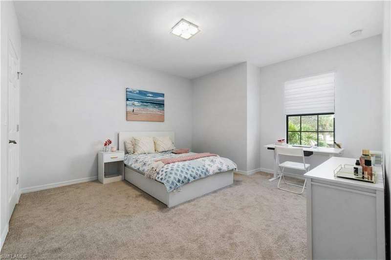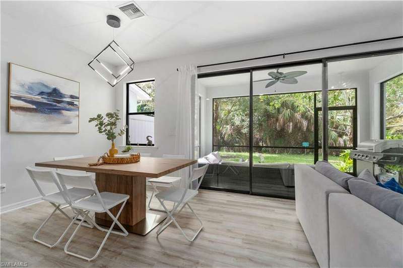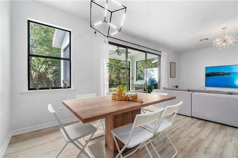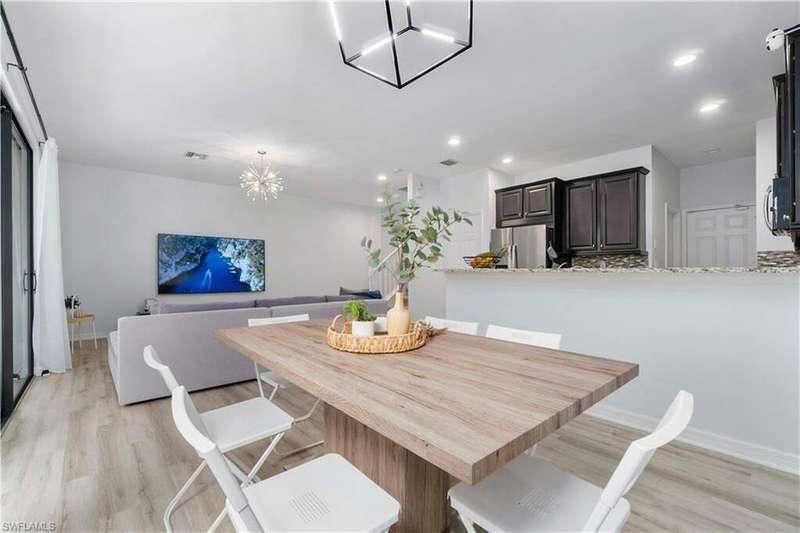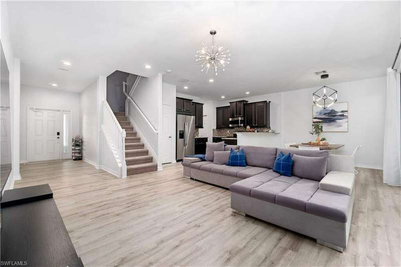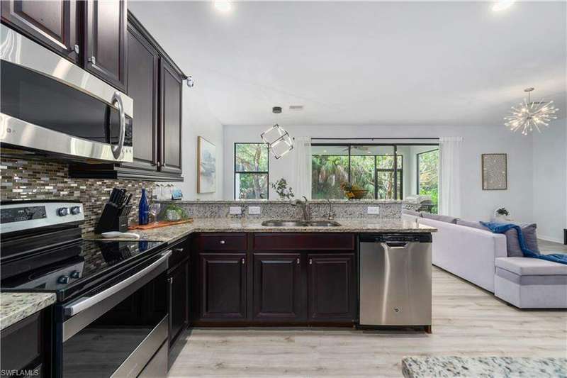 Newly renovated and exuding designer style, this immaculate home is the epitome of modern living, complete with full smart home technology for added convenience and luxury. Featuring brand-new luxury vinyl flooring and plush carpeting, complemented by elegant, modern light fixtures in every room, it feels like a fresh canvas ready to impress. The spacious, sunlit kitchen showcases top-tier cabinetry, along with a brand-new refrigerator and stove, perfect for both everyday living and entertaining. Step outside to a freshly repainted lanai, offering a private retreat for relaxation and outdoor enjoyment. This stunning residence boasts 3 bedrooms, 2.5 baths, and a large 2-car garage. The open-concept living area flows seamlessly to the covered lanai, ideal for cozy gatherings or quiet moments. Storage is plentiful throughout, with oversized closets providing ample space for all your belongings. Low HOA fees grant access to an array of upscale amenities, including a 24/7 guarded gatehouse, basketball courts, tennis and pickleball courts, a community pool with a hot tub, a clubhouse, BBQ picnic areas, saunas, a fully-equipped exercise room, a playground, and more. Nestled in a peaceful, dog-friendly community, this home offers the perfect blend of luxury, modern technology, and convenience. Centrally located just minutes from the famous Gulf Coast beaches, Mercato, Downtown 5th Avenue, I-75, Waterside, premier shopping, and fine dining, this home provides the ultimate Naples lifestyle.