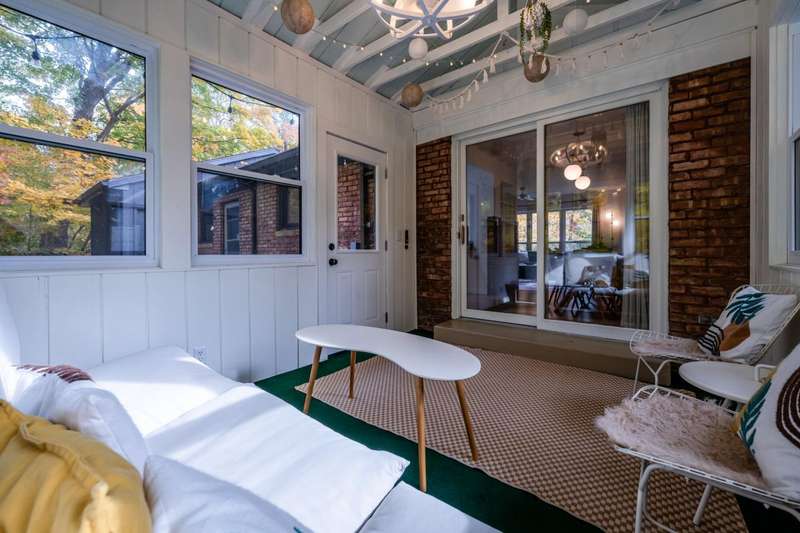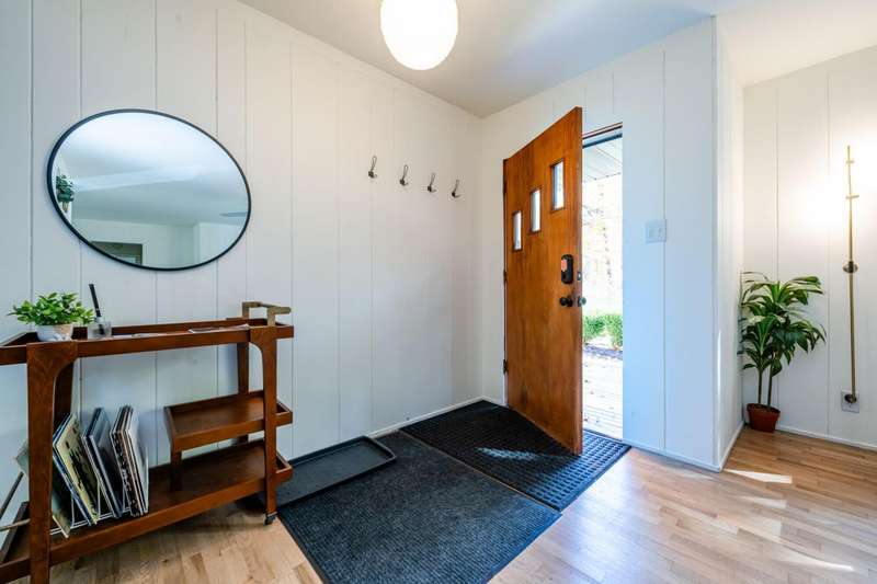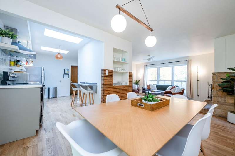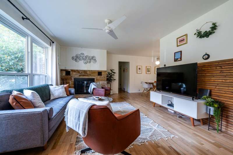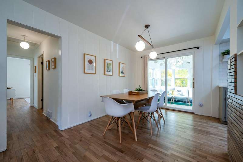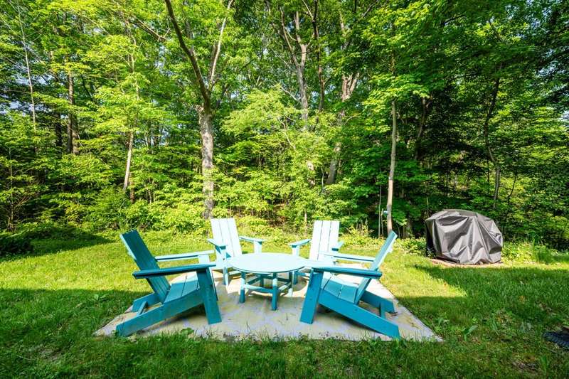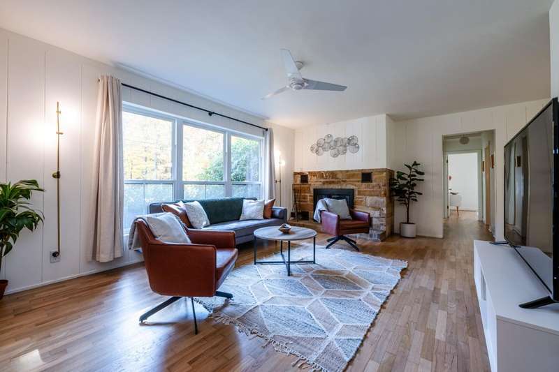 This Mid Century Modern ranch sits on a beautiful wooded lot conveniently located 1/2 mile to the charming and colorful city of Saugatuck. Home offers original hardwood floors throughout, newer vinyl windows, remodeled bathroom, an updated kitchen with stainless steel appliances, quartz countertops, and a built in coffee bar. The living room is warm and inviting with a wood burning fireplace that opens to the dining room. A three seasons room sits off the rear of the home, perfect for enjoying the nature views. An attached garage and large lot offer potential room for expansion. Move right in and enjoy all that the area has to offer. Current STR permit will not transfer to new owner.