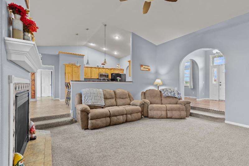 Welcome to this beautiful 4BR, 3BA ranch home sitting on 1.15 acres of land that offers everything you could imagine in your dream home. This beautiful modern home offers a open floor plan with split bedrooms. Features a great room with fireplace, formal dining room, primary bedroom with a walk in closet and jetted tub, an addition en suite bedroom, first floor laundry, and a large 3 car garage. The basement has been partially finished. An additional bedroom and 1/2 bath could be added. The basement and main floor have separate thermostats. This home is perfect for hosting both indoors and out! Sellers plan to include a basic home warranty.