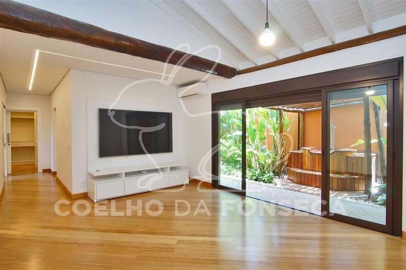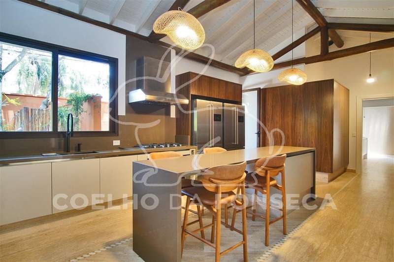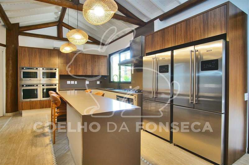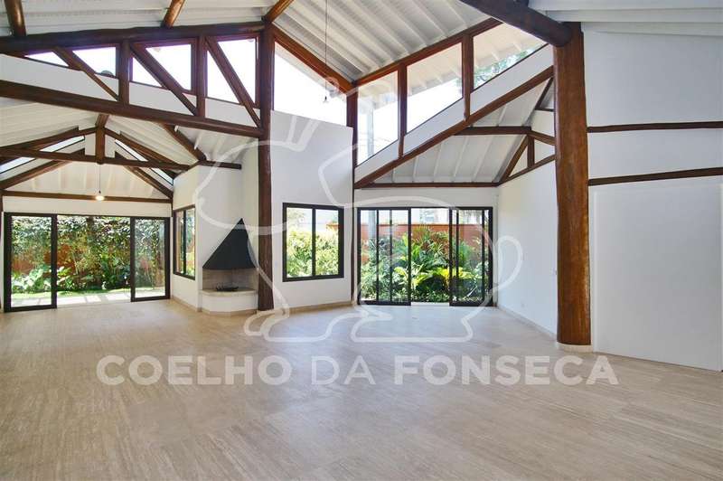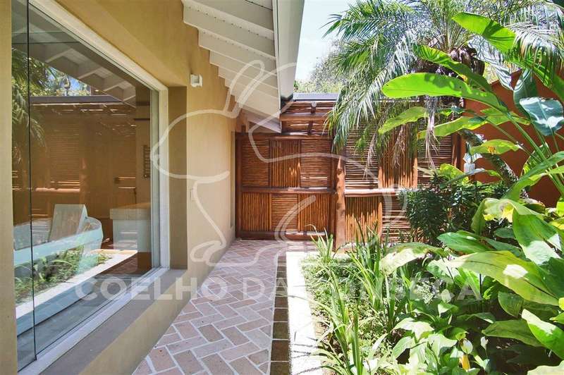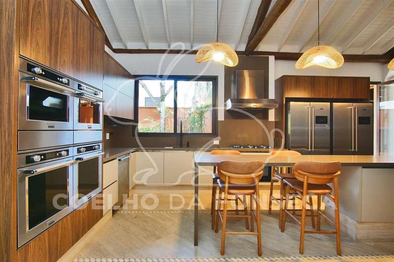 Belissima Casa de esquina. Estilo casa de campo, porém com conforto e segurança que a vida moderna exige. Erguida sobre troncos e vigas de eucaliptos, forro térmico. Pé direito duplo com ótima iluminação natural. Living para quatro ambientes, sala de TV, lareira a gás, salas de jantar, íntima e almoço, copa, cozinha, com todos os eletrodomesticos novos (Brastemp gourmant), suíte Master com acesso a um dormitório na parte superior com dois terraços, banheiro com hidro, Spa, amplo closet, jardim intimo com jacuzzi,mais três suítes, todas com armários planejados e ar condicionado. piscina com espaço gourmet, aquecimento solar. Suite e cozinha para serviçal. Sistema de segurança com sensores. Ar condicionado e Cameras em todos os ambientes. Reformada, totalmente automatizada. Ajardinamento em todo o redor. Duas garagens nas ruas distintas, cada uma cabendo quatro automóveis grandes.