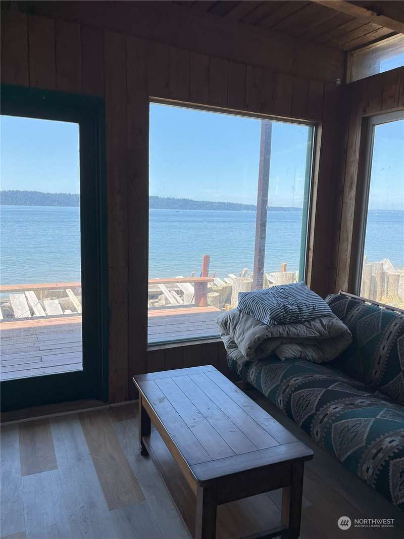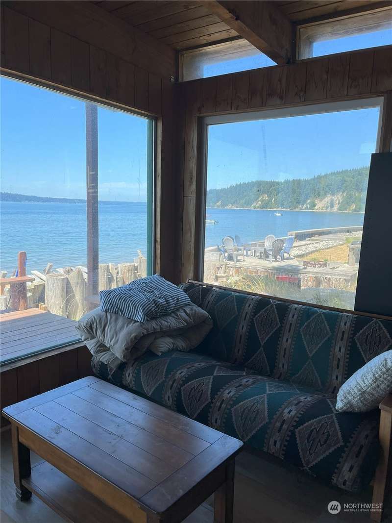 Rustic studio cabin on low/no bank Puget Sound waterfront. Boating (possible moorage), fishing, crabbing await. Enjoy marine life and soaring eagles from you private residence. Open living area with 1/2 bath. Kitchen has microwave and mini-fridge. Crows nest space above for arts, reading or sunsets. Off street parking. Follow path to the right. Fryberg leased land. New 25+25 yr lease $22139.84/yr Adjusted every 5 years. Patience please...closing possibly takes 6-8 months. Cash only. POF w/offer No lenders available. Water and electric turned off. Estate sale. Selling as is. Interested parties must be accompanied by a Licensed Broker. Do not enter blue structure. Neighbor owns tram allows use with signed written agreement. Sewer in street