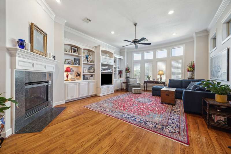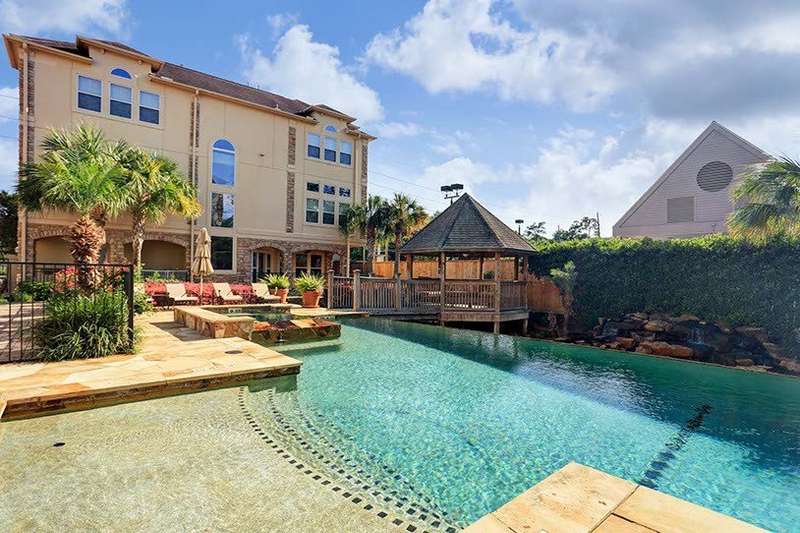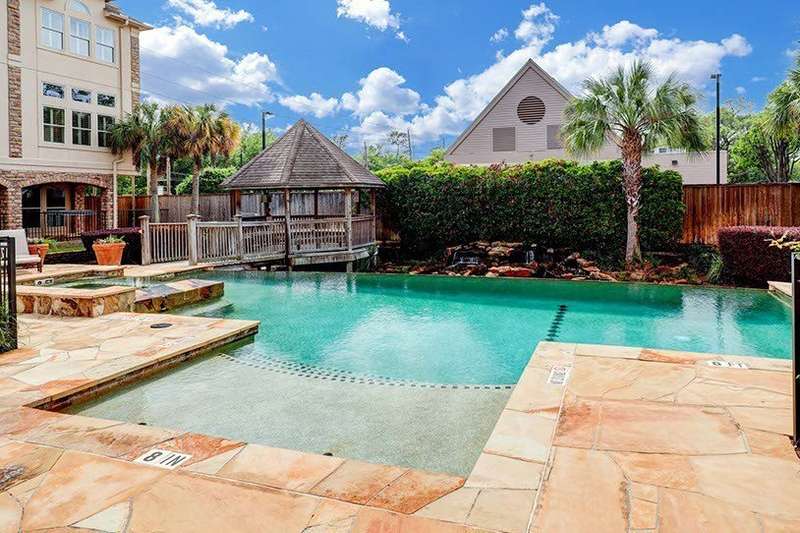 Attractively tucked between San Felipe and Woodway, this Tanglewood area townhome benefits from a gated entry, pleasing community pool and ample guest parking! With three bedrooms and three-and one-half baths, a beautiful living area is the heart of this home! Hardwoods, cozy fireplace, plantation shutters and a wall of built-ins along with high ceiling are welcoming to all. The dining area is surrounded by windows and is open to the spacious kitchen with gas cooktop natural stone surfaces. Best of all ELEVATOR CAPABILITY* allows for accessibility or amazing storage. All bedrooms are ensuite. First floor bedroom has French doors to a quaint outdoor space. The primary is more than spacious with a generous bath with natural stone vanities, separate tub, shower and two primary closets. Guest suite is nearby. *per Seller
