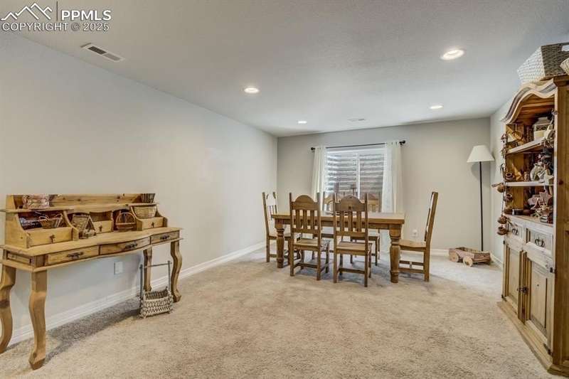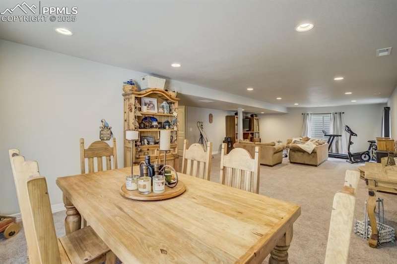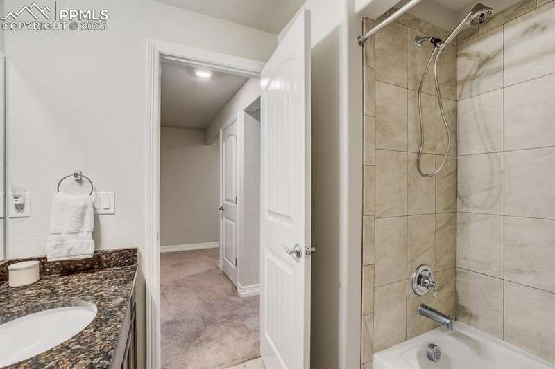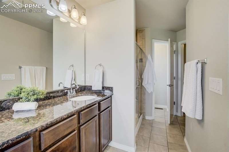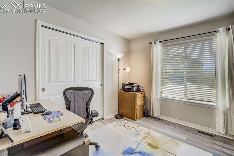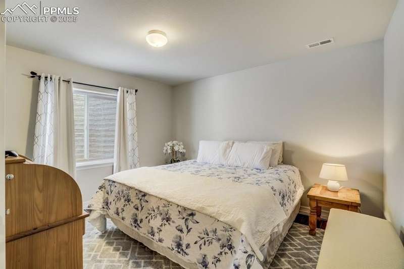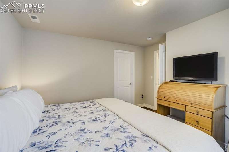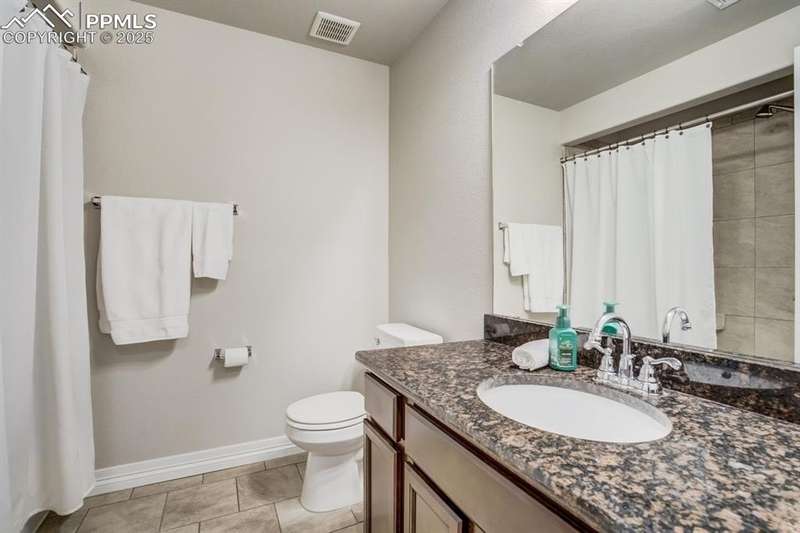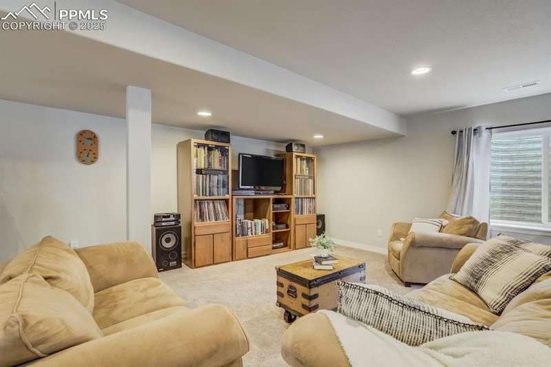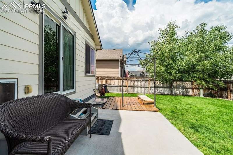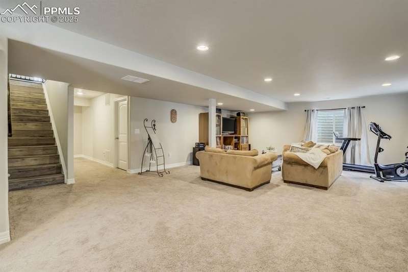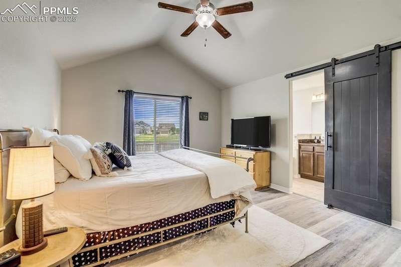 This home truly offers main level living and is ideal for multigenerational needs! Featuring an open floor plan and generously sized rooms, this home presents an impeccable balance of comfort and luxury. Enter and enjoy elegant hardwood flooring that extends throughout the foyer, kitchen, dining area, and great room. The main level comprises three bedrooms and two bathrooms, offering ample accommodation for both family and guests. The great room serves as an excellent space for gatherings and entertaining, while the adjacent kitchen is a culinary enthusiast's dream. You will find yourself enamored with this remarkable kitchen, which includes a substantial island, granite countertops, tall cabinets, and stainless-steel appliances. The oven simplifies cooking, while the extensive counter space ensures that you will never lack room to prepare your favorite dishes. The main level master serves as a sanctuary in its own right and has a charming barn door. Indulge in the opulent five-piece master bathroom, featuring a dual granite vanity, a soaking tub, a separate shower, and a spacious walk-in closet. The finished basement is spacious and provides multiple options for use and enjoyment; encompassing a large recreation room, two extra bedrooms, a bathroom, and storage! Enjoy a three-car garage with sheetrock walls and epoxy flooring, offering a neat and organized area for all your vehicles and belongings. Additionally, the fenced-in backyard guarantees privacy and space for outdoor activities and is unique With open space situated behind and alongside the right of the home. ***ROOF replaced in 2024****Lorson Ranch offers wide open skies, mountain views, and a strong sense of community! Located just minutes from multiple military bases, this growing area is perfect for military families and anyone seeking modern homes and parks, trails, and new schools nearby!