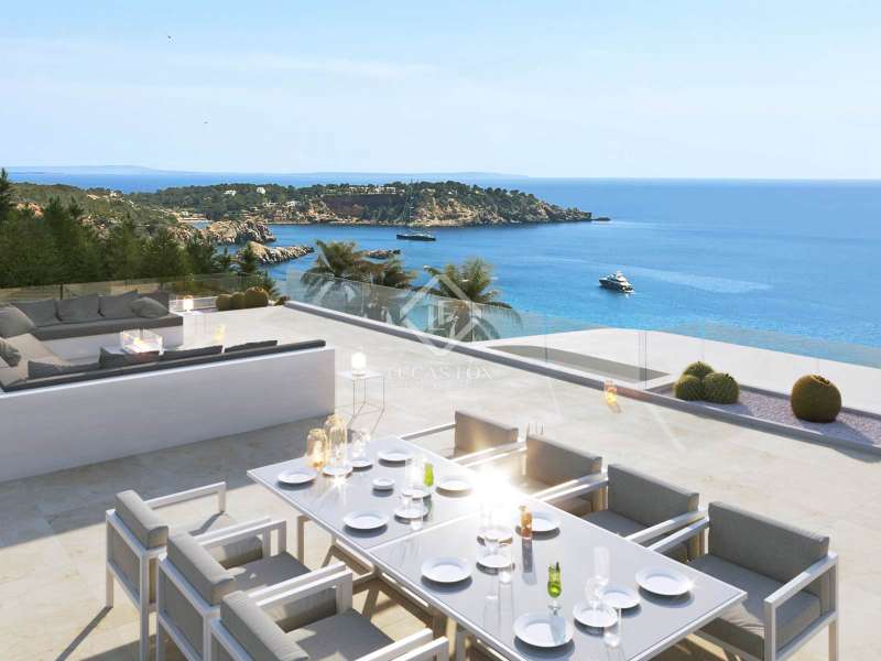 We are delighted to introduce an exceptional and highly exclusive project situated in one of the most sought-after areas of Ibiza. This extraordinary masterpiece, set to be completed in June 2025, encompasses an impressive 700 m² of luxurious indoor living space and terraces spanning nearly 390 m² with breathtaking open views of the sunrise over the renowned coves of Sa Caixota and Es Torrent. Nestled within the esteemed and secure Vista Alegre residential development, just a brief 15-minute drive from Ibiza's vibrant hotspots, this villa epitomizes refined elegance. The villa consist of a total of 5 bedrooms with bathrooms, modern and spacious living areas, dining room and kitchen, gym of 32 m² and cinema room, a garage for 4 vehicles, an interior patio, large outdoor terraces with barbecue and an impressive chill-out terrace with specially designed ambient lighting and a fireplace from which the views are even more spectacular. This immense property offers endless possibilities for those who love to welcome family and friends. This project has been designed with the best top quality materials, such as beige natural stone thought-out the Villa, including the pool, with integrated double-glazed panoramic windows to the ceiling with minimalist frames, a lift to the 4 floors and a fully equipped designer kitchen with Miele appliance. The wall and floor coverings of the beautiful bathrooms are large format combined with natural stone. Enjoy the convenience of a 4-vehicle garage while taking in the expansive outdoor terraces, where the views become even more awe-inspiring. Delight in culinary experiences with the outdoor barbecue area, while the stunning chill-out terrace, adorned with specially designed ambient lighting, invites you to savour magical moments with family and friends. Embrace the future with the latest high-tech equipment, including a sophisticated smart-home automation system, seamlessly integrating modern convenience into every aspect of daily life. This is a truly remarkable opportunity to own a property that radiates luxury, sophistication, and exclusivity. We invite you to contact us for further information about this exceptional project, promising to redefine the standards of refined living on the magnificent island of Ibiza.