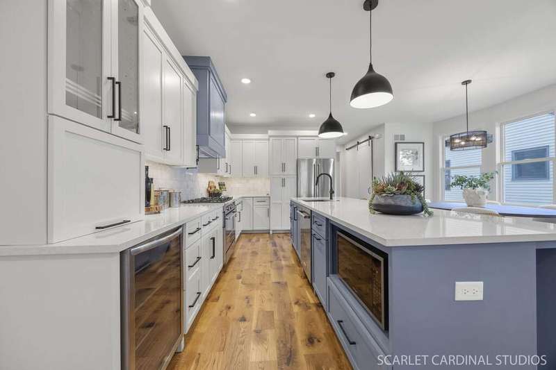 Looking for luxury living just steps from the Metra Train and Downtown Naperville? Welcome to 715 N Brainard Street, a truly exceptional custom-built duplex offering over 4,000 square feet of finely curated living space spanning four impressive levels - all within walking distance from the 5th Avenue Metra station! Offering every attention to detail, including 4 bedrooms; 5 full bathrooms; Marvin windows; Pinnacle stairs; custom cabinetry by Homeowners Dream Custom Cabinets; maintenance-free James Hardie siding; a spacious 2-car detached garage; and an incredible layout designed for both comfort and style, this home is the definition of luxury living in one of Naperville's most sought-after locations. Step through a covered entry and enjoy an expertly curated space boasting white oak flooring, hand-picked designer lighting, and elevated finishes throughout. The main level features a welcoming foyer with a coat closet, a full bathroom, and a flexible office space ideal for use as a workspace or additional bedroom. The open-concept main living space seamlessly connects the chef's kitchen, dining area, and spacious family room. Designed for both function and flair, the kitchen boasts soft-close custom cabinetry by Homeowners Dream; roll-out drawers; a walk-in pantry; large center island; pot filler; beverage refrigerator; and even a dedicated garbage disposal button - every element selected with luxury in mind. A cozy 3-season room and mudroom with built-in cubbies offer additional space designed for everyday living. An elegant white oak staircase, crafted by Naperville's own Pinnacle Stairs, leads to a second level featuring an exquisite primary suite with a spa-inspired bathroom offering a dual sink vanity, large walk-in shower, private toilet closet, and an oversized walk-in closet. Two additional bedrooms with ample closet space, a shared hall bath, and a conveniently located laundry room complete the second level. Upstairs, the third-floor retreat serves as a versatile bonus room with its own full bath and ample closet space - perfect for a home theater, fitness studio, or guest suite! The finished basement offers 9-foot ceilings, a spacious rec area, a bar with beverage fridge, an additional full bathroom, a 4th bedroom, and generous storage - all with sound-reducing drop ceilings for added comfort. This is more than just a home - it's a lifestyle upgrade in the heart of Downtown Naperville. Don't miss your opportunity to rent a thoughtfully designed residence that perfectly blends timeless craftsmanship with today's most sought after amenities!