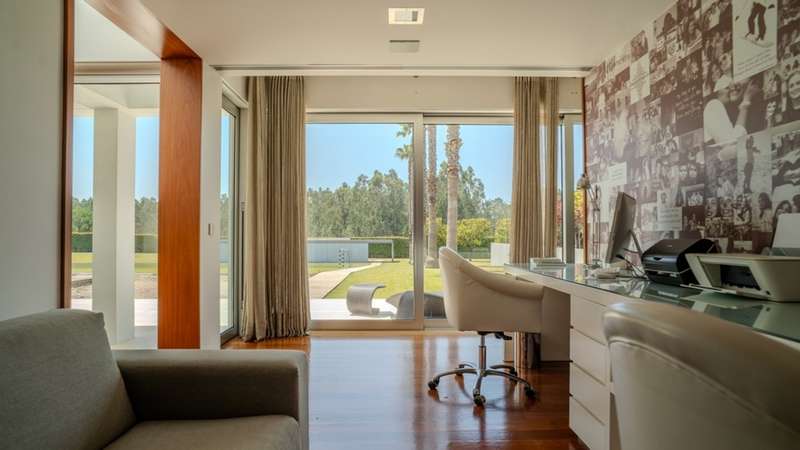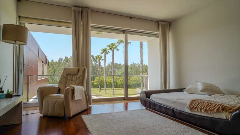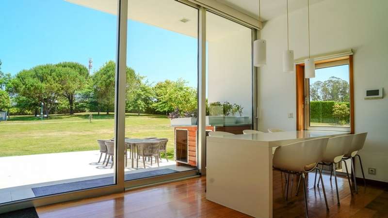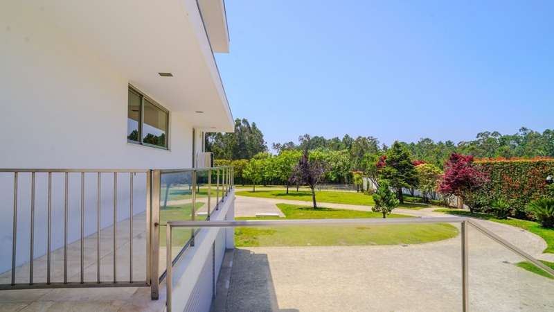 Surrounded by more than 15,000m2 of private gardens, this detached villa is more than a property - it's a manifesto of elegance, space and serenity. Set with rare sensitivity in the heart of a verdant landscape, this residence offers a lifestyle that transcends everyday life: here, luxury lives in harmony with nature and every detail has been designed to surprise and inspire. The journey begins with a first overwhelming visual impact: a contemporary architecture of sober features and well-proportioned volumes, framed by a perfectly manicured lawn that stretches as far as the eye can see. The house, flooded with natural light on all four fronts, gradually reveals itself - a constant invitation to enjoy the interior and exterior with equal pleasure. At the heart of the property, the social area unfolds with grandeur and lightness: the living room with fireplace and direct connection to the garden merges with the endless green landscape.The dining room, although separate, is surrounded by the practical and elegant kitchen, which is as inviting for day-to-day routine as it is for receiving guests. This villa also includes an area dedicated to entertaining and an outdoor annex with a multi-functional space - ideal for leisure time, a gym or a lounge - further extending the experience of the house beyond its walls. The private area is a true refuge within the refuge. The four spacious, light-filled suites all have walk-in closets and have been designed to guarantee absolute comfort, refinement and privacy. Each room is a small universe of well-being, where noble wood finishes, soft tones and natural light create a deeply welcoming and elegant atmosphere. Outside, the setting is worthy of a private resort. The swimming pool, surrounded by a sunny deck, invites you to long days of tranquillity and conviviality. A grass soccer field and ample leisure areas are spread throughout the grounds, creating distinct zones to enjoy at the rhythm of each season and mood. All this is wrapped in a frame of silence, privacy and incomparable natural beauty. Despite the feeling of seclusion, the location is surprisingly central. Just a few minutes from the main roads, all the essential services and less than half an hour from the center of Porto, this villa combines the best of both worlds: the serenity of the countryside and the convenience of the city. CHARACTERISTICS: Plot Area: 15 685 m2 | 168 832 sq ft Deployment Area: 804 m2 | 8 654 sq ft Building Area: 1 000 m2 | 10 764 sq ft Bedrooms: 4 Bathrooms: 6 Garage: 4 Energy efficiency: D