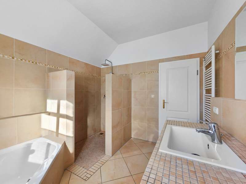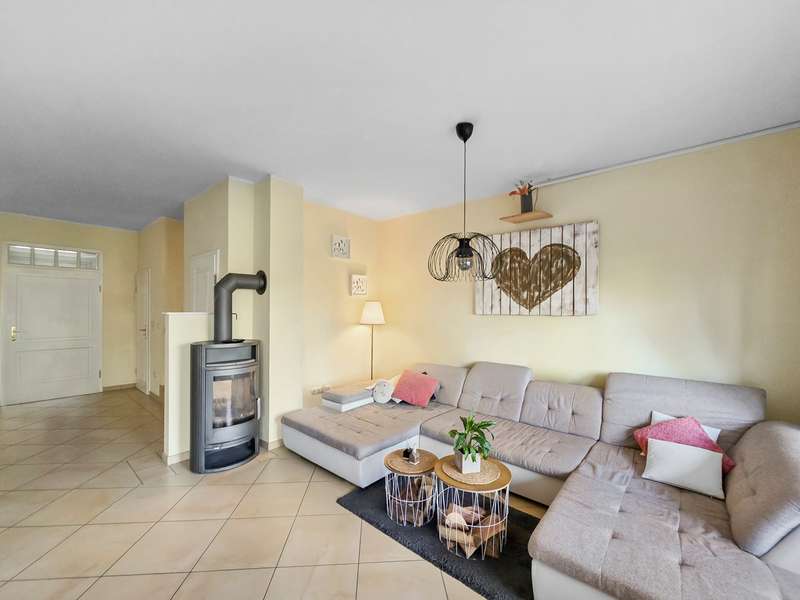 A dream for nature lovers is for sale. The idyllically situated mid-terrace house with direct access to the Hache was completed in 2008 in high-quality construction. With a living space of approx. 135 m² and a plot area of approx. 719 m², the property offers a comfortable and well thought-out room layout for the whole family. The house has a total of 4 rooms, which offer enough space for individual design and retreat options. Of the three possible bedrooms, one is equipped with a separate dressing room. The daylight bathroom impresses with a floor-level shower (1.50 m x 1.00 m), a comfortable corner bathtub and a brick washbasin with recessed washbasin. The cozy living and dining area with open-plan kitchen is complemented by a wood-burning stove, which provides cosy warmth in the cooler months. Elegant mullioned windows with double glazing provide a bright and friendly living atmosphere on the first floor (ceiling height 2.75 m). A guest WC, a utility room and a small storage room are also available on this level. The top floor can be reached via a mobile ladder. In addition to the boiler room, two further rooms are available as storage or hobby rooms. Particularly noteworthy is the wonderful outdoor area, which invites you to spend relaxing hours outdoors with friends or family. The partially covered terrace is laid out on two levels and leads into the spacious garden, which leads directly to the Hache and is particularly popular with animal lovers. The energy-efficient house with underfloor heating on all three levels impresses with its high-quality construction. A detailed list of the features and fittings can be found in the separate property description. The property, which is currently rented out, combines contemporary living quality with high-quality fittings and offers space for a pleasant and modern lifestyle. See the benefits of this property for yourself and arrange a viewing today. INFO: In order to protect the privacy of the current tenants, the photos have been digitally edited and the rooms have been largely cleared of furniture, pictures and other objects.