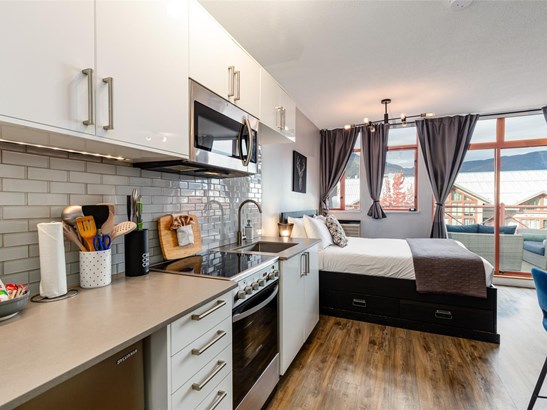 The perfect Whistler getaway with solid investment potential! This bright Alpenglow studio is in the heart of the Village—steps to shops, restaurants, and the gondolas. The desirable corner layout makes the space feel bright and open, with a large private deck offering stunning mountain views. Features include air conditioning, a cozy gas fireplace, a full kitchen, and an owner's storage closet. Enjoy resort-style amenities including a heated outdoor pool, hot tub, sauna, gym, ski/bike storage, shared laundry, and secure underground parking. Alpenglow stands out from most Phase 2 properties with its unique flexibility—owners can choose to manage their own nightly rentals on Airbnb for higher returns, or let the front desk take care of everything for a completely hands-off experience.