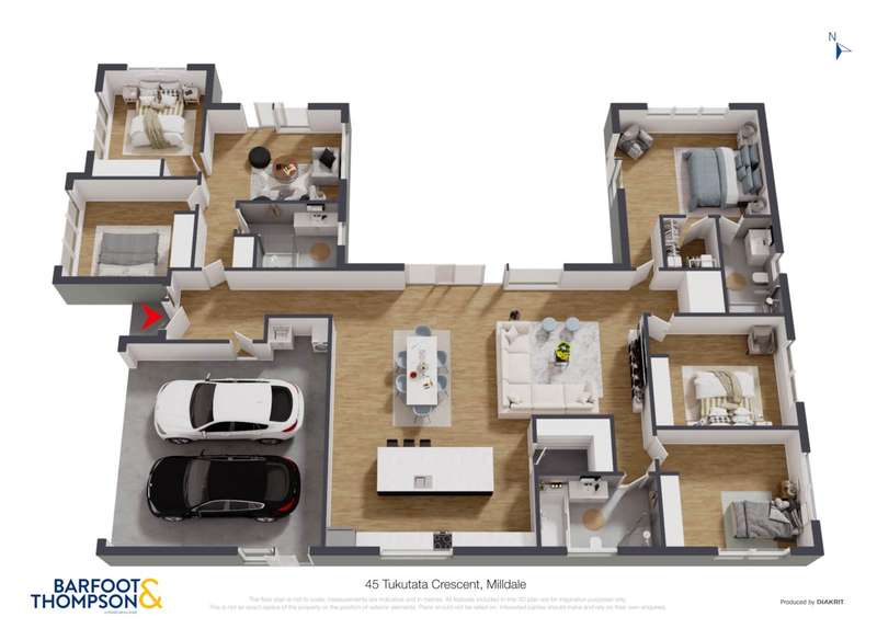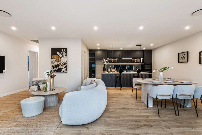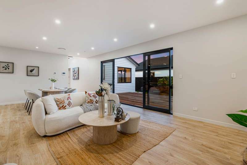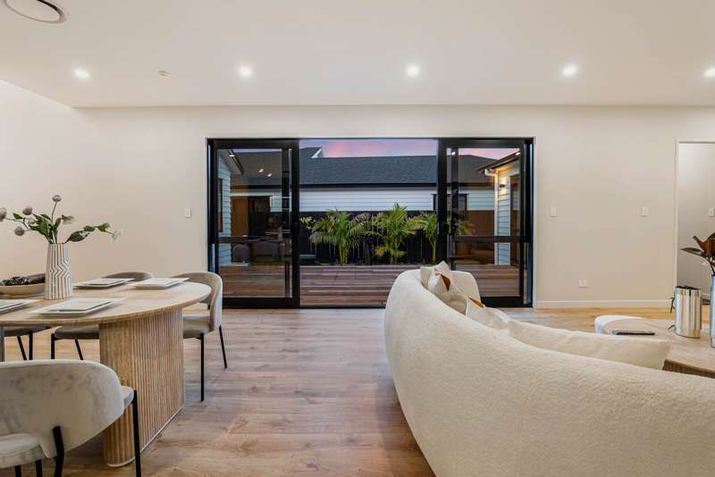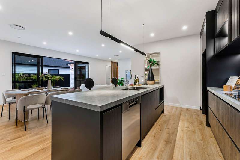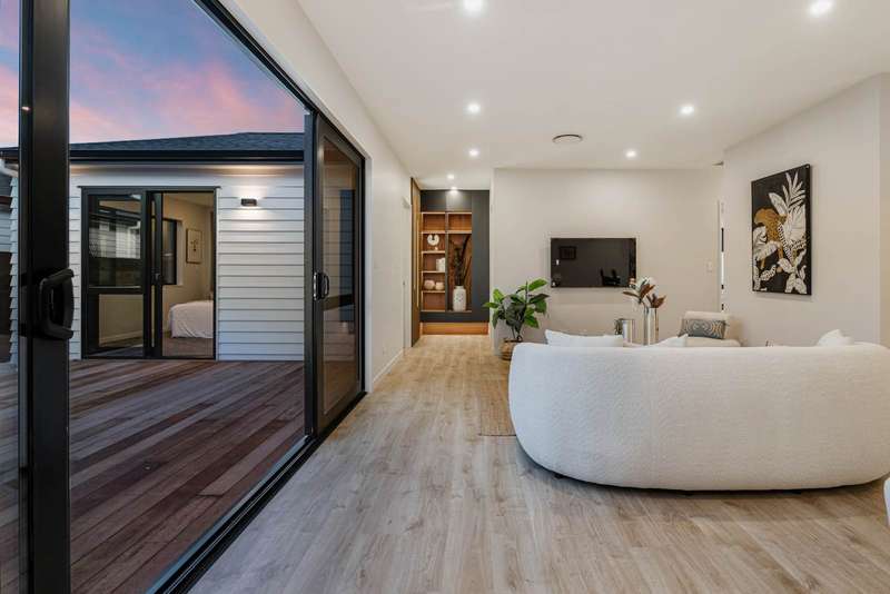 Set on a 401sqm section with a 198sqm (more or less) floor area, this beautifully appointed 5-bedroom, 3-bathroom home is designed for modern family living, with the added bonus of a potential granny area—perfect for extended family, guests, or even additional income. Step inside through the impressive high-ceiling entrance and immediately appreciate the generous proportions and thoughtful layout. At the heart of the home, the expansive open-plan kitchen, dining, and living area is bathed in natural light and designed for seamless indoor-outdoor flow. Sliding doors open onto a Kwila deck framed by landscaped gardens, creating the perfect setting for entertaining or unwinding in privacy. The kitchen is a true showpiece, boasting a central island, modern appliances, a walk-in pantry, and abundant storage. Blending style with practicality, it’s the ultimate hub for family cooking, casual meals, and effortless entertaining. The master bedroom is a peaceful retreat with its own ensuite, walk-in wardrobe, and direct deck access—ideal for enjoying tranquil mornings or evening sunsets. Two additional bedrooms share a sleek family bathroom, offering comfort for the whole household. Adding versatility, the potential granny area provides two further bedrooms, a living space, and a bathroom—an excellent option for teenagers, extended family, guests, or even a dedicated work-from-home setup. Convenience is right at your doorstep with Hillside Park within walking distance, while the future local centre and reserve will also be close by. Ahutoetoe School and local shops are just minutes away, with Silverdale Mall and motorway access via the Pine Valley exit only a short drive. Don’t miss this opportunity—contact our agent today to arrange your private viewing or visit us at the open home.
