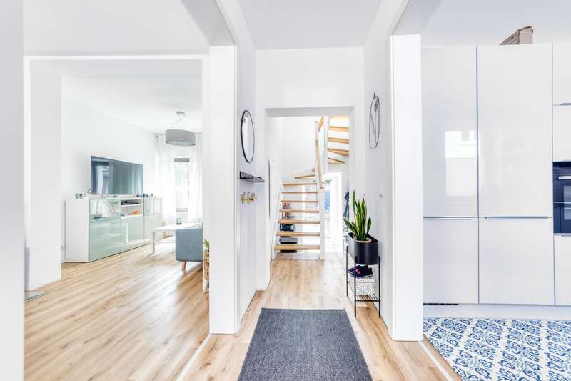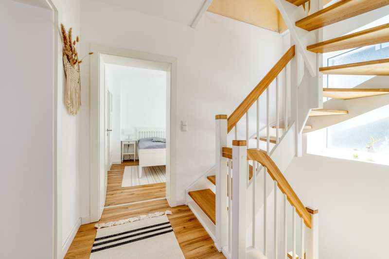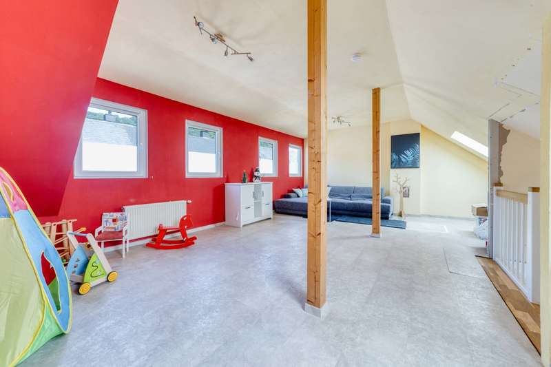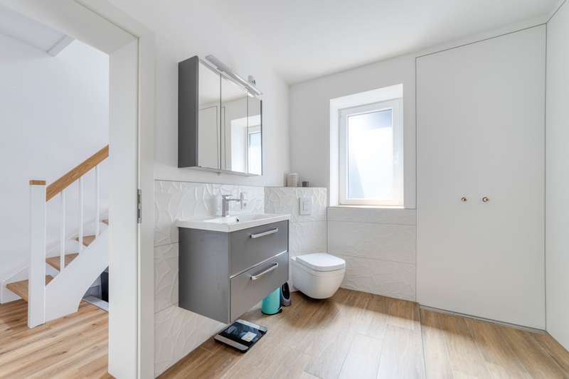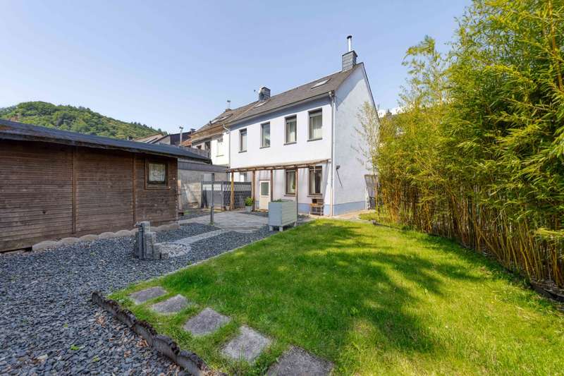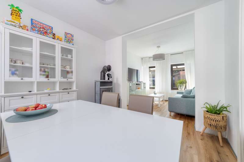 This charming home combines stylish modernization with solid building fabric and offers a comfortable home for families or couples with space requirements on three floors. The comprehensive renovation in 2021 and 2022 will make the home feel as good as new - with high-quality furnishings and a coherent overall concept. The new Nobilia fitted kitchen with white high-gloss fronts and a new price tag of 25,000 euros forms the centerpiece of the dining area. Directly adjacent, a cozy fireplace creates a warm atmosphere on chilly days. Bright, friendly rooms run through the entire house and underline the pleasant feeling of living. On the first floor, all water and electrical pipes have been renewed. The sockets, switches and radiators have also been modernized. Electric shutters provide additional comfort. The bathroom on the first floor has already been renovated; the connections for a walk-in shower are in place, the installation itself is still open and leaves room for your own design ideas. The staircase made of high-quality ash is completely new. The ceilings have also been renewed - except for the original beams. The windows are made of plastic and are still functional, but were deliberately not replaced during the last renovation as they were to be modernized in the medium term. The security door at the entrance was made by Ritter. The roof was re-covered with natural slate in 2008 and fitted with mineral fiber insulation (200 mm). A stylish dormer was also created, which gives the attic additional space and more light. The attic was converted in 2017, including the renovation of the gable. The living area in the attic boasts a ribbon dormer and two skylights. Another highlight: the bedroom with adjoining dressing room or office - depending on requirements. Behind the house, a covered terrace with a fixed wooden structure invites you to linger. A small garden with a practical tool shed rounds off the offer. The spacious plot is also impressive: the property is situated on two plots - additional development would be possible on one of them. The garage belonging to the property is located on plot 93/10 and offers plenty of space at 49 square meters. The public transport connections are excellent: the Ehrang platform with a direct train connection to Luxembourg (RB 83, Mondays to Saturdays hourly) is in the immediate vicinity. There is also a bus stop right on the doorstep - ideal for commuters or families with schoolchildren. Overall, this is a modernized, well-maintained property in a quiet, convenient location - with plenty of potential and space for individual design.