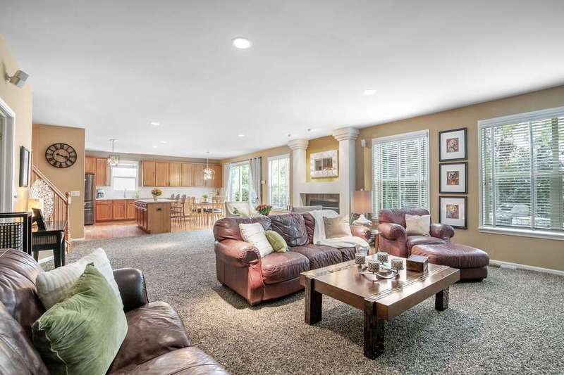 Gorgeous 4-bedroom, 2.5-bath home with a 3-car garage in the desirable Sedgwick Place subdivision! This stunning home, perfect for indoor and outdoor entertaining, features a recently replaced roof, NEW windows and slider, offering exceptional curb appeal with a professionally landscaped yard and a sun-filled interior. Step inside to gleaming hardwood floors and a spacious living and dining room combo perfect for hosting guests. The showstopping kitchen, with updates, features soaring cabinets, granite countertops (2024), backsplash (2024), a large island, walk-in pantry, and ample dining space, flowing seamlessly into the oversized family room with a cozy fireplace-ideal for large gatherings. From the kitchen, step out to a gorgeous patio with a built-in grill and firepit, creating the ultimate private fenced in backyard retreat. The first floor also includes a den/office and half bath, which could easily be converted to a full bath. Upstairs, enjoy new carpet, freshly painted ceilings, and a large primary suite overlooking the beautiful backyard, boasting a freshly painted luxury bath with a soaking tub, separate shower, dual vanity, and huge walk-in closet with a laundry shoot. Three additional spacious bedrooms, an office nook, and a full hall bath complete the second floor. The full basement offers abundant storage and potential for finishing. Updates include roof (2024), windows and sliding door (2023), furnace (2023), A/C (2025), water heater (2021), sump pump (2025), garage door and opener (2018), carpet, fixtures, lighting, garbage disposal (2024), and cooktop (2021). Walking distance to the park and close to shopping, restaurants, and the interstate-this move-in ready home is an absolute must-see!