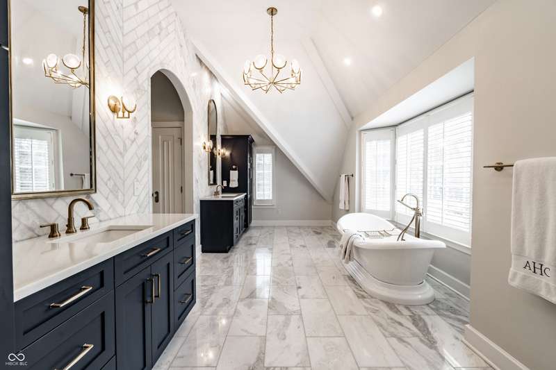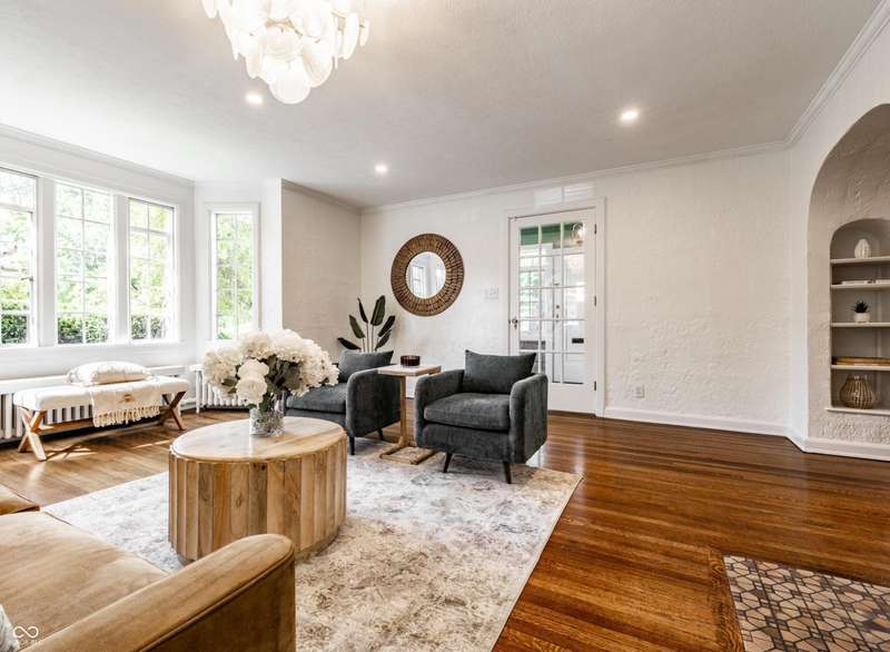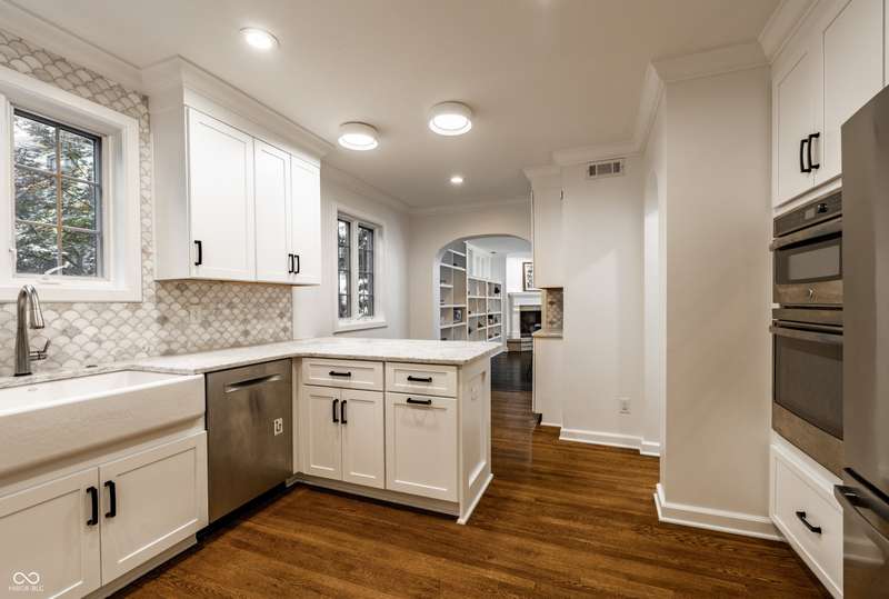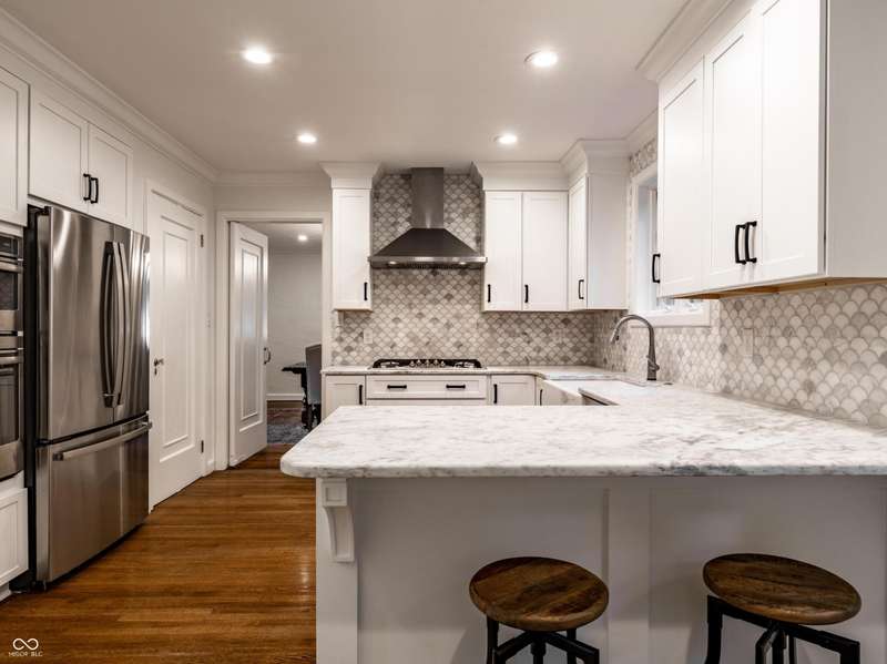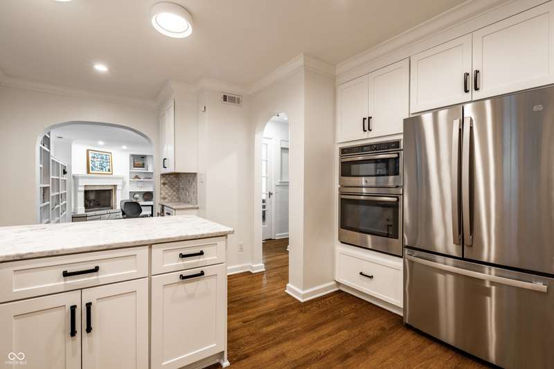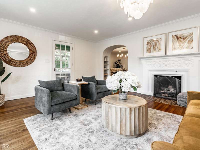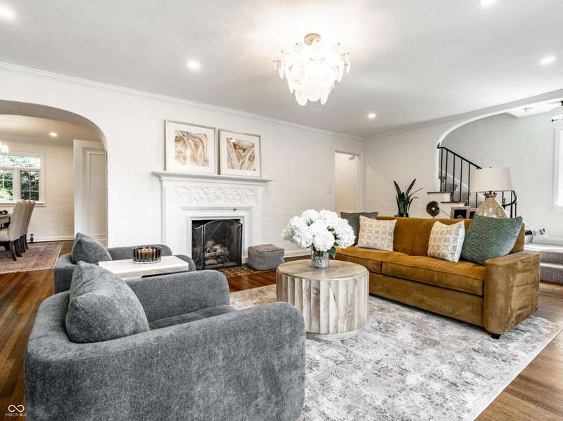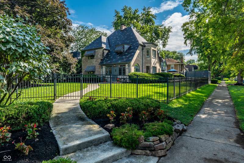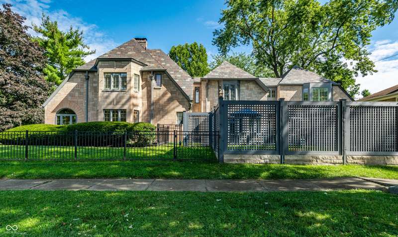 One of Meridian-Kessler's most iconic homes-with a striking limestone exterior, classic slate roof, and unmatched curb appeal-is now available. This 5-bed, 4.5-bath historic residence blends rich 1927 architectural charm with refined modern living. Inside, arched doorways, crown molding, detailed trim, and hardwood floors complement updated spaces throughout. A stunning primary suite addition (2022) offers vaulted ceilings, hand-laid marble tile, dual vanities, oversized shower, soaking tub, and a boutique-style walk-in closet with room for a workout area and TV. The chef's kitchen was remodeled in 2016 and refreshed in 2025 with painted cabinetry and a marble backsplash. Upstairs includes 3 additional bedrooms and 2 full baths, including one en suite and a renovated hall bath. The finished basement (2023) features a guest suite with egress, full bath, and a large finished storage room. Major upgrades include updated electrical (2022), recessed lighting, rebuilt garage with EV charger, and a designer mudroom entry. Enjoy three fireplaces, a sunroom entry with custom built-ins, and two spacious living areas. The fully fenced yard offers security for children or pets. Located within walking distance of Broadway Park, local schools, and the Broad Ripple Cultural District, this home offers iconic beauty, luxurious comfort, and a truly walkable lifestyle in one of Indy's most desirable neighborhoods. Don't miss this rare opportunity.