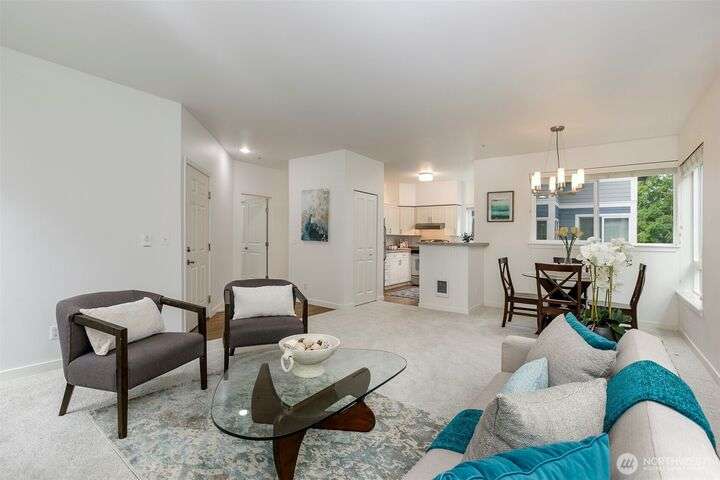 Price improvement! Welcome to this freshly painted and carpeted condo in the Cambria Hills community! The open and bright plan is functional and perfect for entertaining or just hanging by the real wood-burning fireplace. The kitchen has tons of natural light with lots of cabinet space. Two bedrooms, including a primary suite, and a large hall/guest bath, and a big laundry room. Comes with a private one-car garage plus an additional designated parking spot. Cambria Hills includes a pool, hot tub, and gym. Fantastic location with easy access to 405/522 close to downtown Woodinville and Bothell. Award winning Northshore schools. Many restaurants and recreational trails nearby.