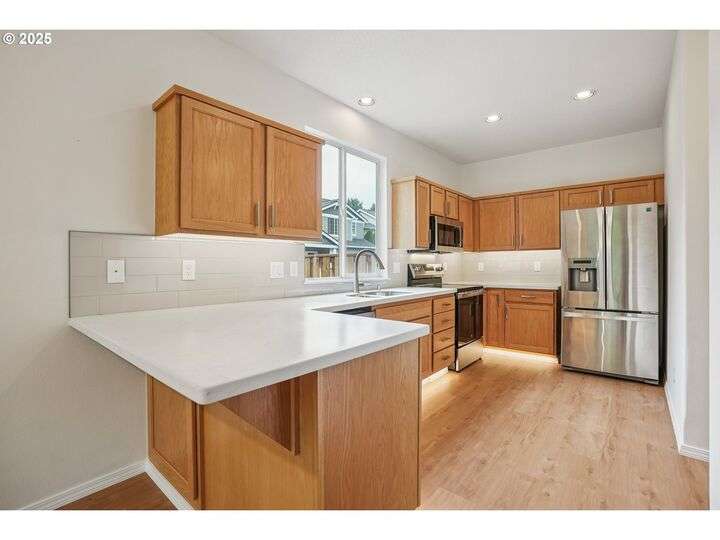Welcome home to Norfolk Ct situated on a quiet cul-de-sac. Many recent updates by contractor include flooring, carpet, paint, kitchen appliances and counter, cabinet hardware, lighting, half bath, primary suite bath, fencing and more! Family room off the kitchen ideal for todays lifestyle. Laundry upstairs off bedrooms. Step out back to the recently stained wood deck, and enjoy the easy maintenance yard with new irrigation system and lawn. Den on main floor, plus covered front porch. Located in the heart of Tigard close to I5 and hwy 217 make this easy to navigate for schools, shopping, restaurants and more!
