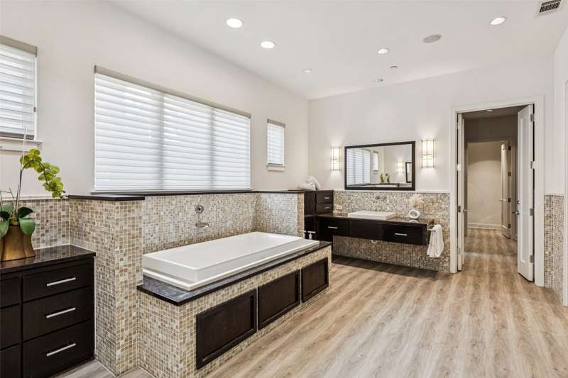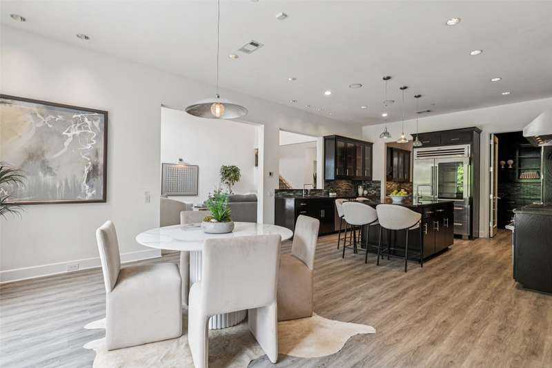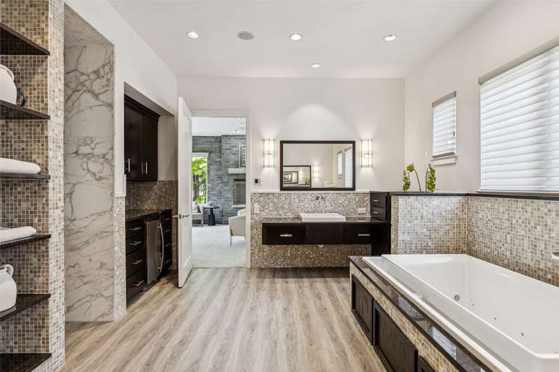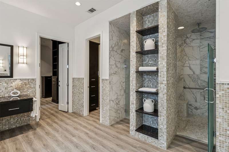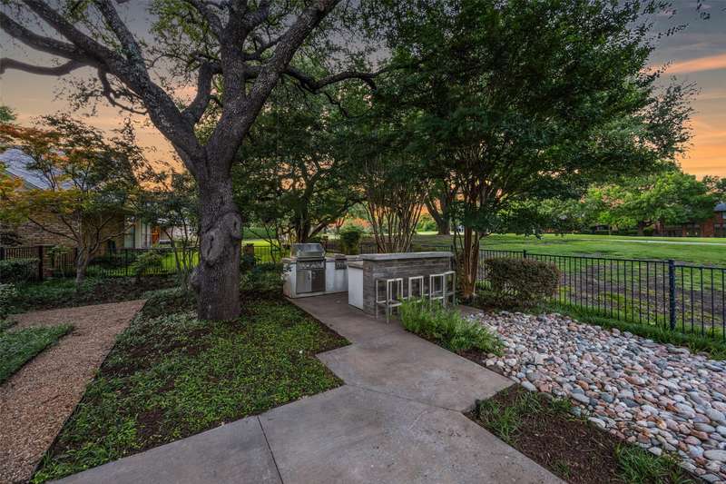 Perfectly positioned on the 16th hole of Bent Tree Country Club, this exceptional custom home offers over 7,100 square feet of luxury living on a 0.379-acre golf course lot. A circle drive, mature trees, lush landscaping, and two water features create a striking first impression, while the interior showcases thoughtful design, refined finishes, and modern functionality. The expansive layout includes five living areas, four bedrooms with en suite baths and custom walk-in closets, and three additional half baths. The gourmet kitchen is a chefs dream with Sub-Zero refrigerator freezers, Thermador gas range with grill, griddle, and double ovens, double Thermador dishwashers, a Miele built-in coffee system, oversized island, custom cabinets, walk-in pantry, and built-in desk. Entertaining is effortless with three wet bars, a 700-bottle climate-controlled wine room, media room with built-in speakers, and multiple gathering spaces. The luxurious primary suite features a gas fireplace, spa-inspired bathroom with dual vanities, frameless shower, SOK soaking tub, smart bidet, and a boutique-style closet with built-in Viking safe and ironing board. A private laundry room and coffee bar with beverage fridge offer added convenience. Hunter Douglas automatic window treatments are found throughout the home. Enjoy panoramic golf course views from the backyard oasis with a sparkling pool, spa, covered patio, and a gourmet outdoor kitchen. Additional highlights include a metal roof with gutters and leaf guards, Lutron lighting, smart home systems including Nest and iAquaLink, Flo by Moen water shutoff, two tankless water heaters, updated HVAC units, fire suppression system, and a spacious three-car garage with built-ins.