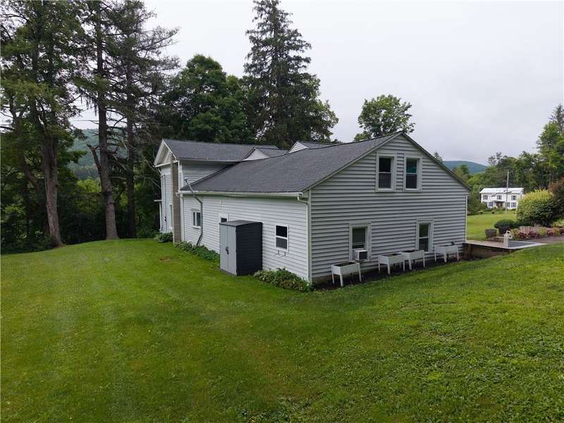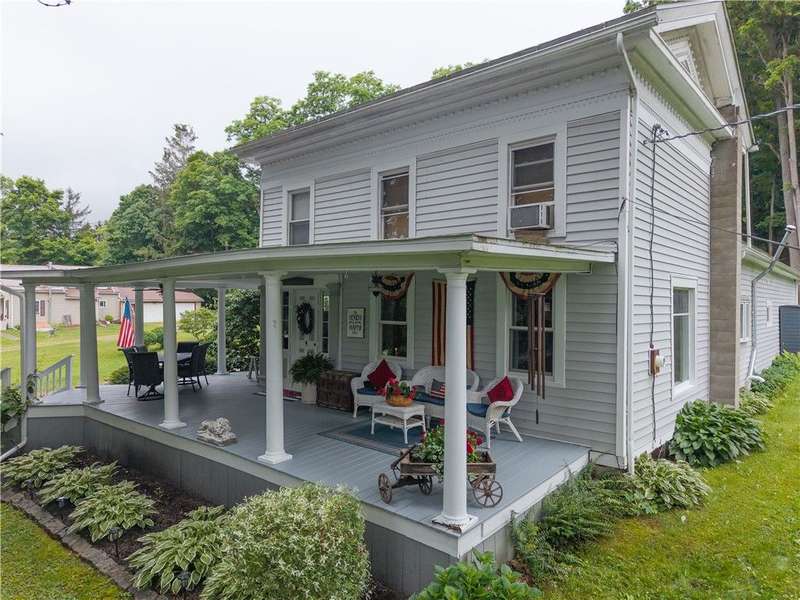 Hilltop haven! Escape to a private lot on this hillside property in the Village of Almond! This 3-bedroom, & 1.5-bath residence sits on a generous 1-acre lot. The outdoor spaces are awesome...the front porch especially! Inside, it's not a completely open floor plan, but the doorways are wide and you can see from room to room. The main floor is a great entertainment area! The kitchen is complete with everything you would want....many cabinets & lots of counter space, including an island. Built-in natural gas range, built-in wall oven, big fridge, dw, & microwave. W & D also stay with the property. Behind the kitchen is a storage room with a door to the outside & a stair access to the large, well-lit attic. There is an office, a half bath, & access to the basement. The laundry area and full bath can be reached from the TV room. The front foyer is large, with a closet behind the stairway to the 2nd floor. There are 3 good-sized bedrooms up here...the front room is especially large. There is door access in the hallway to a side attic, & door access to the big attic from the back bedroom. As per Allegany County Public Health Sanitarian, a septic inspection will not be required. A new 1000 tank was installed in August 2025 and a dye test was completed at that time. The Village of Almond is just 5 miles from the city of Hornell, which offers numerous amenities.... Lots of commerce... restaurants, Walmart, Lowes, and Wegmans!! The Village is also close to Alfred, maybe 7-8 miles, where Alfred University and Alfred State College are located.