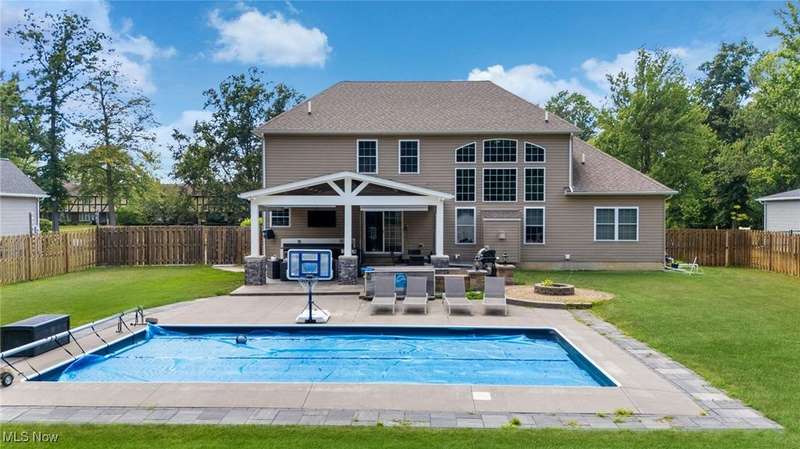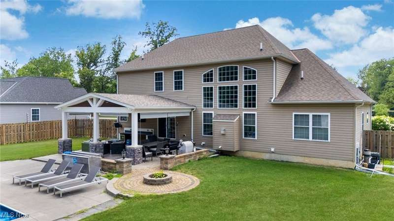 Dreaming of resort-style living with your own private backyard oasis? Welcome to 8185 Deepwood Boulevard, a 2016 custom-built ProBuilt home in the heart of Mentor. Featuring 3 bedrooms, 2.5 bathrooms, a massive finished basement, and nearly $200,000 in luxury upgrades throughout -- this home blends comfort, elegance, and functionality at every turn. With 3,115 sq. ft. of living space above ground including a finished bonus room that can easily serve as a 4th bedroom, this property offers space and versatility.Inside, you'll find an open and inviting floor plan featuring a spacious high ceiling great room, a desirable first floor primary master suite, with an added fully tiled primary bathroom shower, and elegant closet shelving for organization. Additional highlights include a whole-home generator, a custom great room TV backsplash, wainscoting in the dining room, and other thoughtful custom touches throughout.Step outside to your own private retreat. The heated saltwater in-ground pool with a walkway is surrounded by a stamped cement patio, stone fire pit, and professional landscaping. The massive covered patio with a vaulted pine gazebo roof creates a stunning space for outdoor dining, entertaining, and relaxation year-round. The fully fenced in yard, custom lighting, countertop space with electrical outlets and fire pit complete the backyard oasis.Located in a quiet and private Mentor neighborhood, this home combines modern upgrades with timeless style and is truly move-in ready.Don't miss your chance to own this incredible property with every detail already done for you.