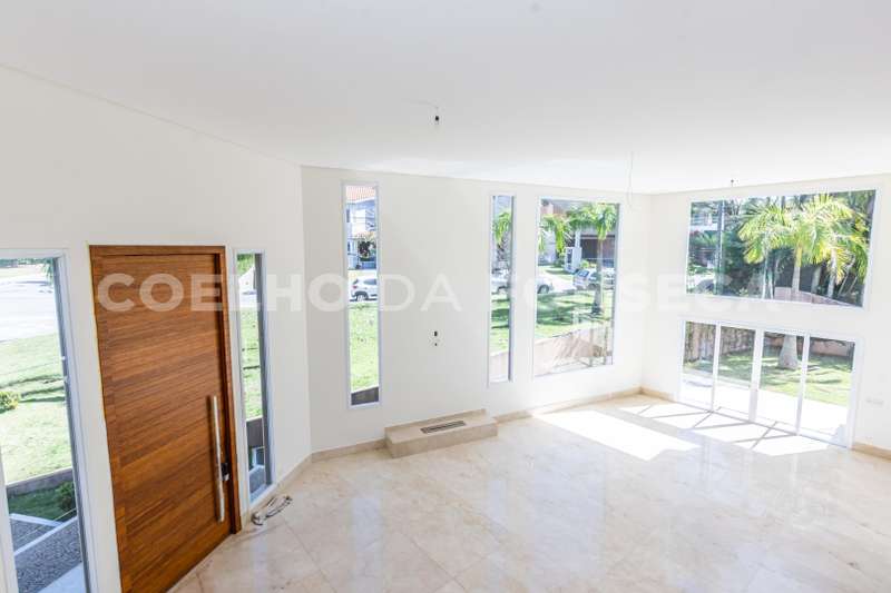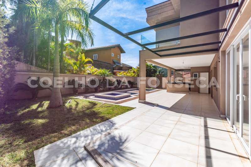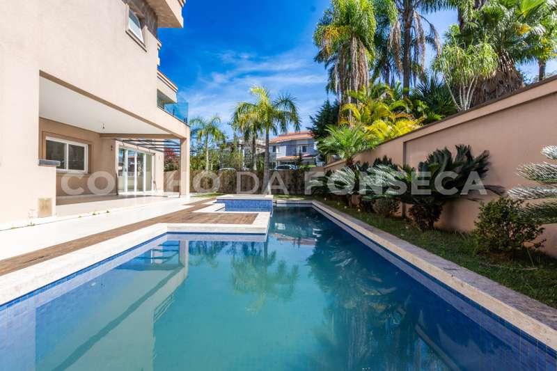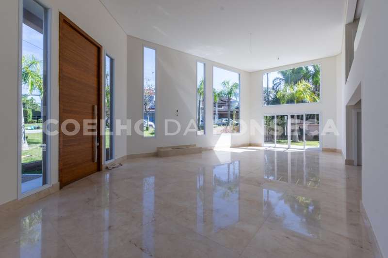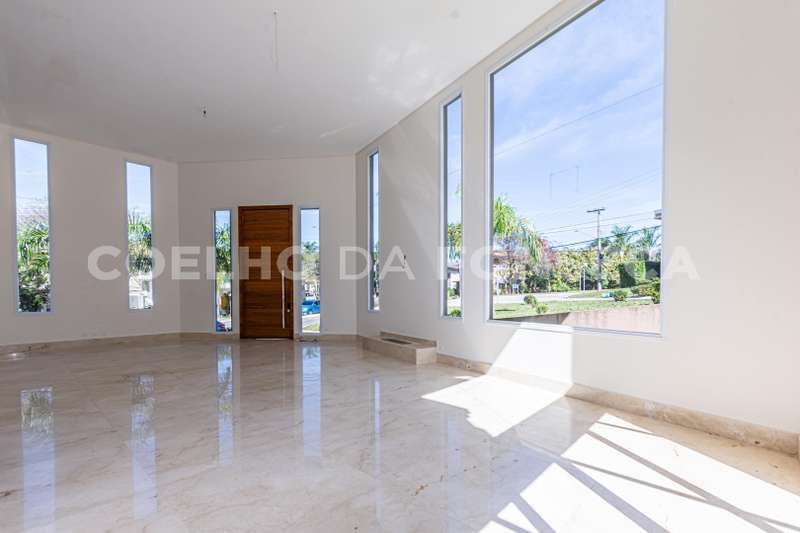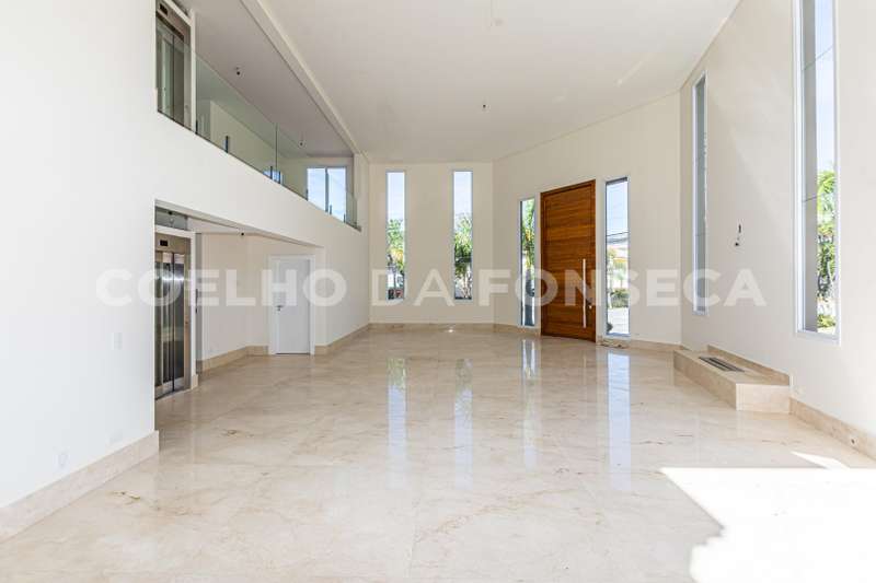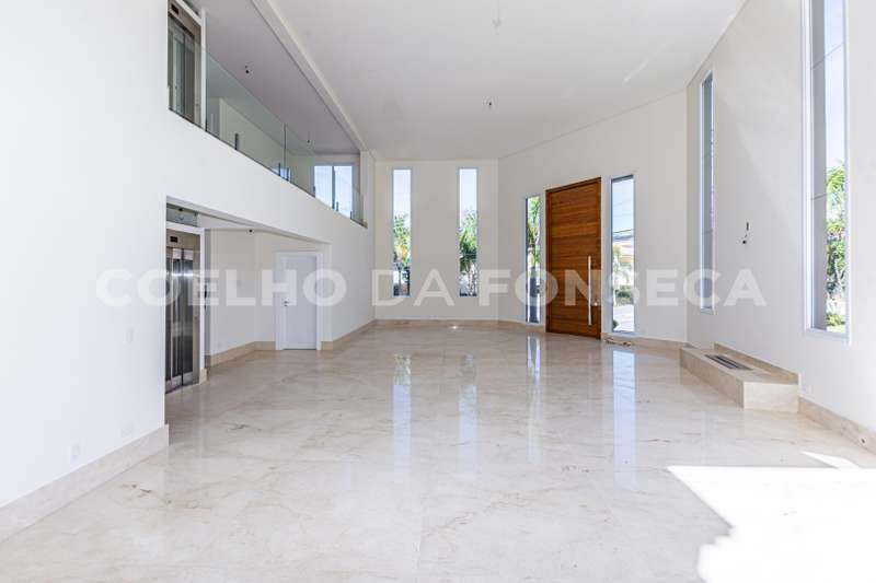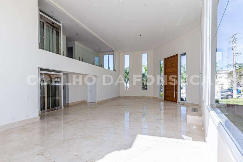 De esquina. Elevador panorâmico, living para três ambientes com pé direito duplo, duas suítes Master com hidro, sendo uma no piso térreo e outra no piso superior com closet e banheiro Sr. e Sra, mais três suítes com closet no piso superior. Sala de cinema, sala íntima, seis vagas de garagem cobertas, salão de festas, escritório, copa de apoio, cozinha com ilha, espaço gourmet com vista para montanha e piscina com raia integrada com SPA borda infinita.