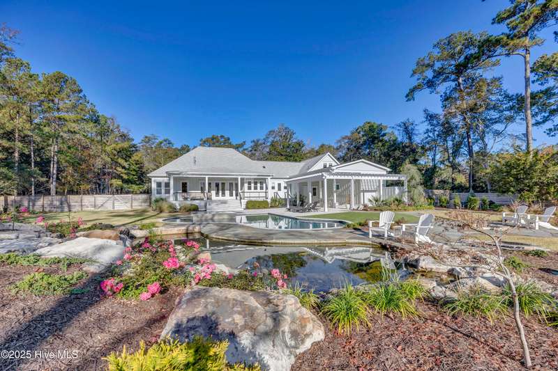 Welcome to one of Wilmington's premier coastal estate properties. Tucked just off the waterway behind Masonboro Inlet, along the coveted deep-water canal of Quail Run Road, this rare offering includes 5.65 acres of exclusive waterfront living on Greenville Loop Road.With 134 feet of canal frontage, the property features a private dock with seating, an 80-foot floating dock with boat lift, and a brand-new bulkhead. A private gated drive leads directly to the dock, and a separate entrance off Old Military Road ties into this path for added convenience.Completed recently, the custom 4-bedroom, 4-bathroom residence was designed with luxury, comfort, and outdoor living in mind. Mostly one-level living, the home showcases Hickory hardwood floors, refined craftsmanship, and a seamless indoor-outdoor flow. The private primary suite sits on its own wing with a tray ceiling, back-patio access, dual closets, and a spa-like bath with zero-entry tile shower.The chef's kitchen features custom cabinetry, a large island topped with Viscount White granite, and Thermador appliances. It opens to the main living area, all overlooking the exceptional outdoor oasis. Two additional first-floor bedrooms share an elegant full bath, and a dedicated home office completes the main level. Upstairs, a retreat-style bedroom with full bath can serve as a guest suite or bonus room.The rear of the home is where true resort-style living begins. Enjoy 800 sq. ft. of covered porch, a stunning resort-style pool completed in 2025 with hot-tub overflow, a tranquil Koi pond with boulders and waterfall, and 1,600 sq. ft. of patio space with bar/eating area. A heated and cooled half bath and beverage cooler are conveniently located near the pool area.Impeccably planned landscapingincluding mature plantings, sod, and artificial turfwas designed for beauty and low maintenance. Additional features include Geothermal HVAC, a whole-home reverse osmosis filtration system, and a Generac whole-house
