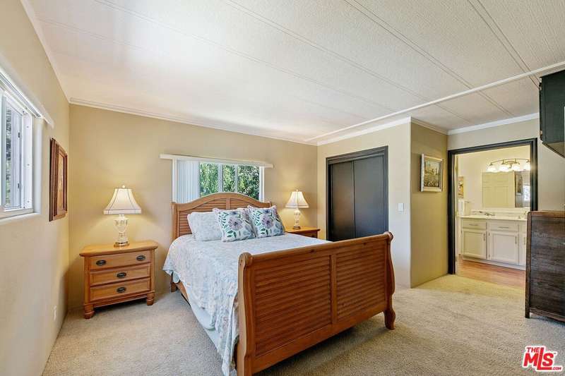 Comfortable home in the sought after Thunderbird Oaks 55+ Mobile Home Community just minutes from restaurants and shops on Thousand Oaks Blvd and across the street from a gorgeous park. Located at on a desirable shady street in the rear of the park lined with mature trees, this property offers a redwood front porch and a private backyard with no immediate neighbors in back of it. The open floor plan makes it feel spacious with a large living room dining area, and a family room area open to the kitchen. The kitchen features stainless steel appliances, butcher block countertops and a breakfast bar. All of this in a beautifully maintained 55+ community with a pool, spa, pickle ball court, community center with organized community events and affordable space rent! Come take a look today!