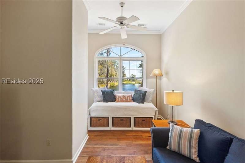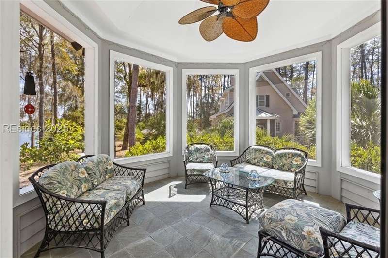 This lovely 3,213 sq ft 4BR/4BA coastal home is perfectly positioned on a serene lake with sweeping views of Hilton Head and Calibogue Sound. Designed with an open-concept layout, the spacious kitchen, dining, and living areas flow seamlessly together, creating an inviting atmosphere ideal for entertaining and family gatherings.The first-floor principal suite offers a large walk-in closet and a generous ensuite bath, while a guest suite with full bath provides comfort and convenience for visitors. Upstairs, two additional guest suites, each with their own ensuite baths, are complemented by a versatile living/den area showcasing stunning water views.Outdoor living shines with an expansive deck perfect for relaxation, along with a screened porch where you can enjoy the sights and sounds of nature year-round. Combining comfort, elegance, and breathtaking vistas, this home captures the essence of Lowcountry living.Enjoy island living without the crowds in this rare coastal retreat on a bridgeless island, where every day feels like a private getaway. Haig Point offers a park-like setting of open spaces, centuries-old oaks, and sweeping water views, with amenities including a Rees Jones Signature 20-hole golf course plus a 9-hole course, racquet sports, fitness center, pools, and dining. Stroll for miles along uncrowded beaches or enjoy seamless mainland access with a private ferry and 24/7 water taxi to Harbour Town. With 24/7 security, daily UPS and FedEx delivery, Instacart to your door, and even dry-cleaning pickup, this unique community blends privacy, luxury, and convenience.