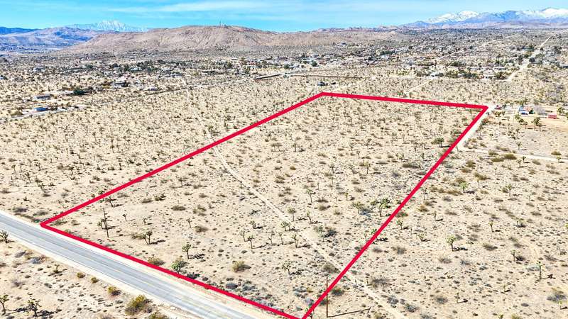 If you're looking for privacy, beauty, and room to create, this 5-acre lot is the perfect fit. Tucked just off Yucca Mesa Road, this parcel provides seclusion while remaining easily accessible. The flat terrain, adorned with native Joshua trees, offers a picturesque setting for a custom home, artist retreat, or vacation rental. Enjoy breathtaking sunrises, endless starry skies, and a tranquil atmosphere, all within minutes of the conveniences of Yucca Valley and Joshua Tree.With three adjacent 5-acre lots also available, this is your chance to expand your vision and build a grand 20-acre compound. Secure this one-of-a-kind property today and bring your desert dreams to life! Photo with red outline is all 4 parcels together. Other APNs available: 0598-084-31-0-000, 0598-084-32-0-000, 0598-084-33-0-000.