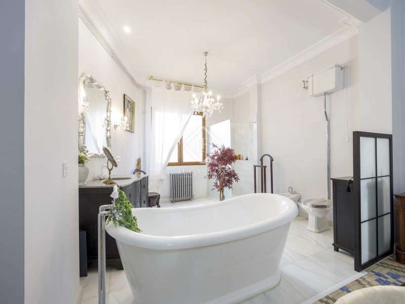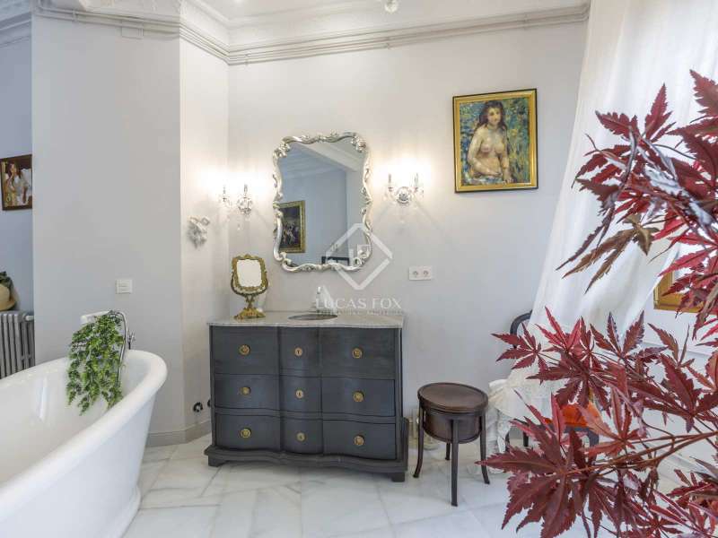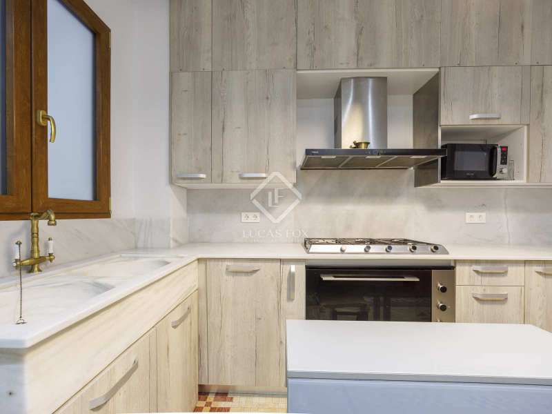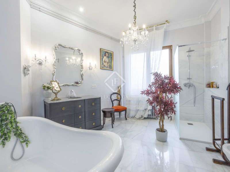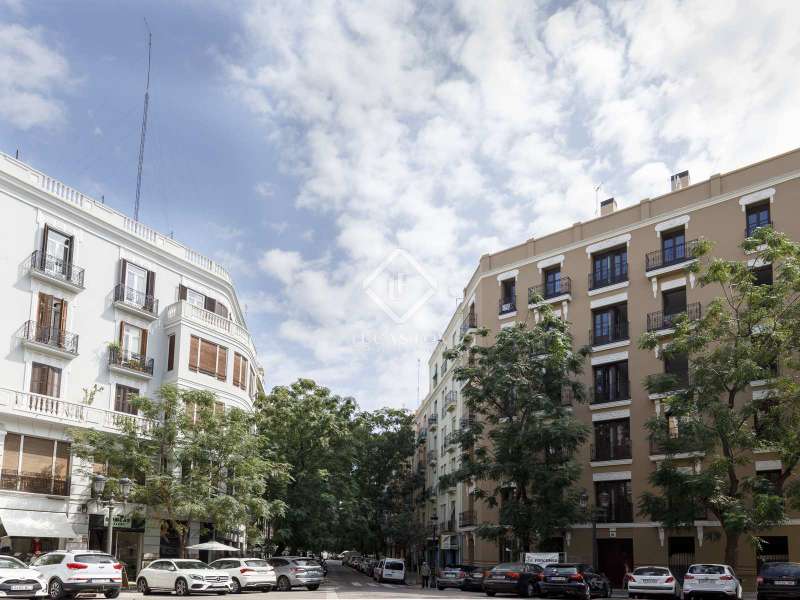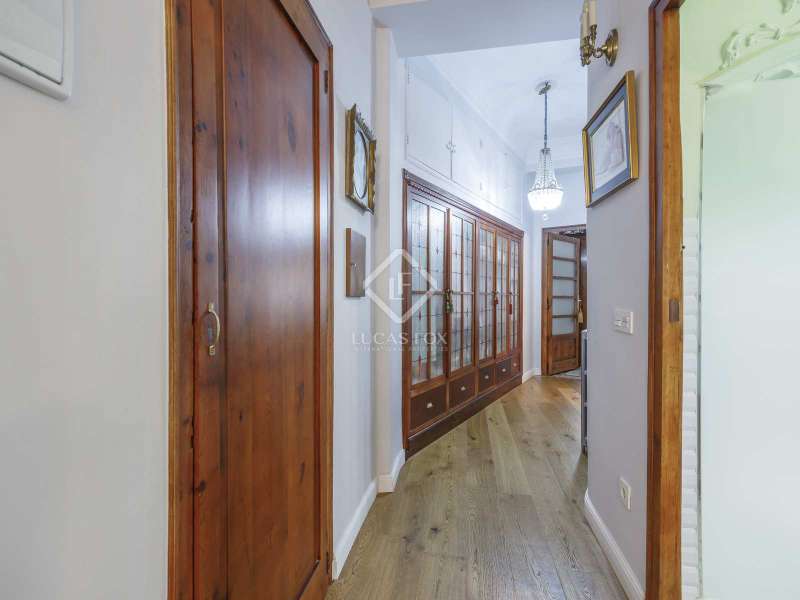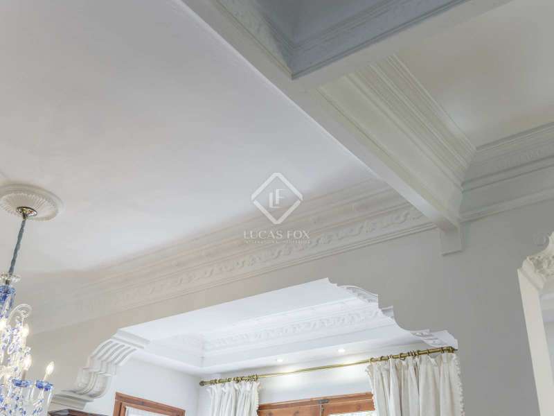 This property is located on the first floor of a period building, perfectly preserved and with the common elements very well maintained. It is located on one of the best streets in the Gran Vía neighbourhood , in a quiet and tree-lined section, very close to the Turia River Gardens, one of the largest green areas in the city of Valencia. The property has been completely renovated, with exquisite taste, fully respecting all the period architectural elements, which give it such a special character. The mosaic floors have been completely restored in a large part of the property and the original solid wood interior carpentry has been restored. In addition, the entire property is fully thermally and acoustically insulated to ensure greater comfort, with exterior carpentry with double glazing. We enter the property through a practical entrance hall, which gives us access, on the right, to the living-dining room area, of impressive dimensions and with several rooms. It has four large windows on the façade, through which abundant natural light enters. Right next to the living room, on the left, is the kitchen, with a square floor , with a large storage capacity and access to a pleasant terrace. A wide hallway, with a beautiful period wardrobe with perfectly restored stained glass windows, leads us to the night area. We find a double bedroom , with a window to a light well and a full bathroom with a large shower. At the back of the property and facing a large and sunny block patio, is the main bedroom, of generous dimensions, with an elegant full bathroom , in harmony with the atmosphere of the rest of the property. The entire property retains the high ceilings with original moldings that have been perfectly restored, polished mosaic and natural oak parquet floors, interior carpentry made of natural wood and exterior carpentry with double glazing and thermal and acoustic insulation. It also has individual gas heating. Get in touch for more information.