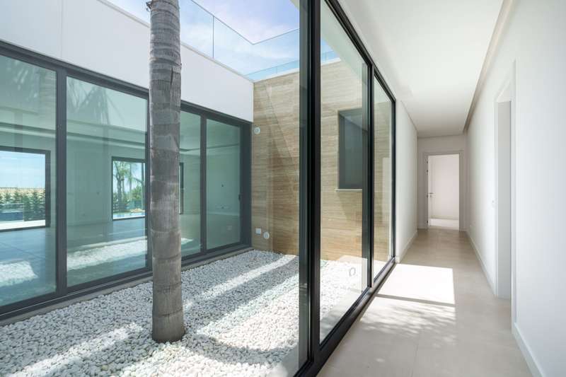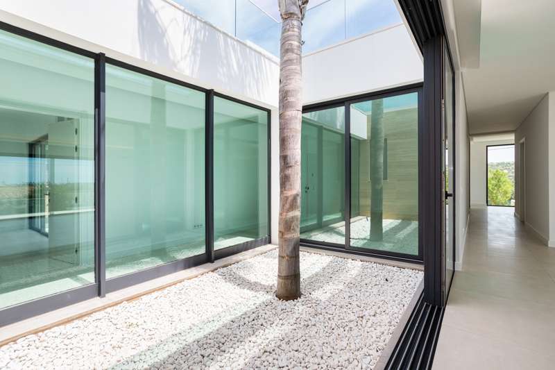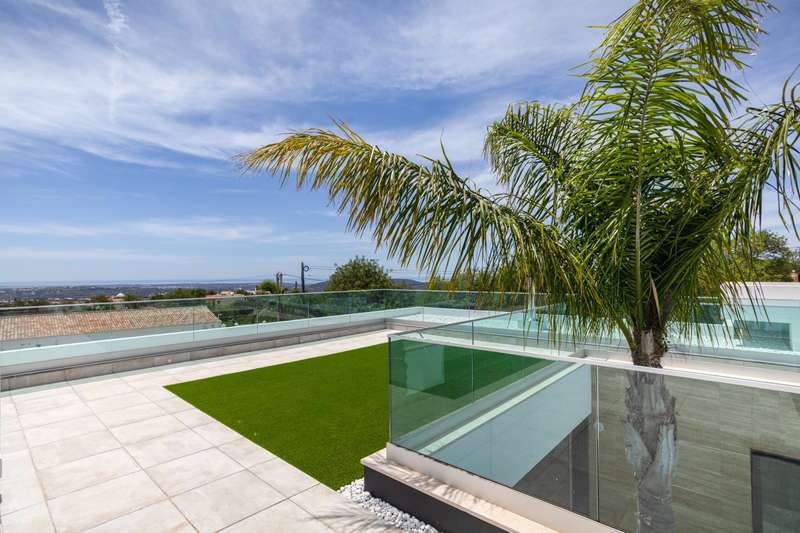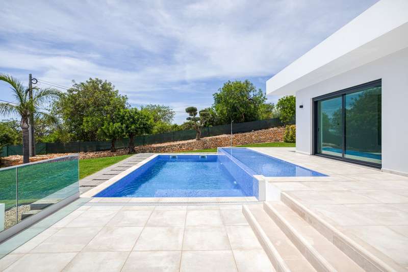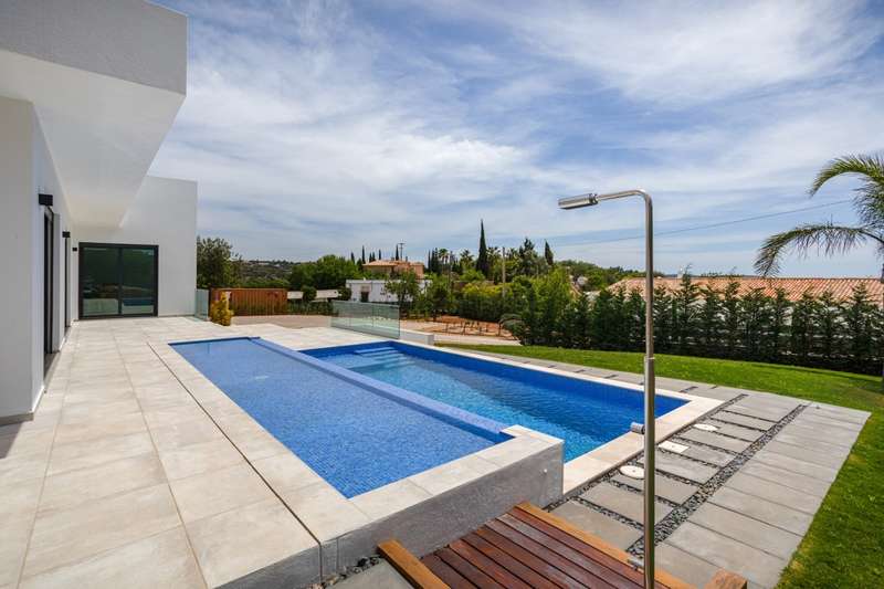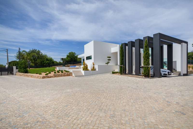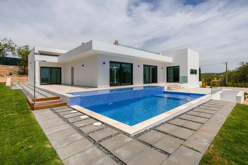 Newly built luxury villa, with stunning sea views, located only minutes from Loule city centre. This south facing, single story property offers excellent sun exposure and an infinity pool with ample outdoor space for leisure and entertainment. With four generously sized bedrooms, three of which are ensuite, and an extra room that can serve as an office or atelier, this property is light and offer, boasts a contemproray style and is finished with high end materials. Special attention has been paid to every detail making this a highly energy efficient home. It is encased in an impecably designed garden space that offers harmony within the natural environment while maintaining privacy and seclusion and offering lots of natural light and spectacular garden and sea views. The interior of the property offers ample living spaces and the buyer has the opportunity to custom select a fully fitted kitchen. The villa is topped off with an extra large terrace making it a great space for leisure or entertaining. A truly unique property that can be used as a forever or holiday home. Only a short drive to Loulé city center, 20 minutes to Faro Airport and less than 30 minutes to some of the best beaches and golf the Algarve has to offer. CHARACTERISTICS: Plot Area: 2 970 m2 | 31 969 sq ft Area: 343 m2 | 3 696 sq ft Building Area: 343 m2 | 3 696 sq ft Bedrooms: 4 Bathrooms: 4 Energy efficiency: A FEATURES: New construction Four bedrooms Three suites Infinity pool Garden Solar panels Carport