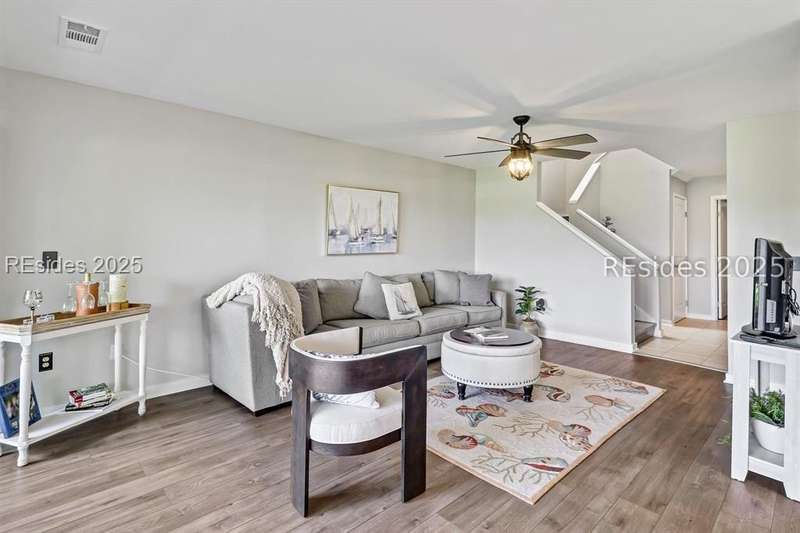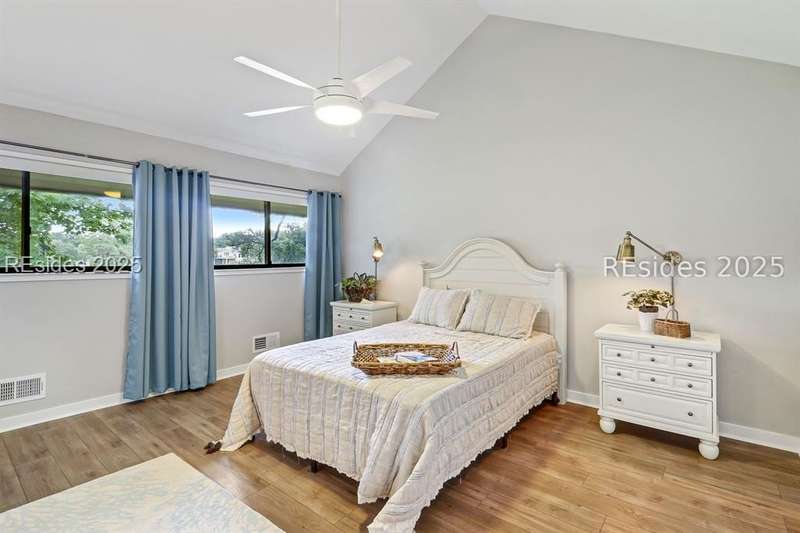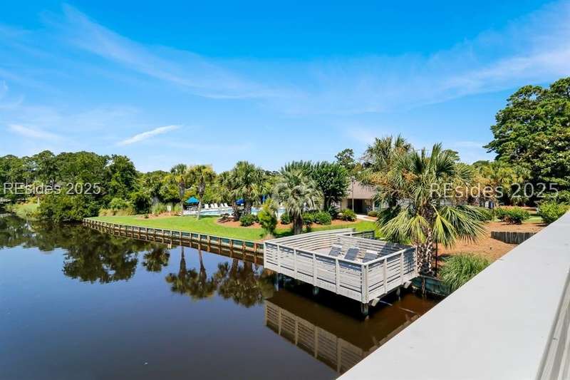 Welcome to Inverness Villa #983 located in the heart of highly coveted Palmetto Dunes! A highly sought-after end-unit villa that enhancing both the privacy and generous breezes. Enjoy gorgeous double fairway views (Fazio course) from your oversized deck for morning coffee, sunrises & evening barbecues. Just steps from tennis courts, private lagoon side pool complex and a short bike ride to the beach and all Palmetto Dunes Resort amenities. Featuring 2BR, 2BA, master bedroom second floor with vaulted ceilings, updated kitchen with beadboard cabinets & granite countertops, new refrigerator, stove w/ air fryer capable & microwave. Renovated 1st floor bath and , a walk-in tile shower in the spacious primary ensuite. New interior doors & new exterior entrance door & exterior storage locker door. New flooring throughout. Newly painted interior & smooth ceilings throughout. All new lighting fixtures on first floor. New HVAC (high efficiency) & ductwork. New water heater and electrical breaker panel . Upgraded Spray Foam Insulation below. Second floor bonus" storage room. Closets aplenty. In ground sprinkler system. The owner has never rented and shows beautifully. Offered furnished and ready to enjoy!