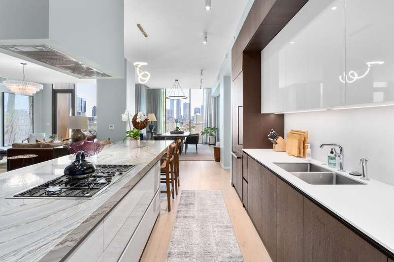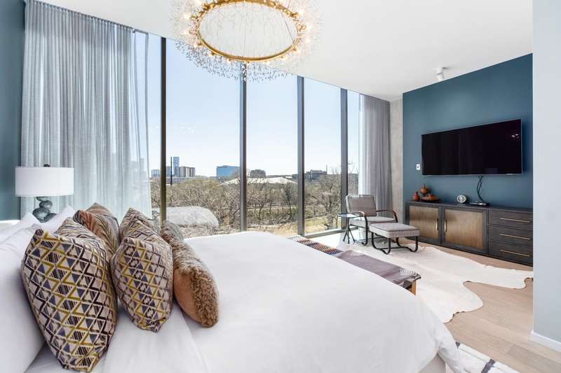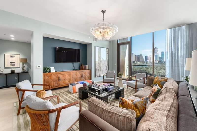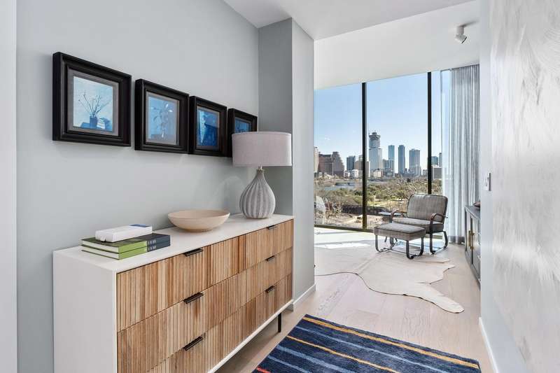 The Loren is a collection of graciously designed residences each offering luxury bespoke finishes, finest-quality and timeless materials. Residence 7E is a luxurious four-bedroom, four-and-a-half-bathroom penthouse spanning +/- 3,511 square feet. This exclusive residence offers expansive windows that frame breathtaking views of Downtown Austin, Lady Bird Lake, and South Austin, allowing natural light to flood each room. ;
