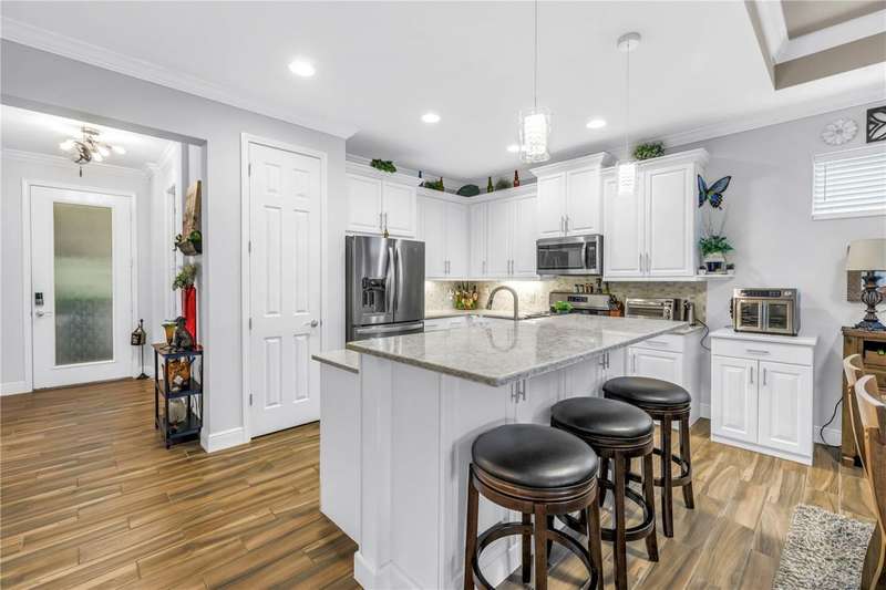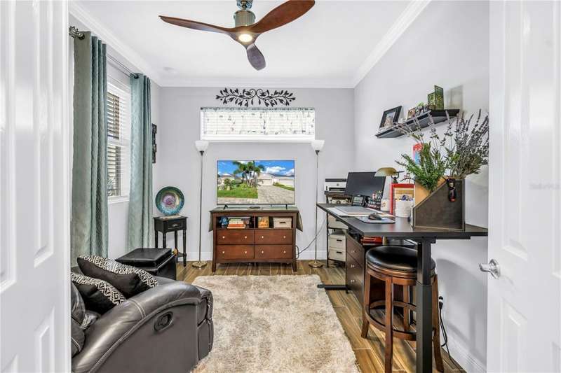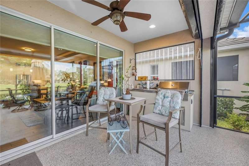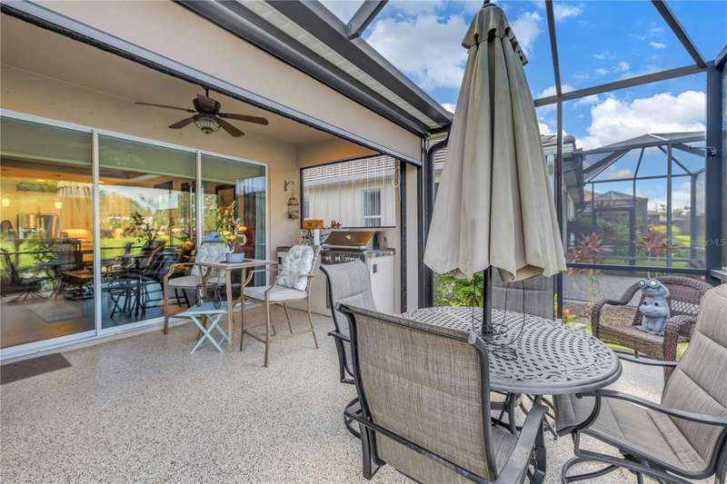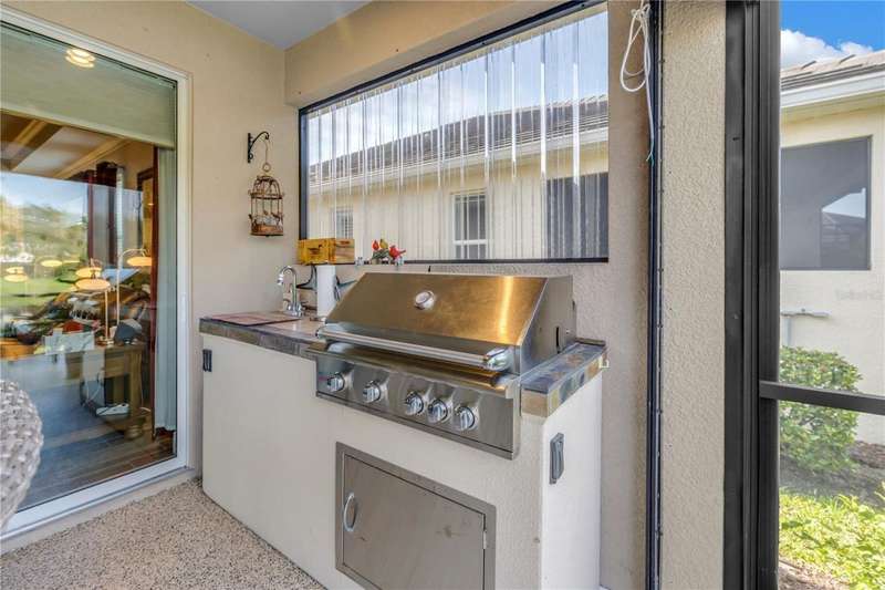 Welcome to Your Luxury Oasis in Sarasota!From the moment you approach this beautifully upgraded villa, you'll be captivated by its vibrant curb appeal. Freshly updated landscaping surrounds the home, creating an inviting atmosphere and setting the tone for the elegance inside. The home is situated in a serene, gated community, offering the ideal balance of privacy and accessibility. You'll be just minutes from Sarasota-Bradenton International Airport, the stunning beaches of Siesta Key and Anna Maria Island, and the premier shopping and dining at University Town Center-putting all the best Sarasota has to offer right at your fingertips.Step inside to discover a spacious, open floor plan where the kitchen and living areas flow effortlessly together. The kitchen is a true standout, featuring pristine quartz countertops and an extended island that provides both additional workspace and extra storage. Thoughtfully upgraded cabinetry enhances the modern aesthetic, while under-cabinet lighting adds warmth to the space. The kitchen opens to the living area, creating an ideal space for entertaining or simply enjoying time at home. Crown molding, updated ceiling fans, and modern blinds add finishing touches that create a comfortable and stylish atmosphere.Adjacent to the main living areas is a versatile den/office, perfect for those needing a dedicated workspace or a quiet retreat. This flexible space allows for easy customization to suit your lifestyle, whether it's for work, relaxation, or even an additional guest area.The villa includes two generously sized bedrooms, each designed for relaxation and comfort. The master suite is a true retreat, complete with a walk-in closet and a luxurious master bath featuring his and hers split vanities. Both bathrooms are upgraded with walk-in showers and finished with granite countertops for a sophisticated touch.Step outside through the living room to the extended lanai, where you'll find an inviting outdoor space perfect for relaxation or entertaining guests. Both the front and rear lanai feature upgraded 20/20 mesh screens, ensuring a comfortable, pest-free outdoor experience. The rear lanai has been extended, providing even more space to enjoy the Florida weather, and extra pavers have been added to the side of the screened-in area for additional outdoor living. A Paradise Grills outdoor kitchen with hot and cold sinks makes outdoor cooking and dining effortless, while a polyaspartic-coated floor ensures the area stays pristine. The rear lanai is equipped with an electric roll-down screen and for peace of mind there is lightweight Cleartek shutters for the windows, offering protection when needed.Beyond the lanai, the backyard is equally impressive. The freshly updated landscaping continues to enhance the home's exterior, leading to a tranquil pond view that offers both beauty and serenity. The peaceful setting of the backyard is the perfect place to unwind after a day at the beach or spend a quiet evening at home.Located in a gated, all-ages, pet-friendly community with no CDD fees, you'll enjoy access to a sparkling pool, clubhouse, and dog park, making every day feel like a vacation.Whether you're searching for a seasonal retreat or a full-time residence, this villa offers a lifestyle that combines location, luxury, and ease. Schedule your private showing today and experience the perfect home in Sarasota.