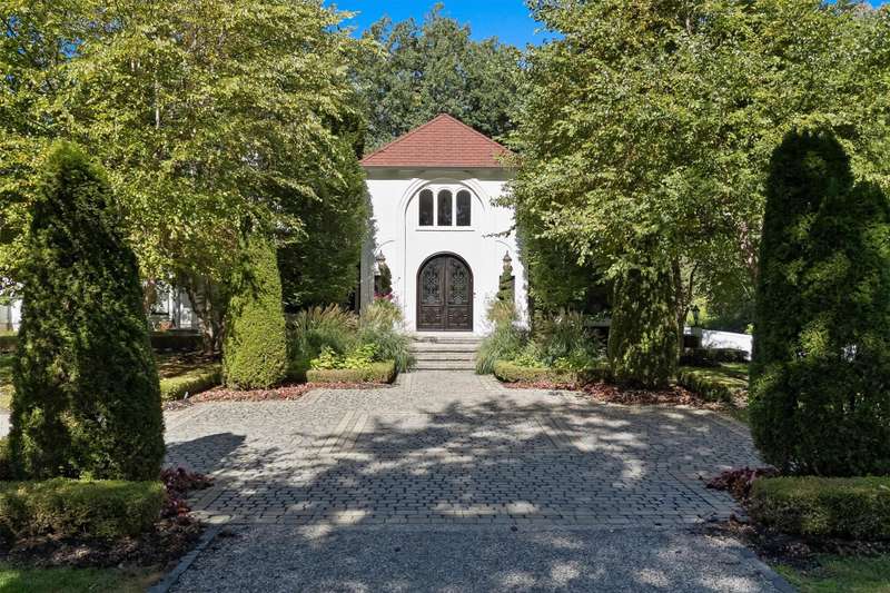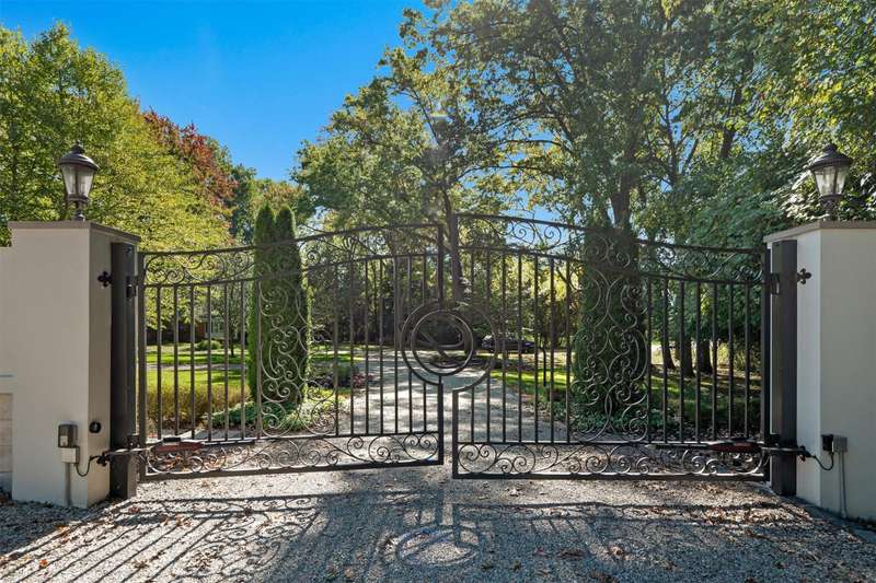 Privately gated & set deep within a mature tree-lined setting, this architectural estate on just under two acres offers both grandeur & privacy in one of the area’s most sought-after streets. Surrounded by manicured landscaping, sculpted evergreens, & lush gardens. The interior is modern & sophisticated. Circular drive & cobblestone motor court lead to the home’s entry, welcomed by arched double wrought-iron entry doors. Two-story marble foyer, with floor-to-ceiling windows. Wood-paneled library featuring a coffered ceiling, stone fireplace, & wide-plank pine flooring. Gourmet chef's kitchen that blends sleek design with everyday functionality. Quartz counters, white shaker cabinetry, a large center island with countertop seating, all Thermador appliances, double oven, five-burner gas cooktop with a pot filler. Hand-scraped hardwood floors throughout most of the entry level. Breakfast nook, family room, and a sitting room perfect for cocktails & conversations all open to the kitchen. For the entertainers, a wet bar and an 864-bottle temperature-controlled wine cellar. Den/four seasons room with walls of windows overlooking the yard and three skylights. The expansive primary suite features a tray ceiling, automatic blinds, French doors opening to a spa-quality marble bath. Frameless glass shower enclosure, freestanding soaking tub, dual custom-fitted walk-in closets. Adjacent to the primary suite is a handsome second-floor office with built-ins, one of two home offices. Newer, gleaming hallway bathroom floating vanity and steam shower. Dual, black-iron staircase railings. Second-floor laundry. Epoxy, heated garages for seven cars. New patio with built-in fire feature. Close to all three award-winning Bloomfield Hills Schools: Conant Elementary, South Hills Middle, Bloomfield Hills High. A short drive to downtown Birmingham, country clubs & private schools. Refined finishes throughout, with an unwavering attention to design, quality & luxury! Taxes are non-homestead!